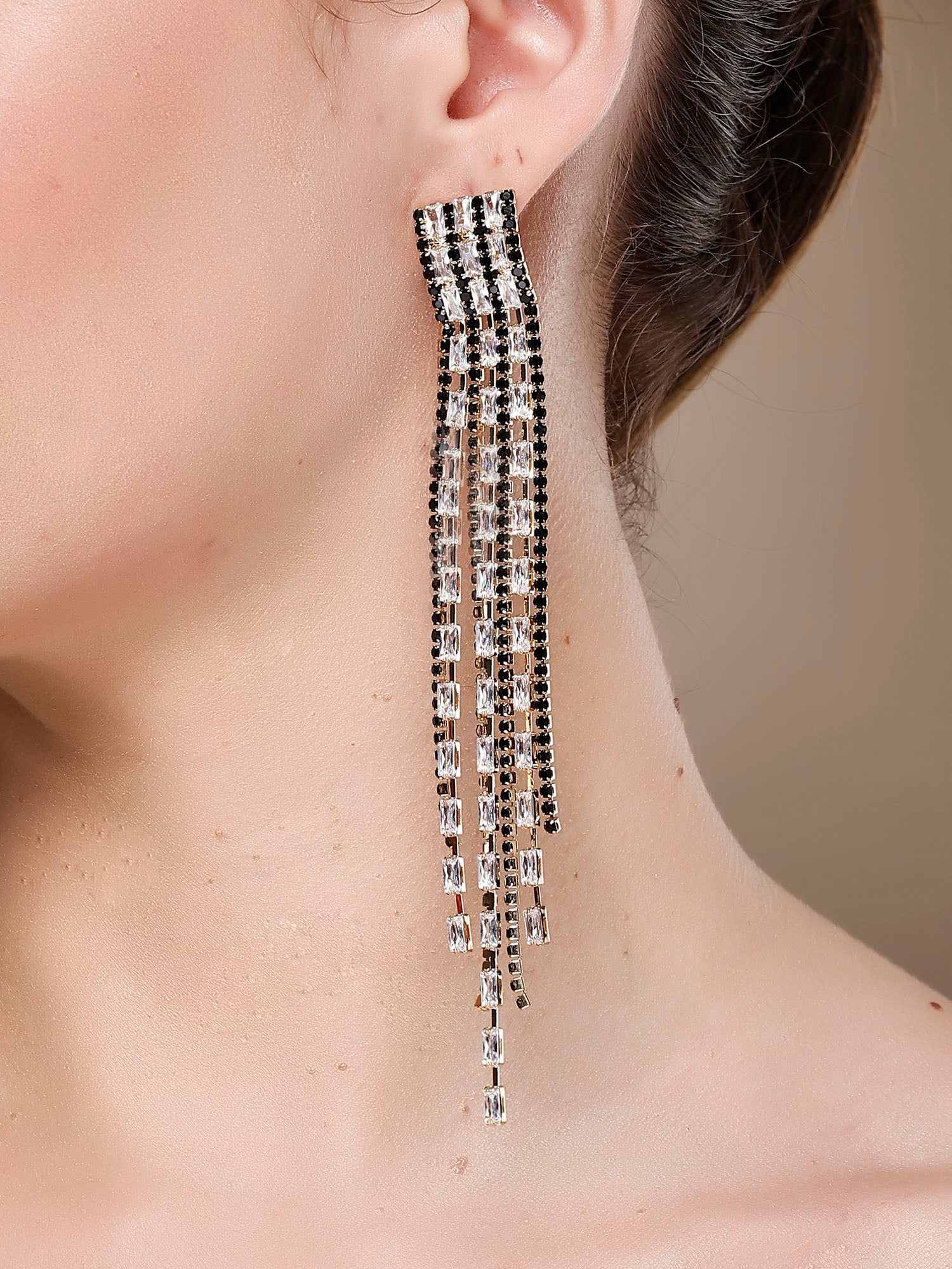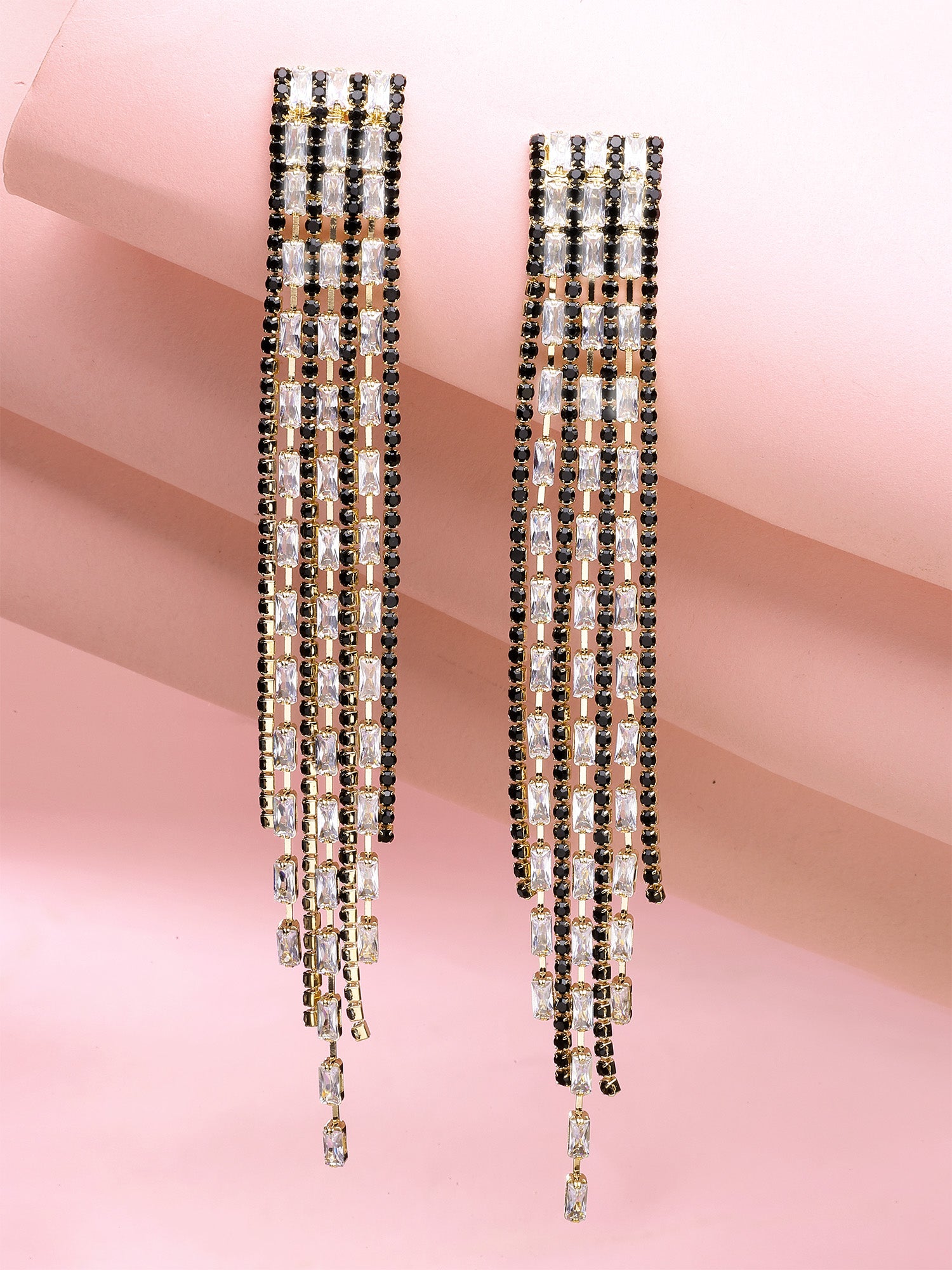 Bohey by KARATCART Gold-Plated Contemporary Black Drop Earrings for Women