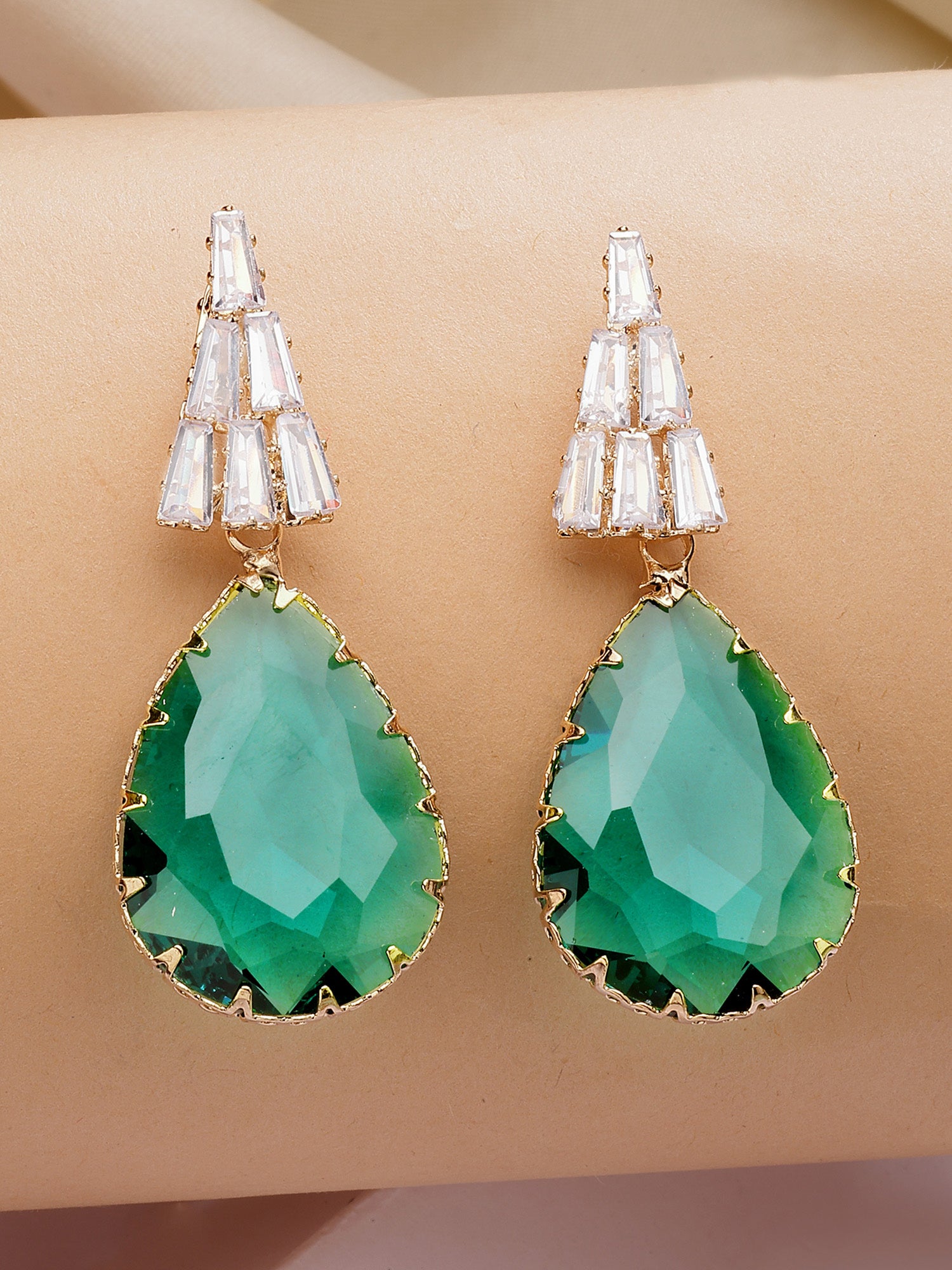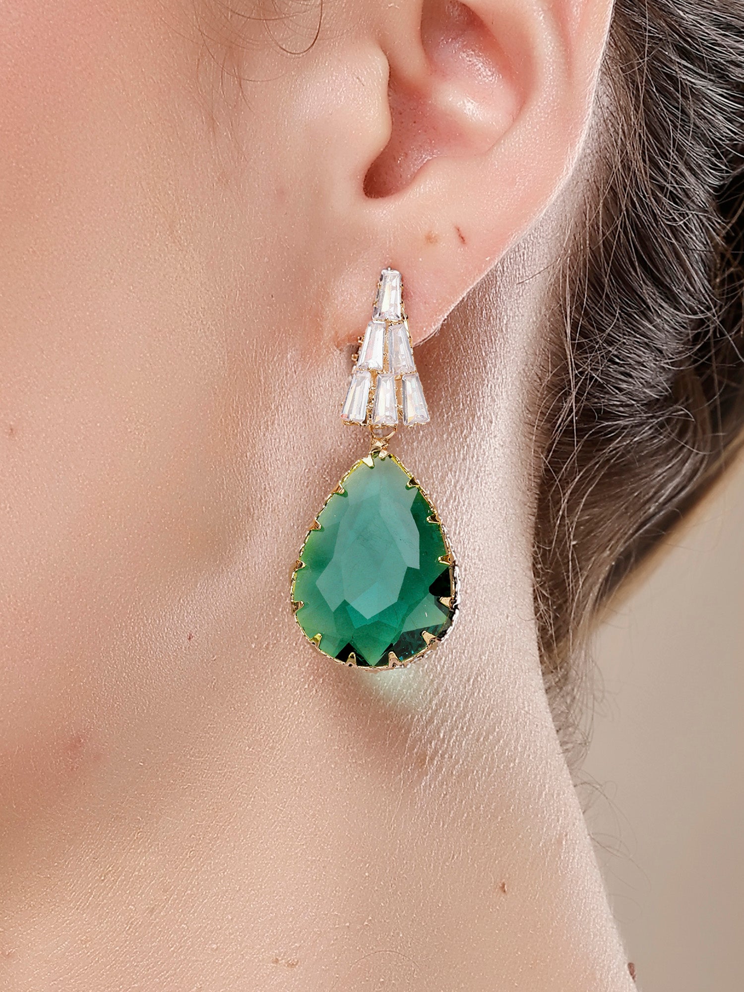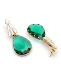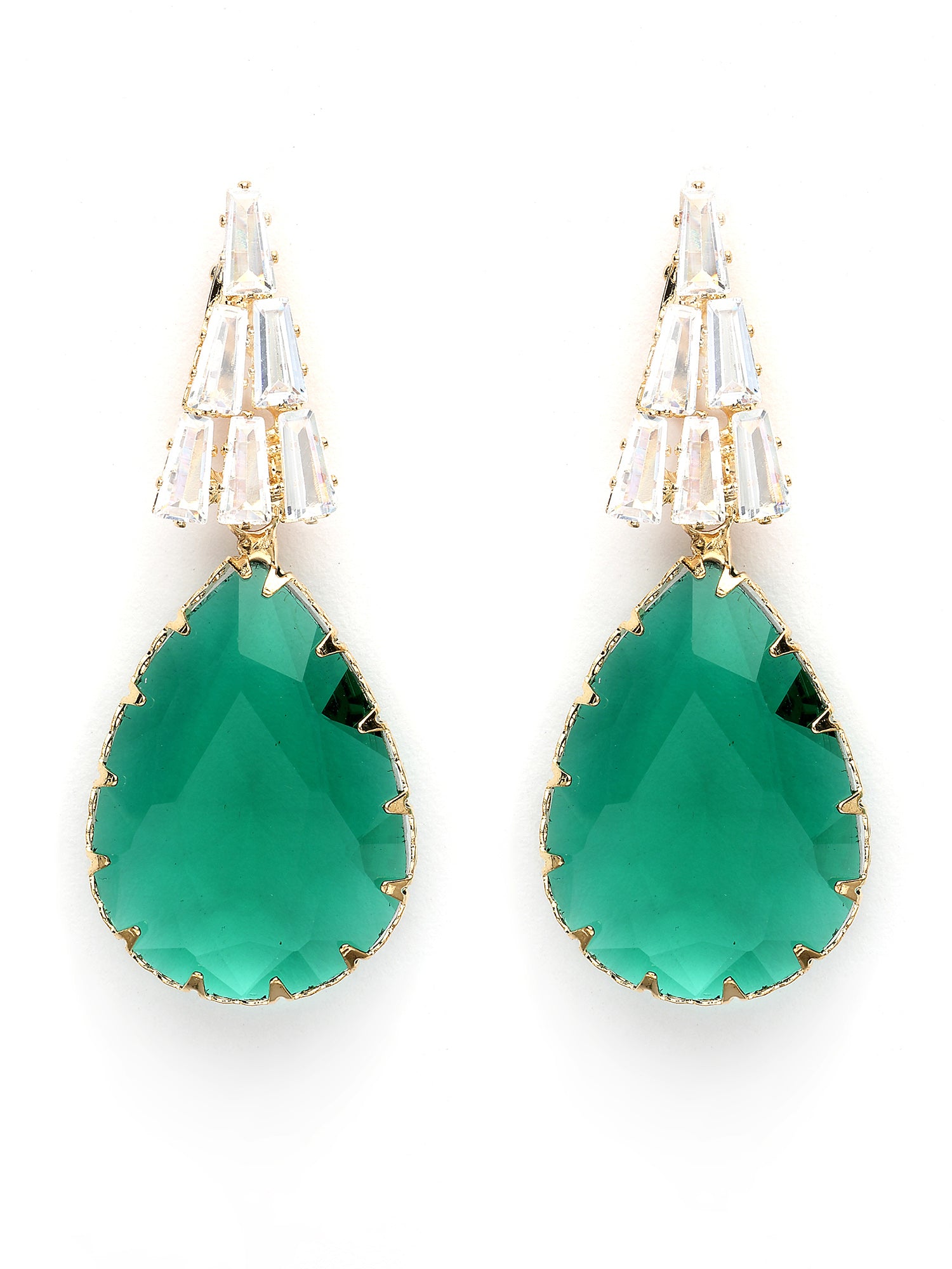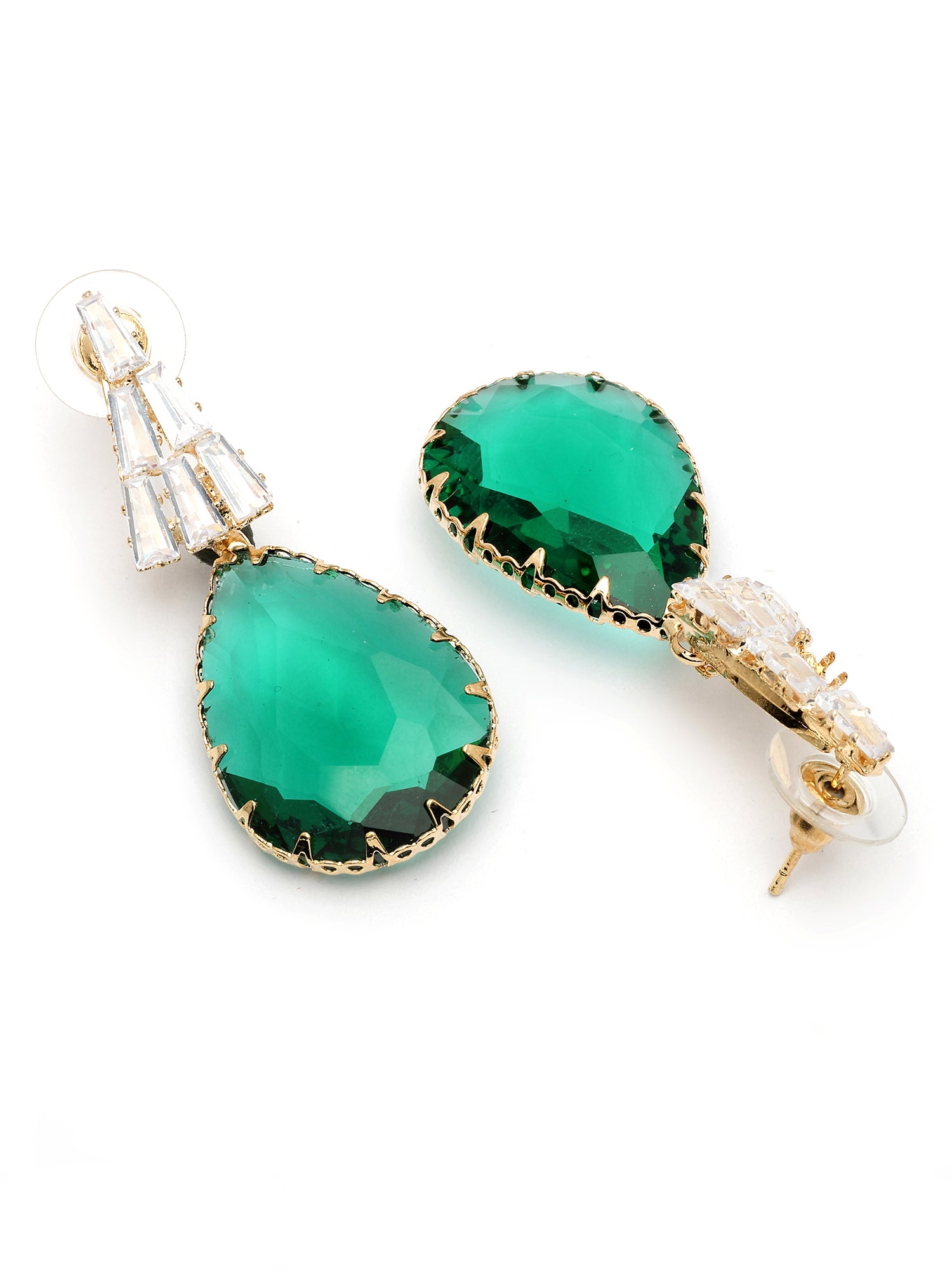 Bohey by KARATCART Gold-Plated Contemporary Green Drop Earrings for Women