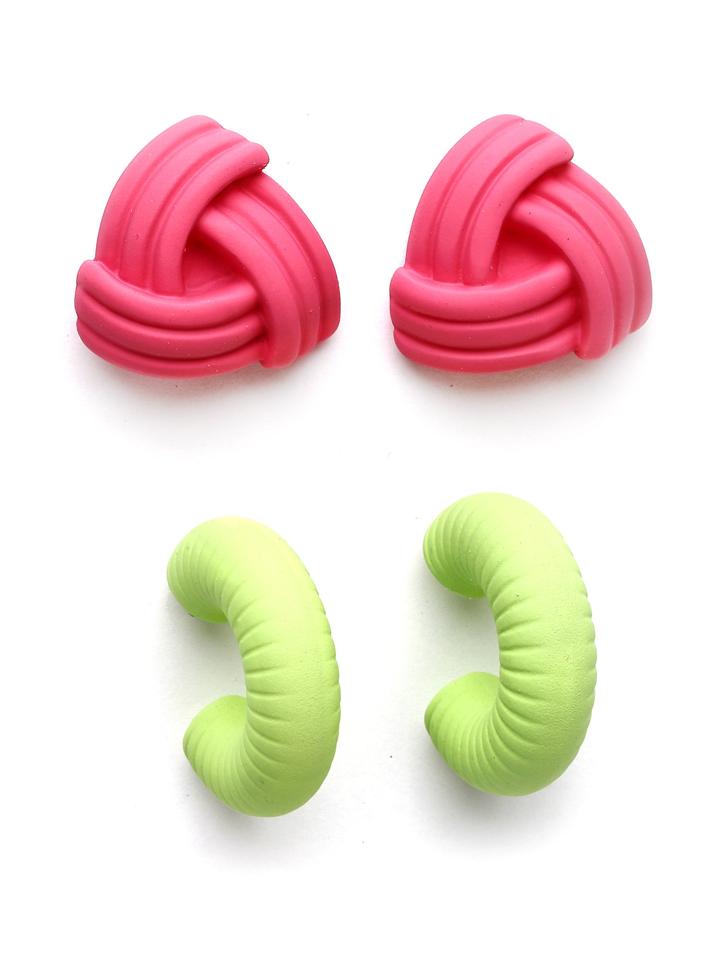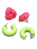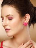 Bohey by KARATCART Set of 2 Pink and Lime Green Resin Stud Combo Earrings