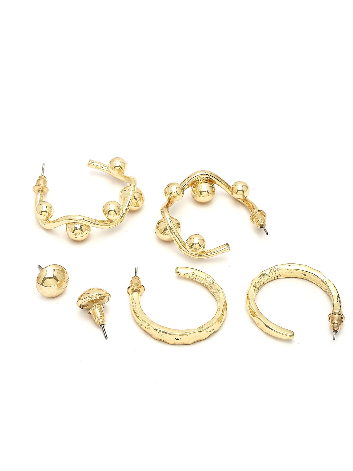 Bohey by KARATCART Set of 3 Gold-Plated Contemporary Hoop Earrings for Women