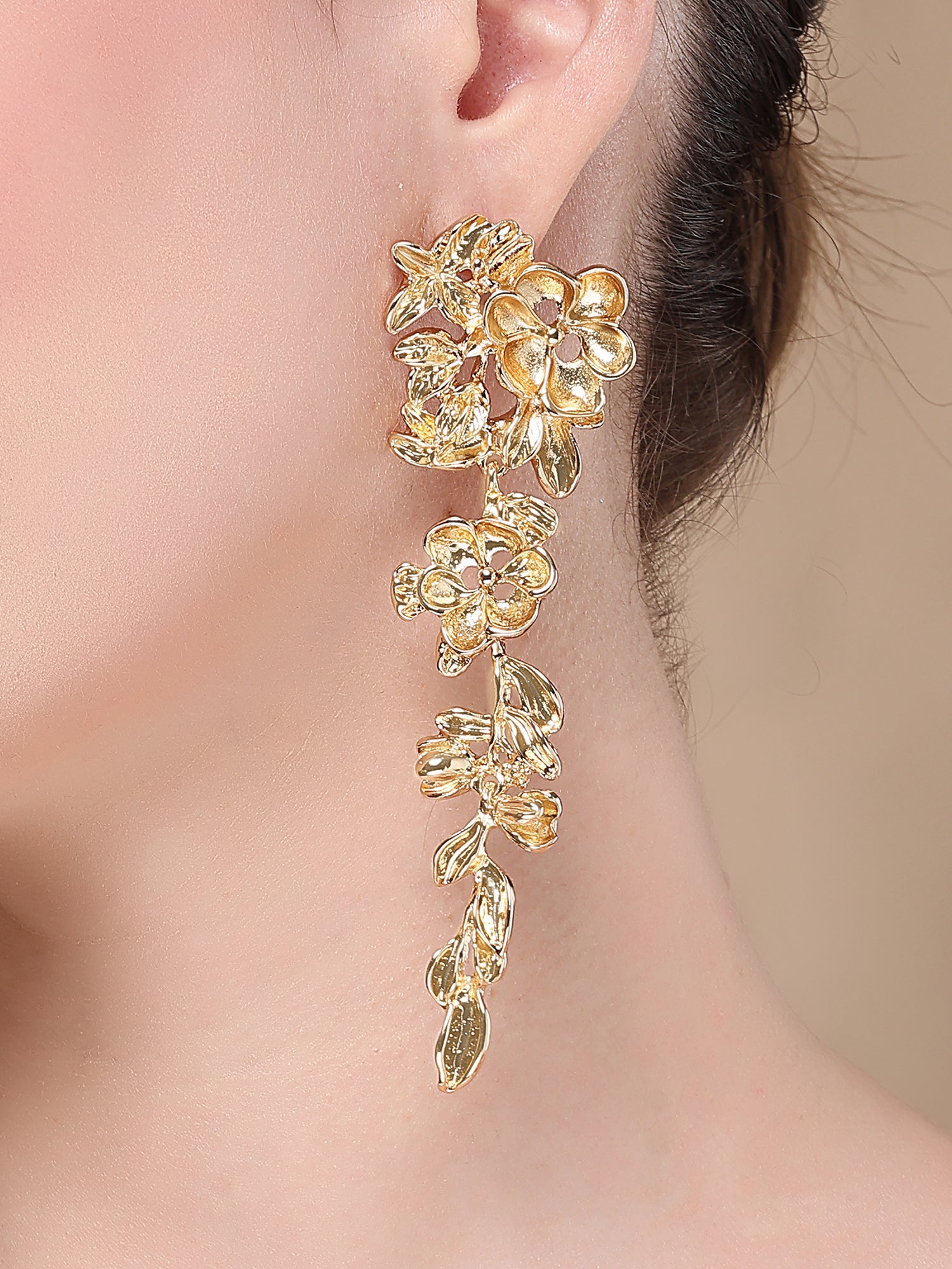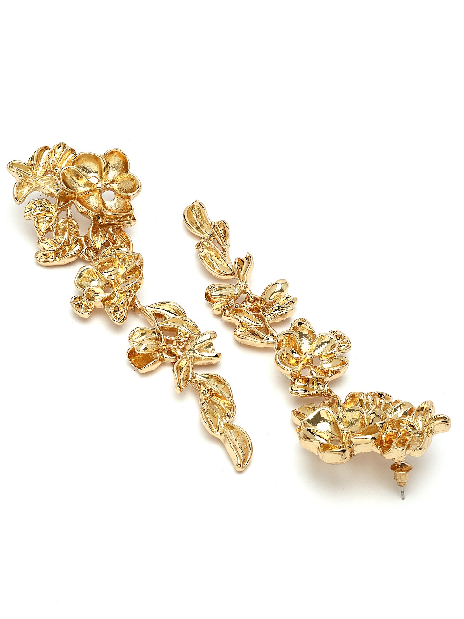 Bohey by KARATCART Gold Plated Floral Drop Earrings for Women