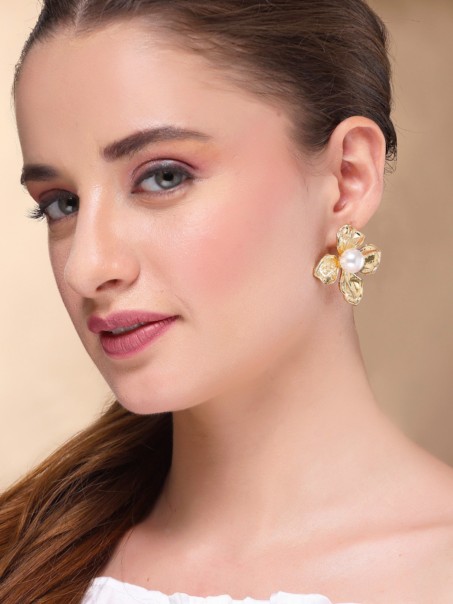 Bohey by KARATCART Gold Plated Floral Stud Earrings for Women