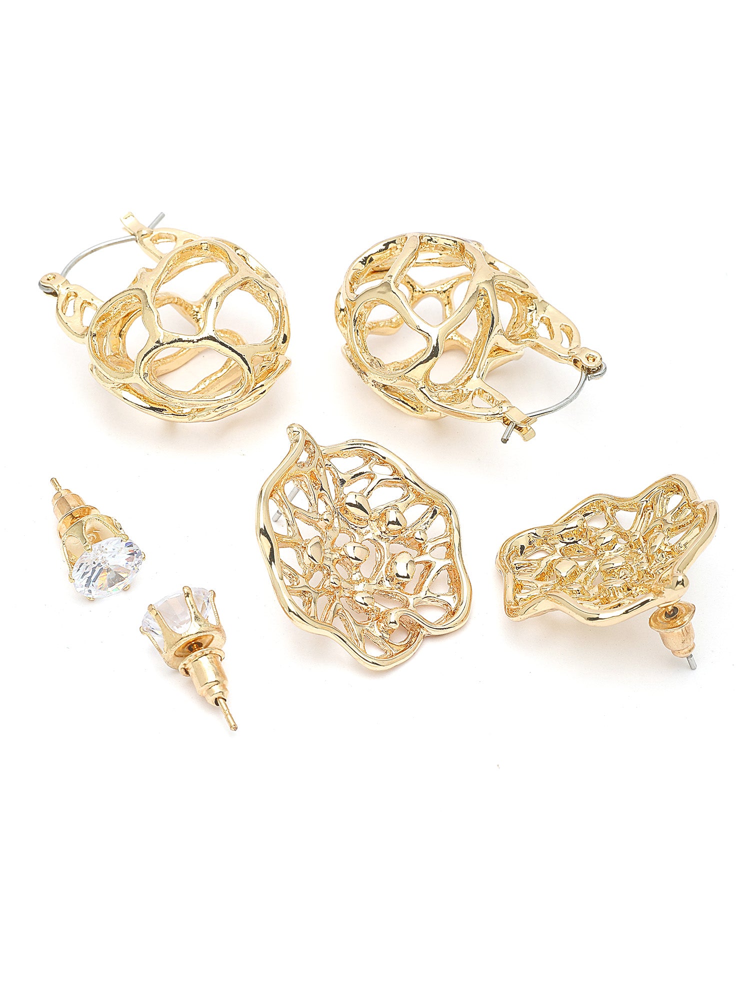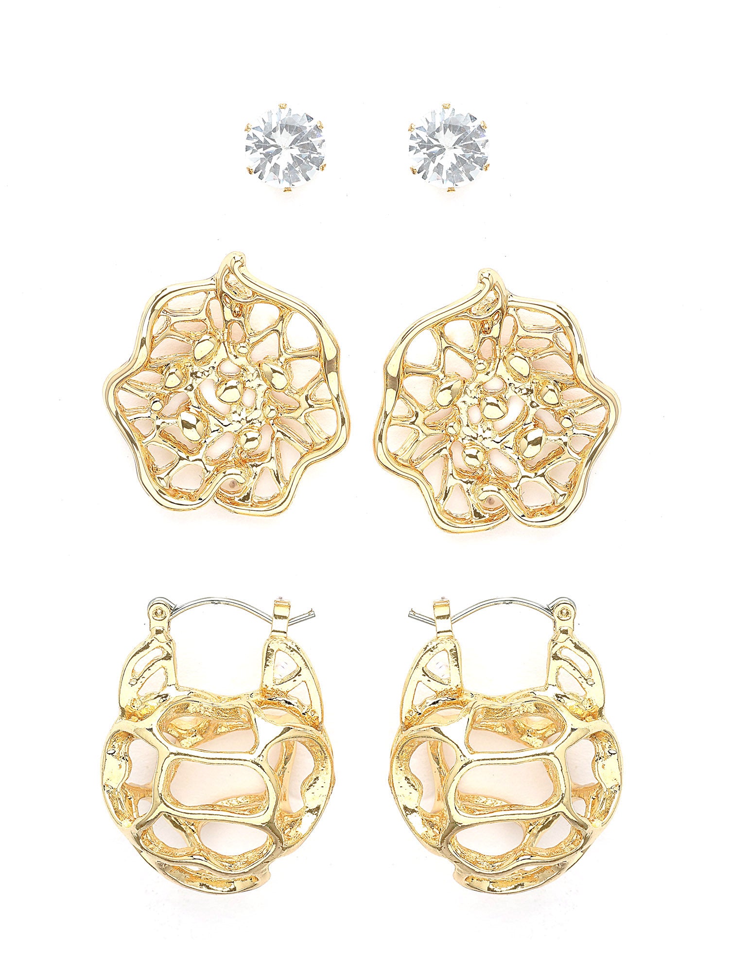 Bohey by KARATCART Set of 3 Gold Plated Stud Earrings for Women