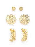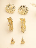 Bohey by KARATCART Set of 3 Gold Plated Floral Stud Earrings for Women