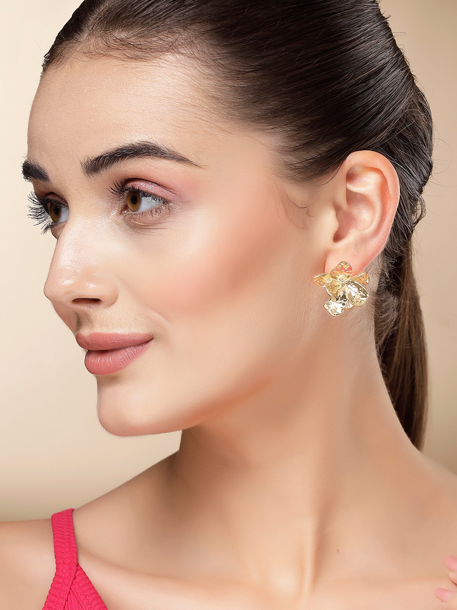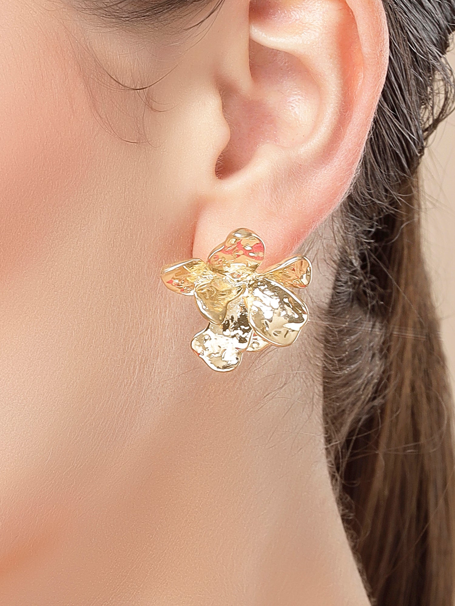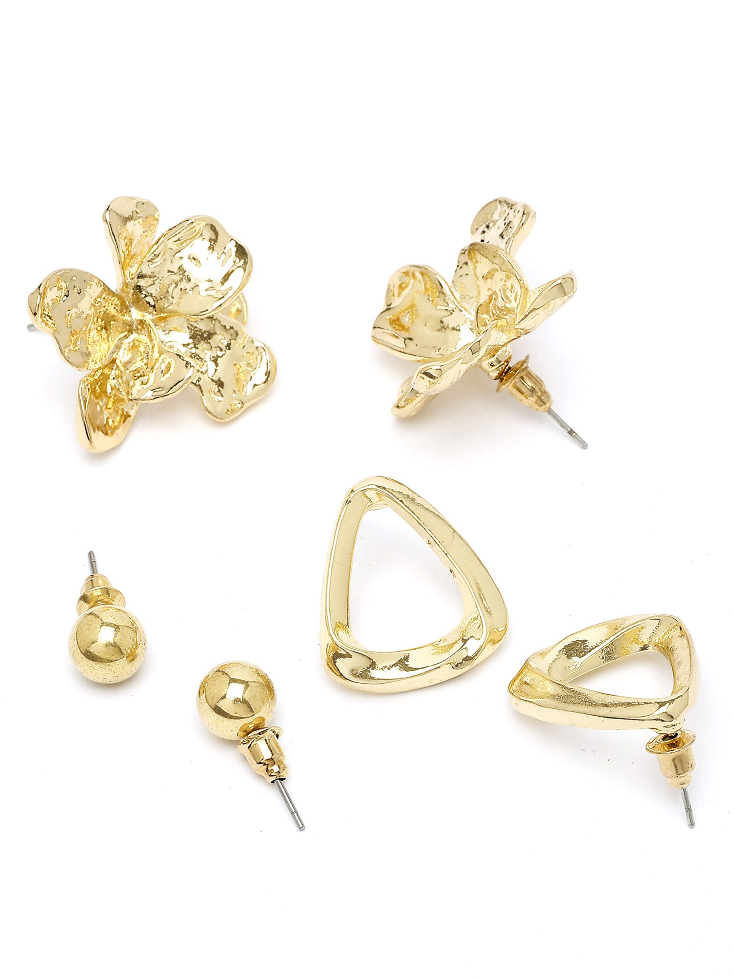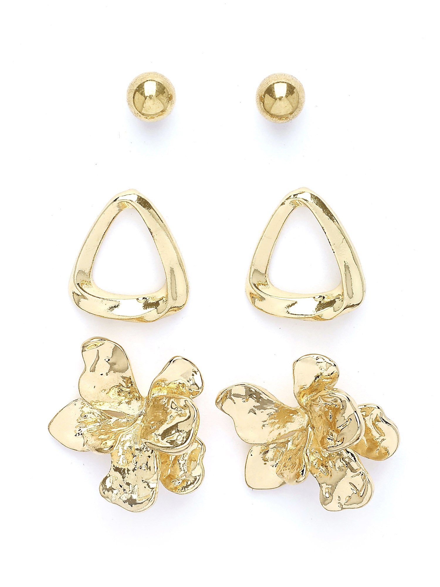 Bohey by KARATCART Set of 3 Gold Plated Floral Stud Earrings for Women