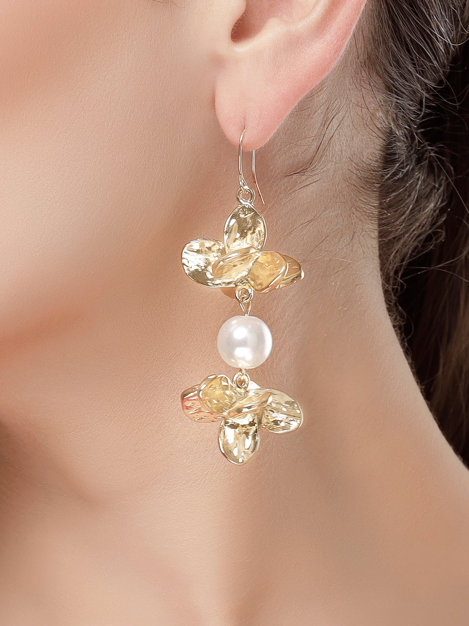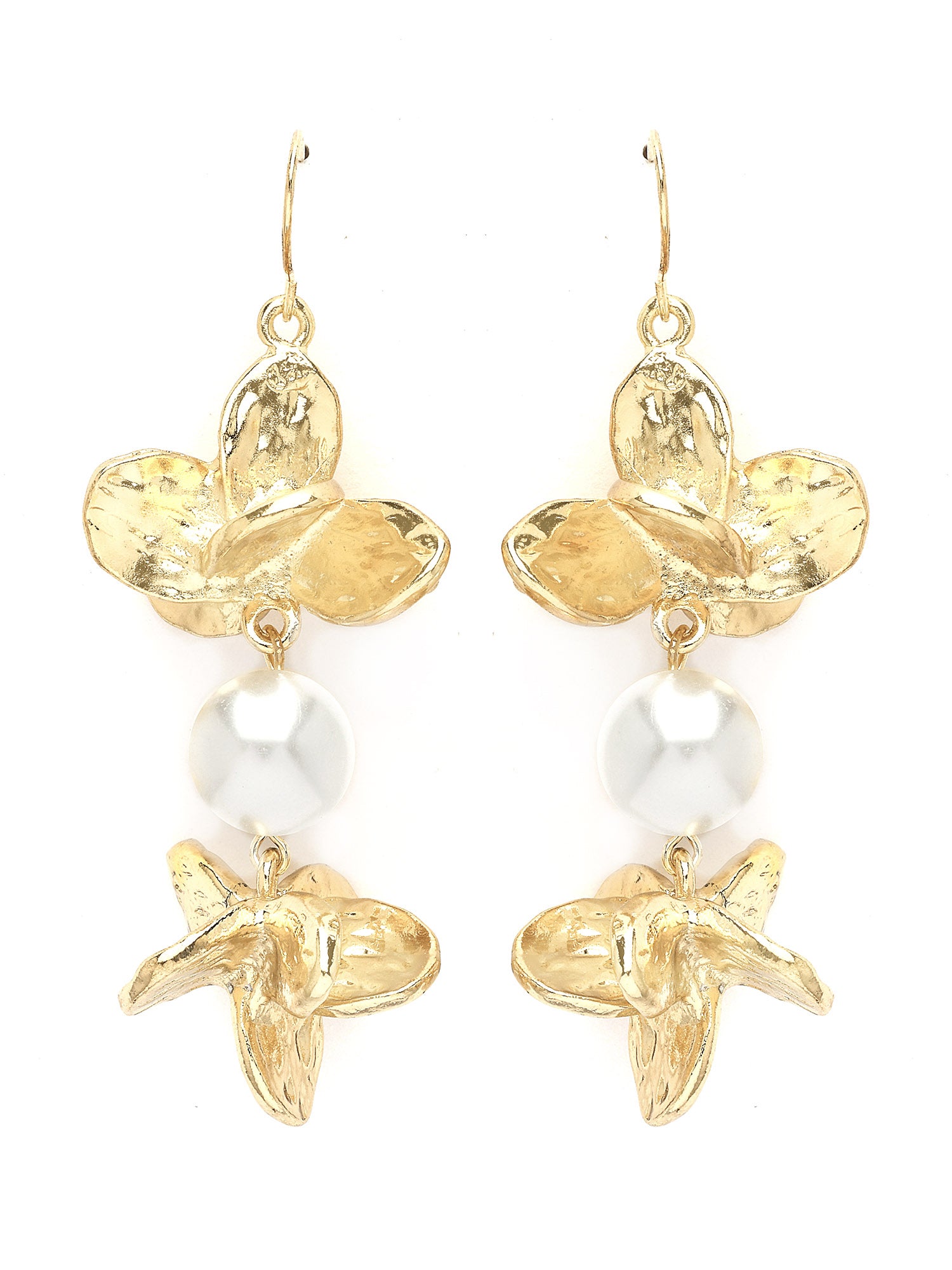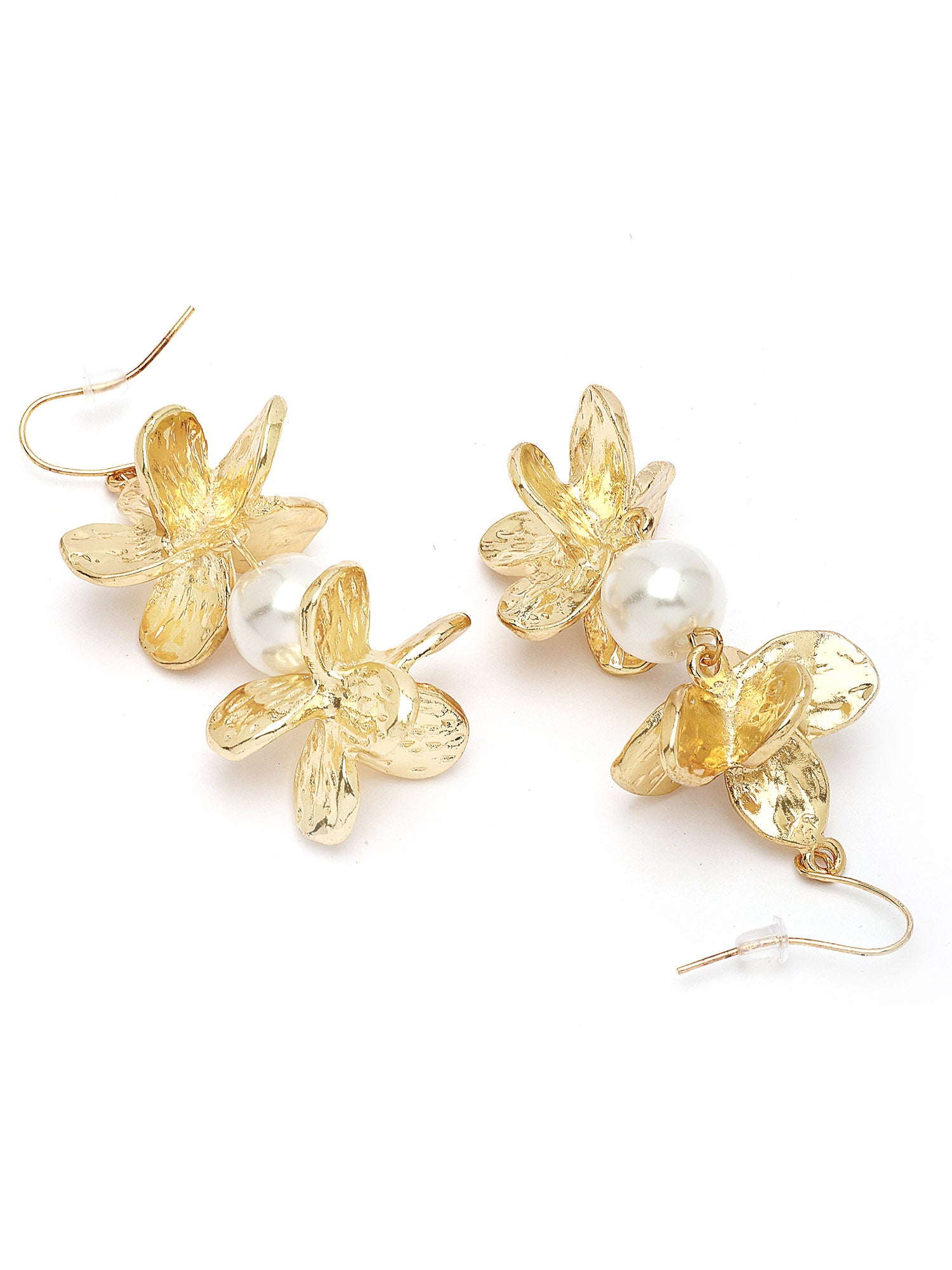 Bohey by KARATCART Gold Plated Floral Design Drop Earrings for Women