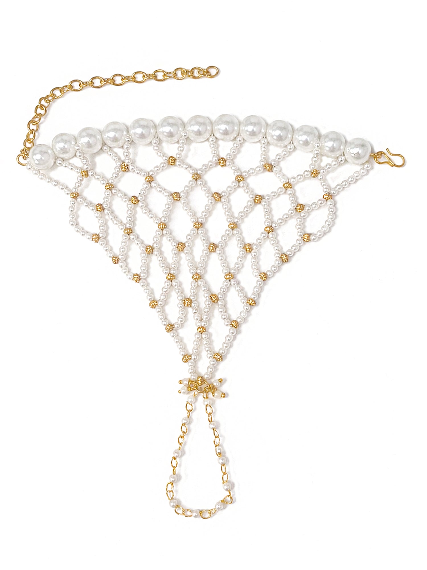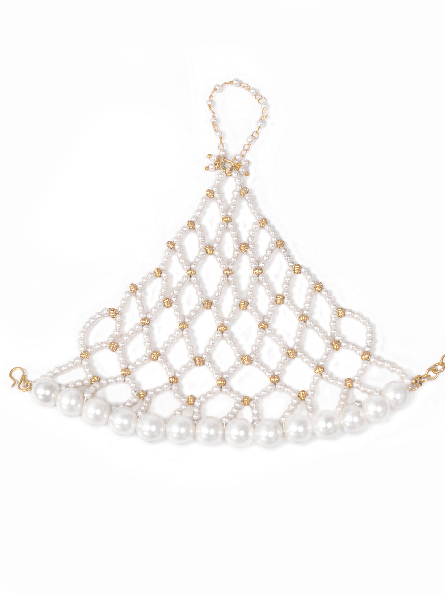 KARATCART Traditional Gold Tone Pearl Net Design Hathphool for Women