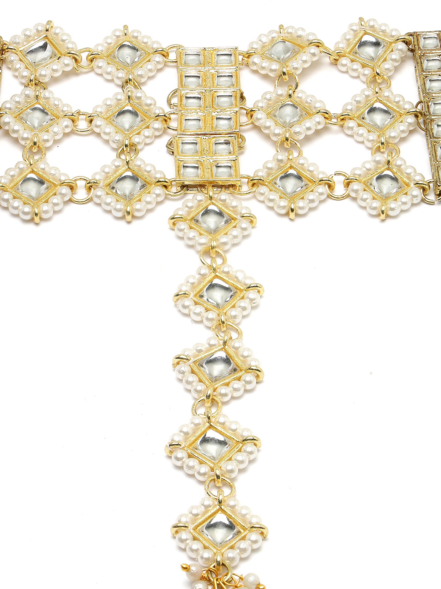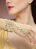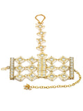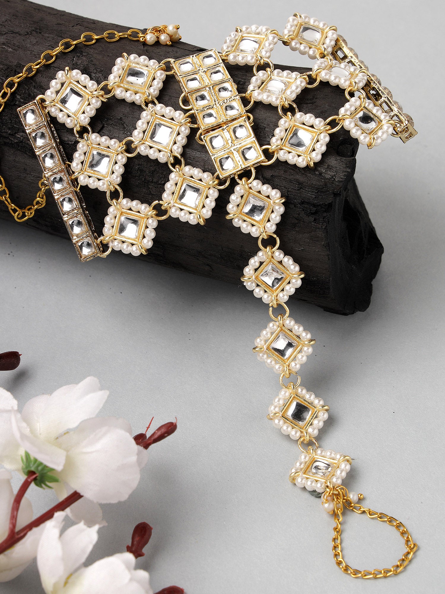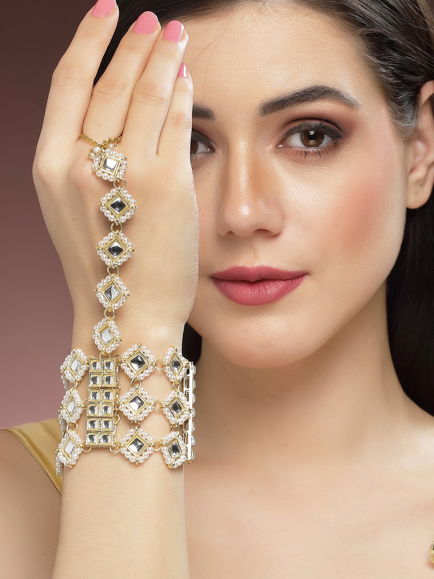- This is a Gold Hathphool by Brand Karatcart which has Kundan stones.This is Gold Plated. We at KARATCART understand your desire to look the best on any day & we thrive in making any day an occasion. Every individual at Karatcart carries a passion for jewellery and it reflects in our beautiful designs as well as in our breathtaking craftsmanship. We create unique jewellery so you can make heads turn..