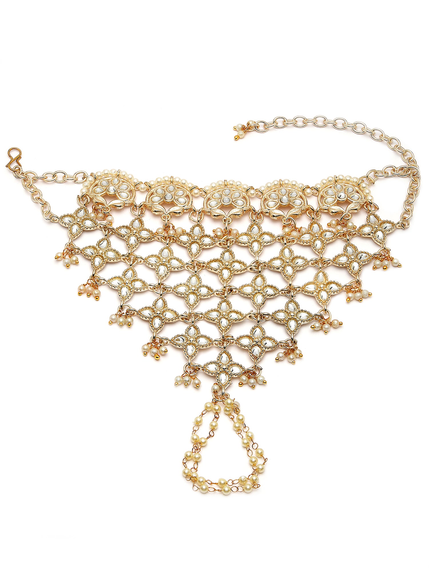 - This is a Gold Hathphool by Brand Karatcart which has Kundan stones.This is Gold Plated. We at KARATCART understand your desire to look the best on any day & we thrive in making any day an occasion. Every individual at Karatcart carries a passion for jewellery and it reflects in our beautiful designs as well as in our breathtaking craftsmanship. We create unique jewellery so you can make heads turn..