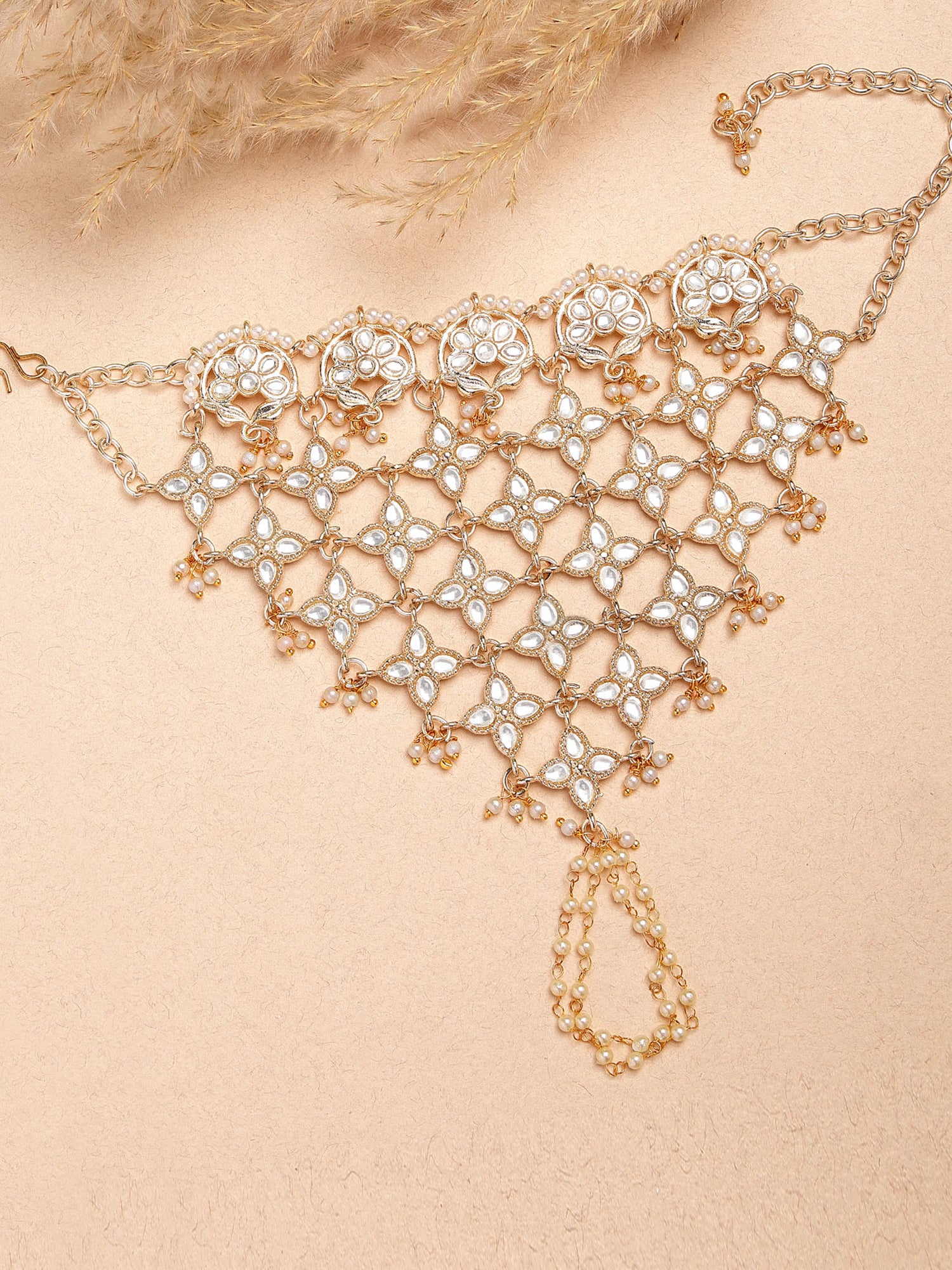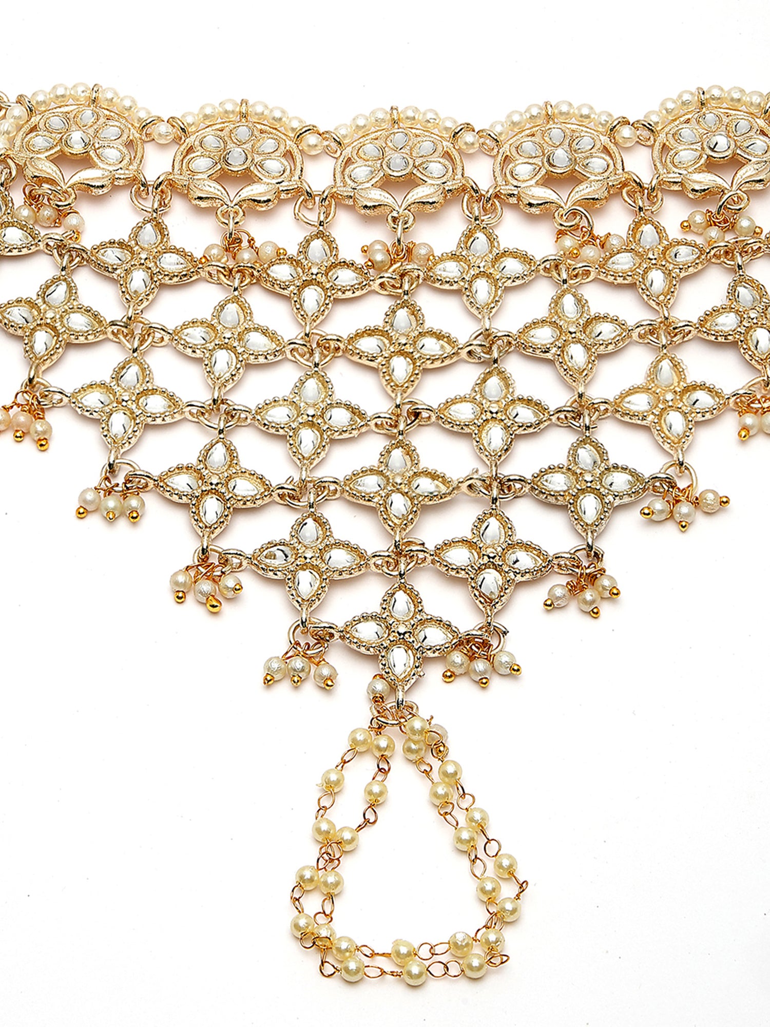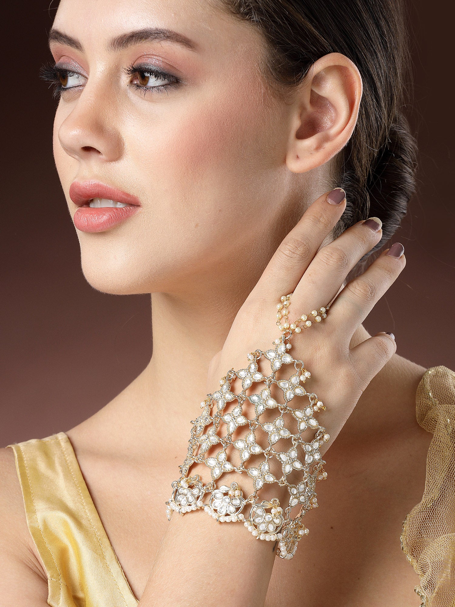 Karatcart Gold Plated Floral Kundan Jali Hathphool for Women