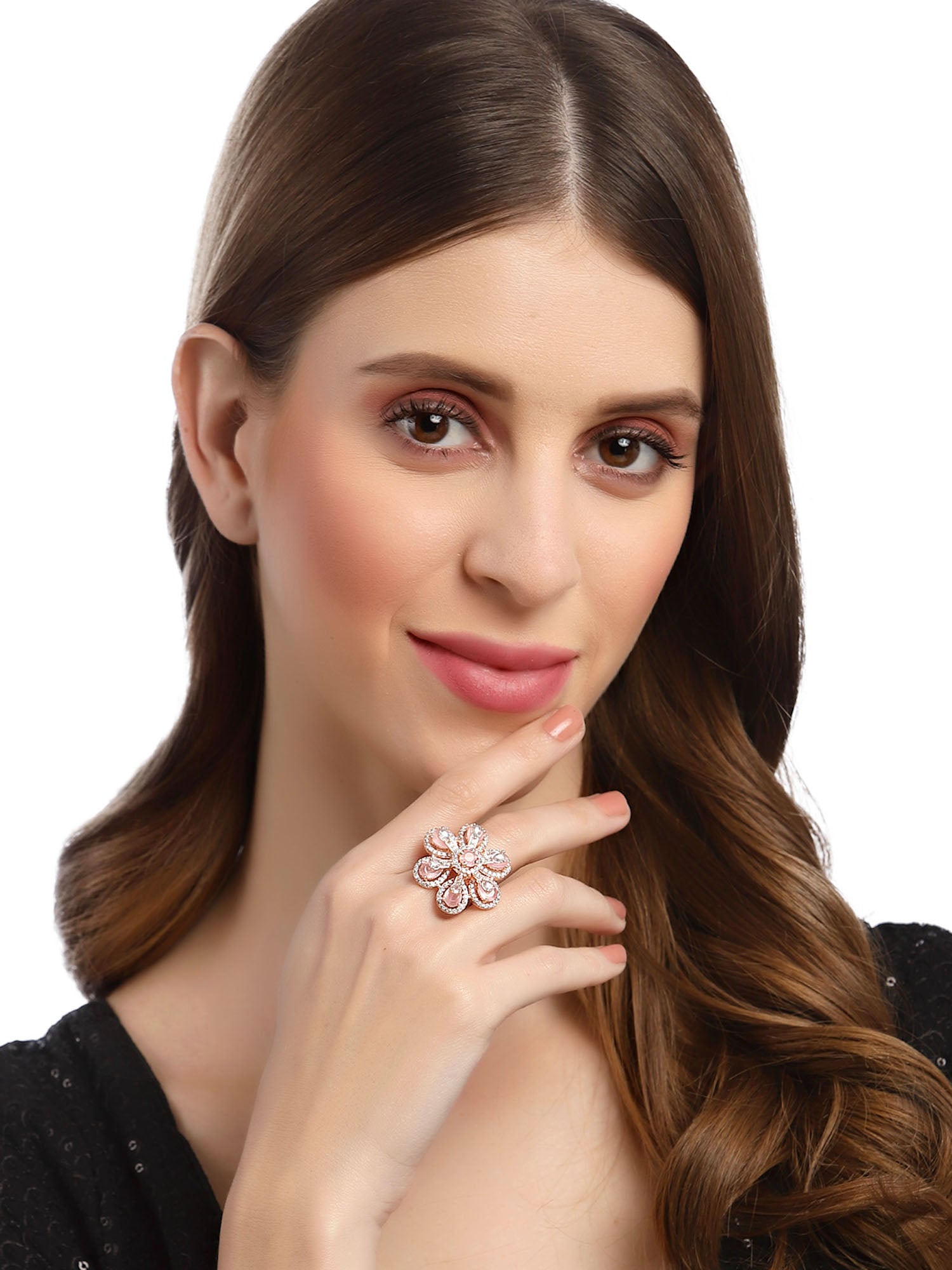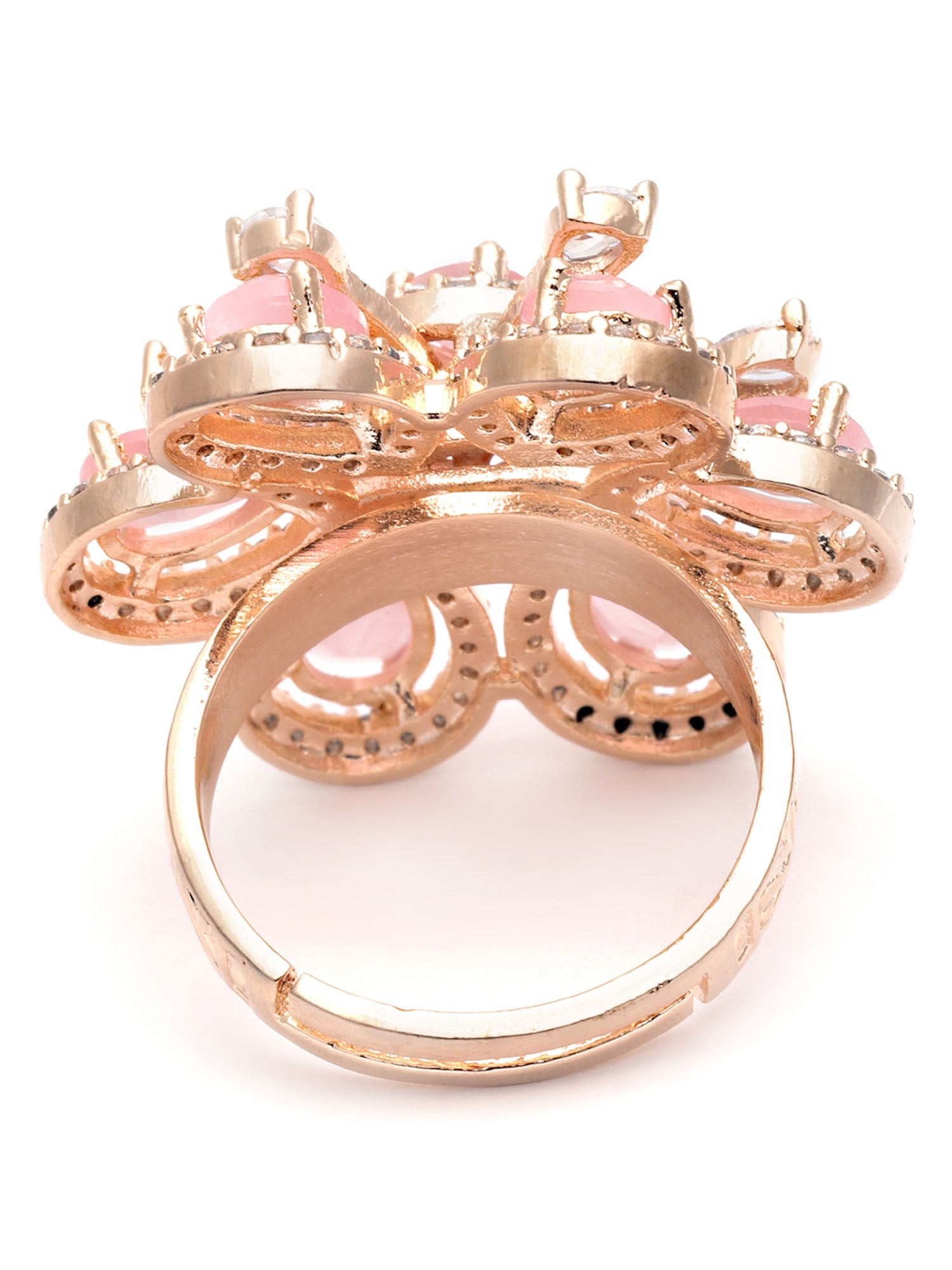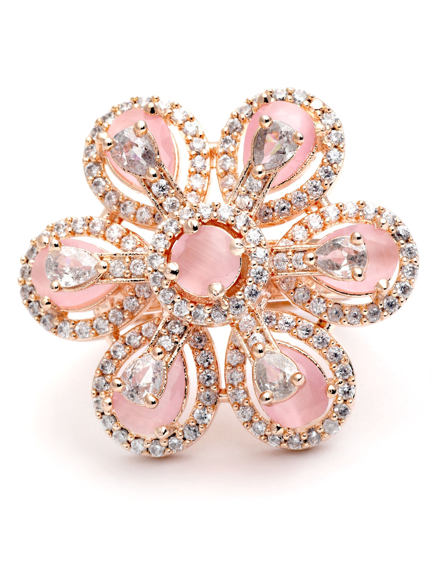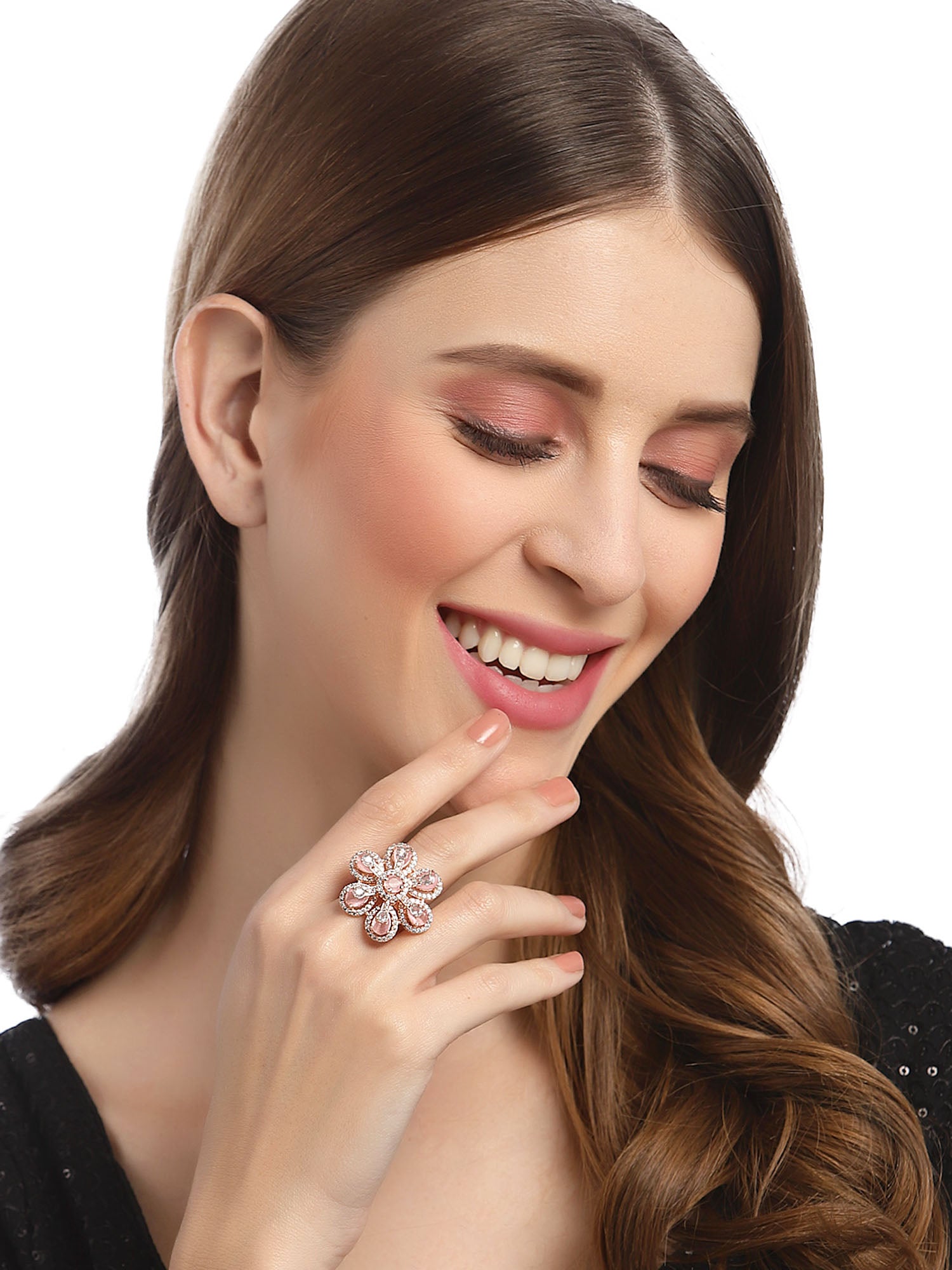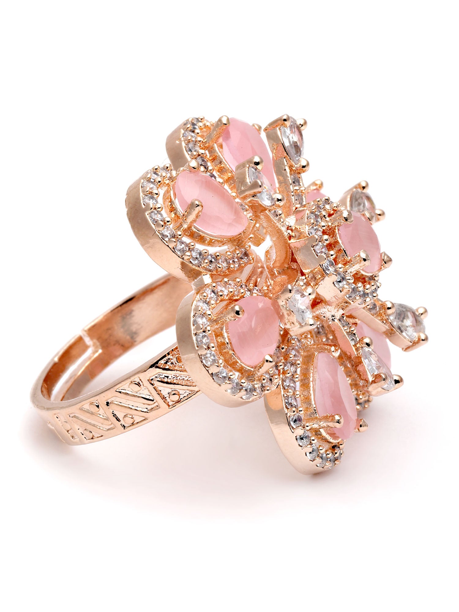- Karatcart Pink Cubic Zirconia Studded Rose Gold Plated Adjustable Ring for Women. Made of High-Quality Metal Alloy as per International Standards which makes it very skin-friendly.