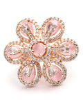Karatcart Pink Cubic Zirconia Studded Rose Gold Plated Adjustable Ring for Women