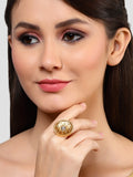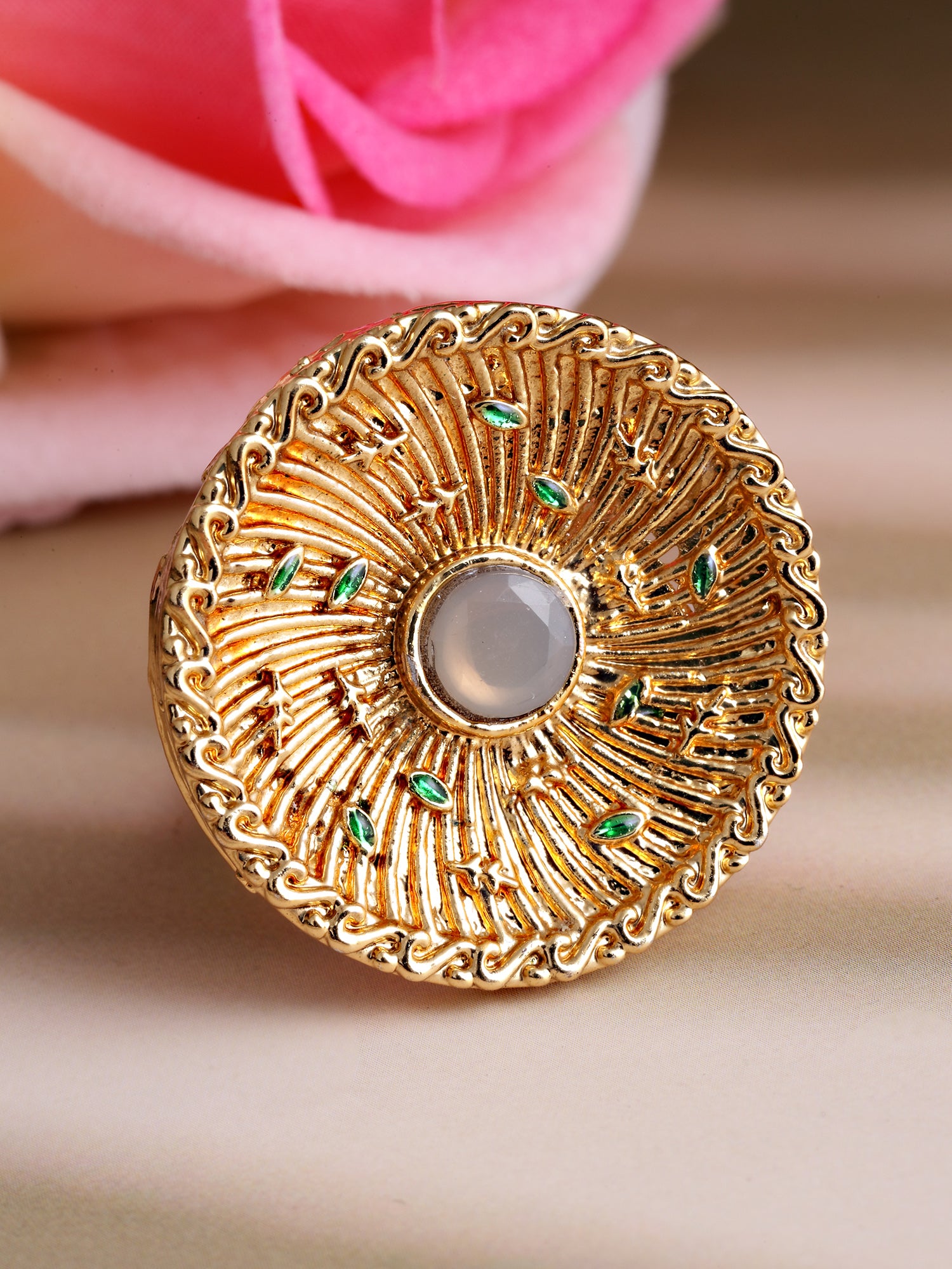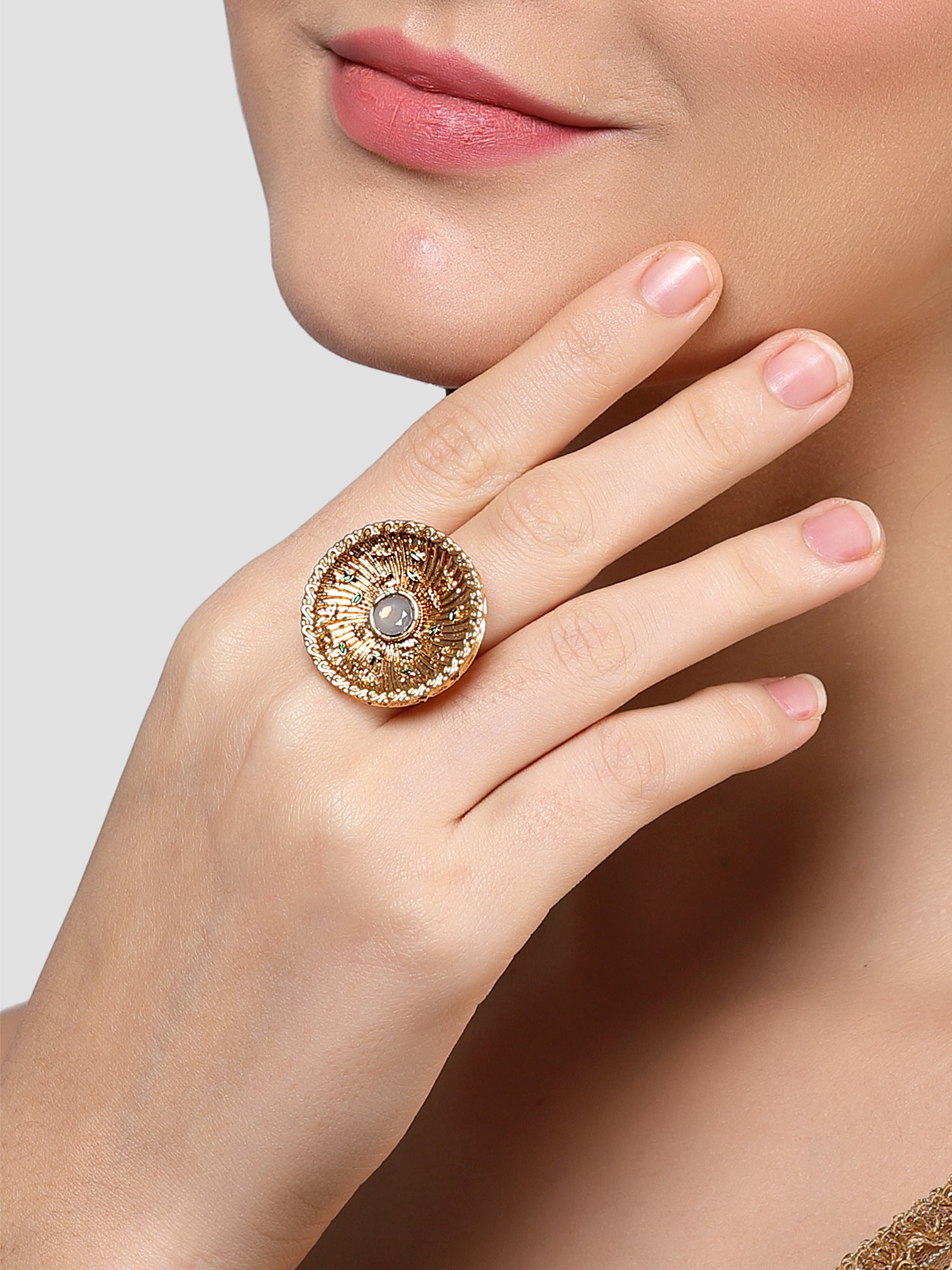 Karatcart Gold Plated Light Grey Monalisa Studded Cocktail Rings for Women