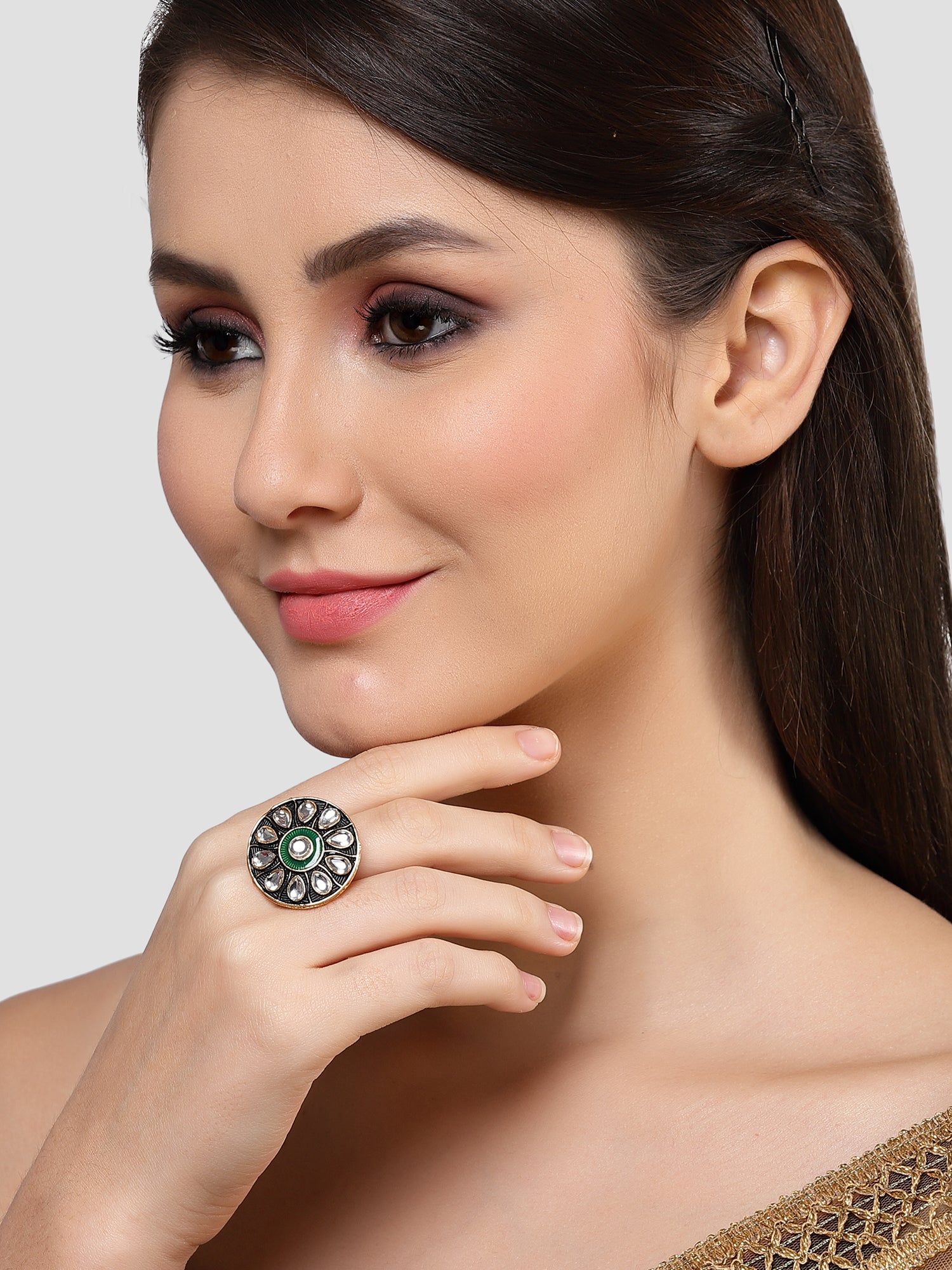 - This is a Green Ring by Brand Karatcart which has White Enamel stones.This is Gold Plated. We at KARATCART understand your desire to look the best on any day & we thrive in making any day an occasion. Every individual at Karatcart carries a passion for jewellery and it reflects in our beautiful designs as well as in our breathtaking craftsmanship. We create unique jewellery so you can make heads turn..