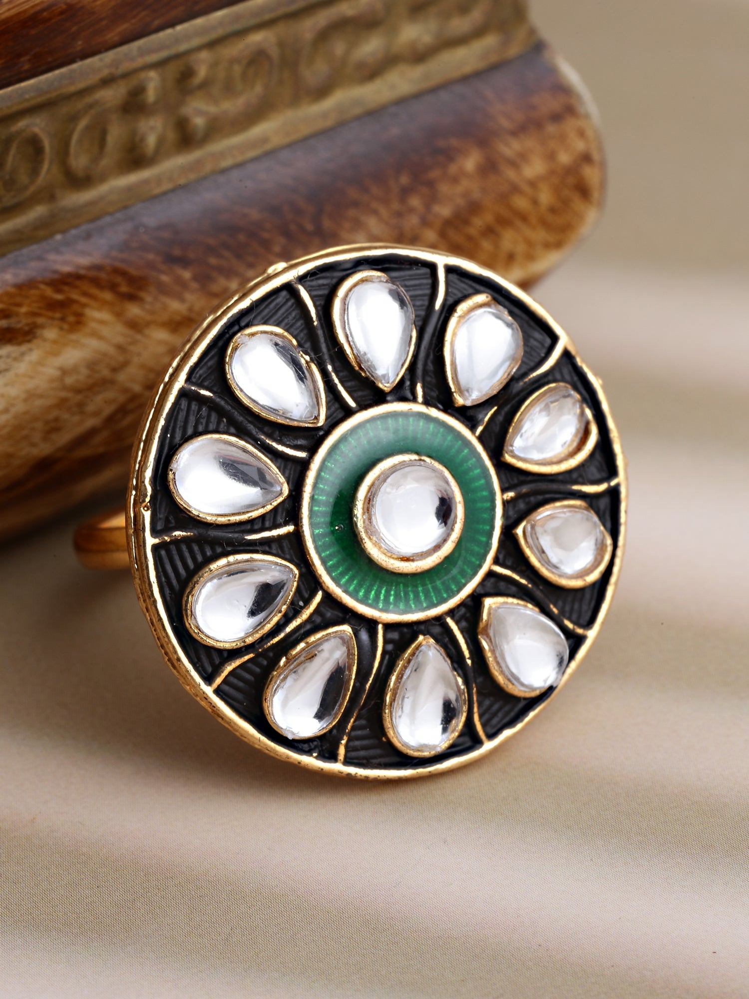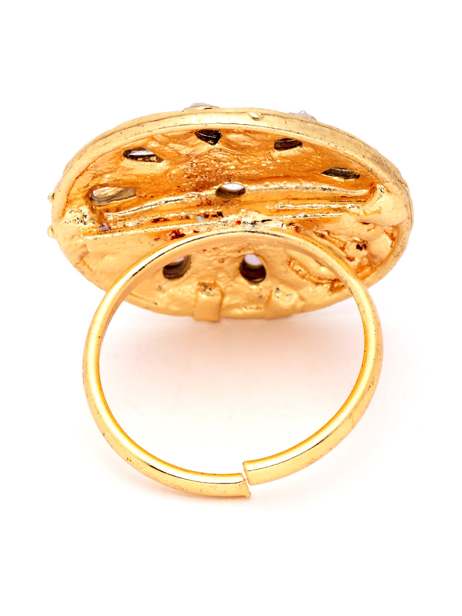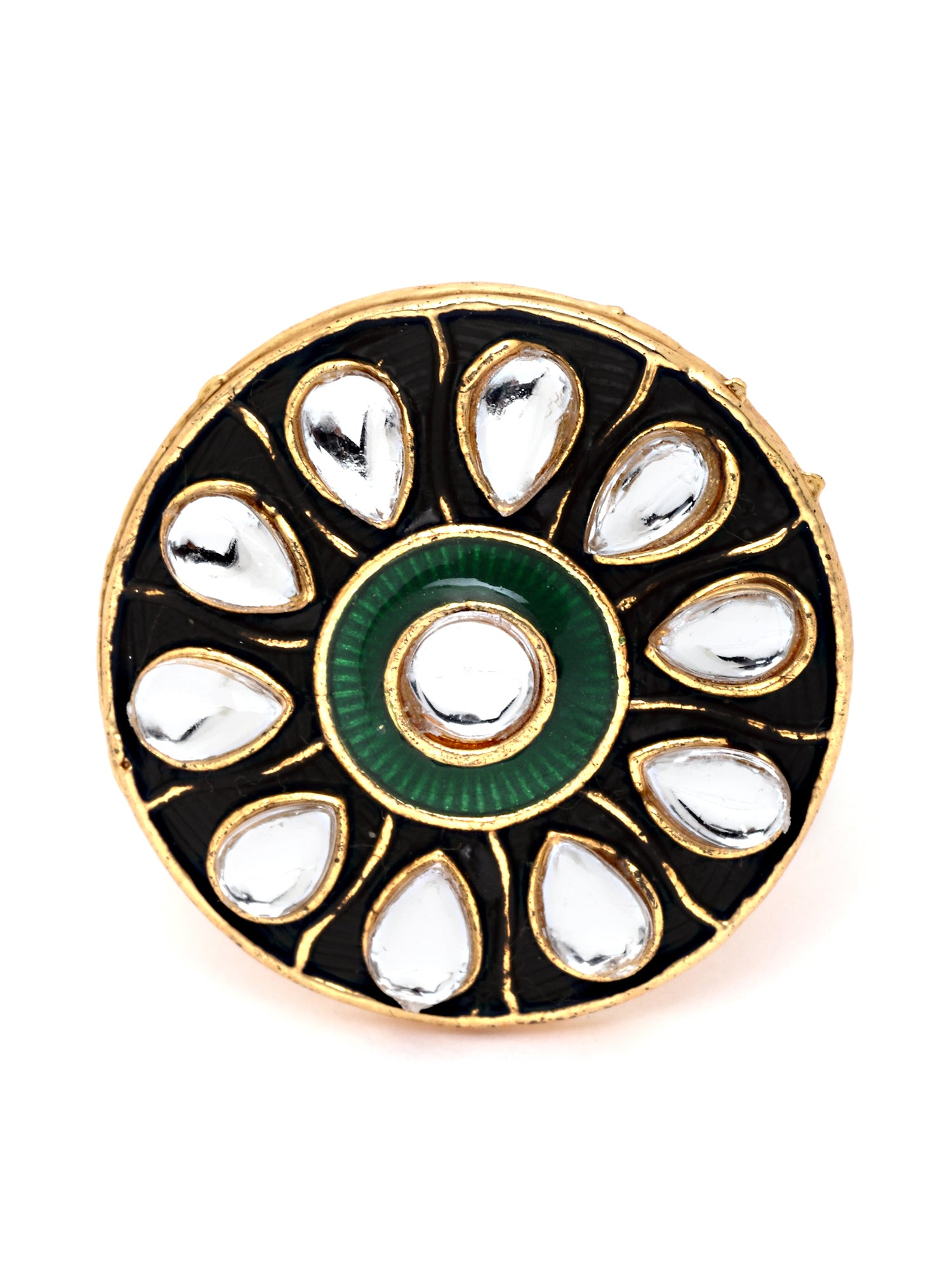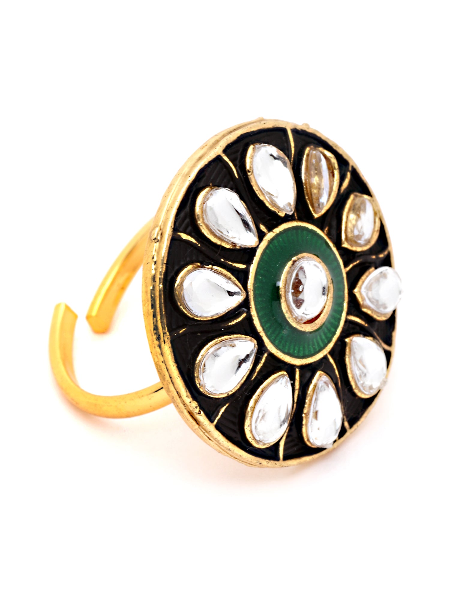 Karatcart Gold Plated Green Meena Kundan Studded Cocktail Rings for Women