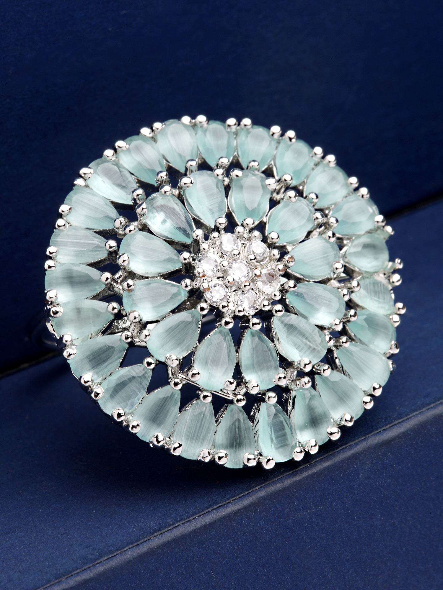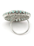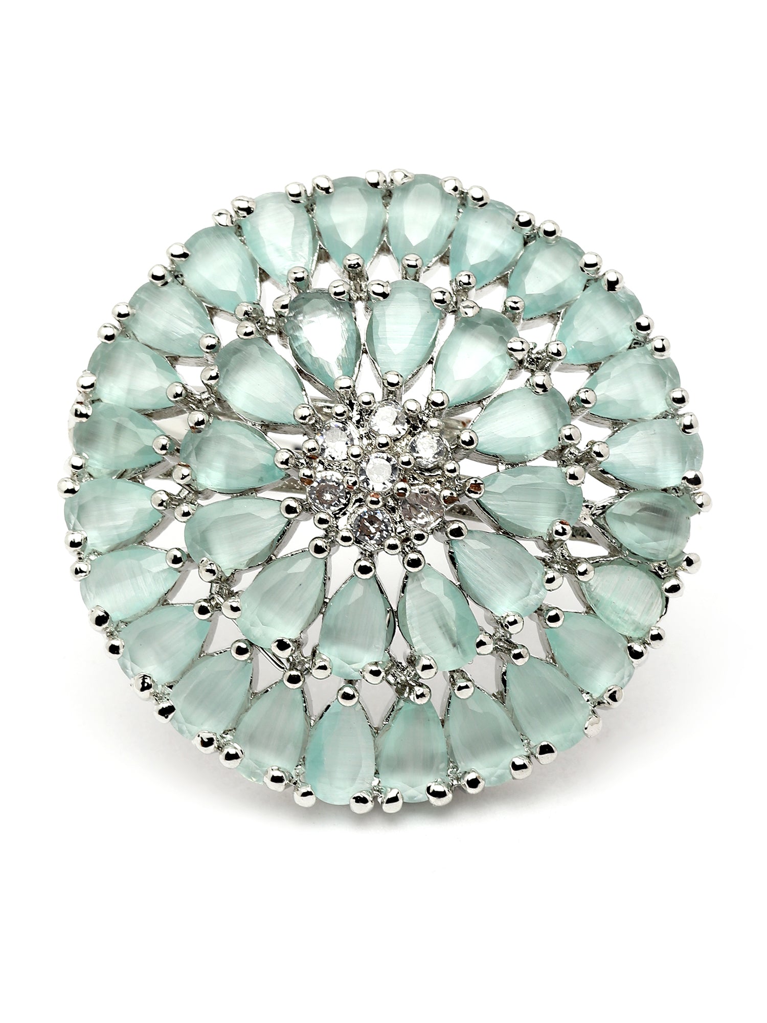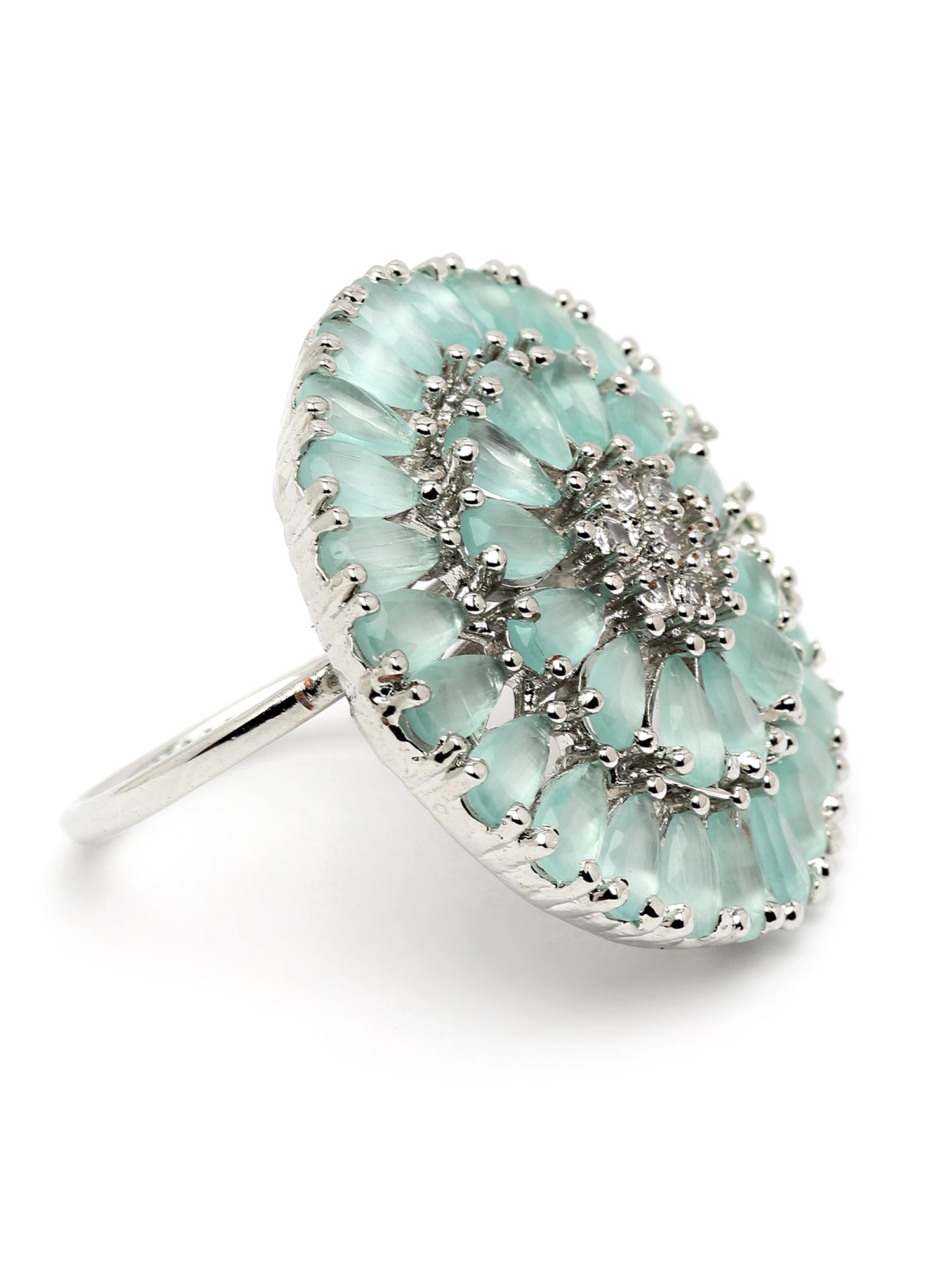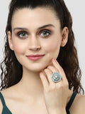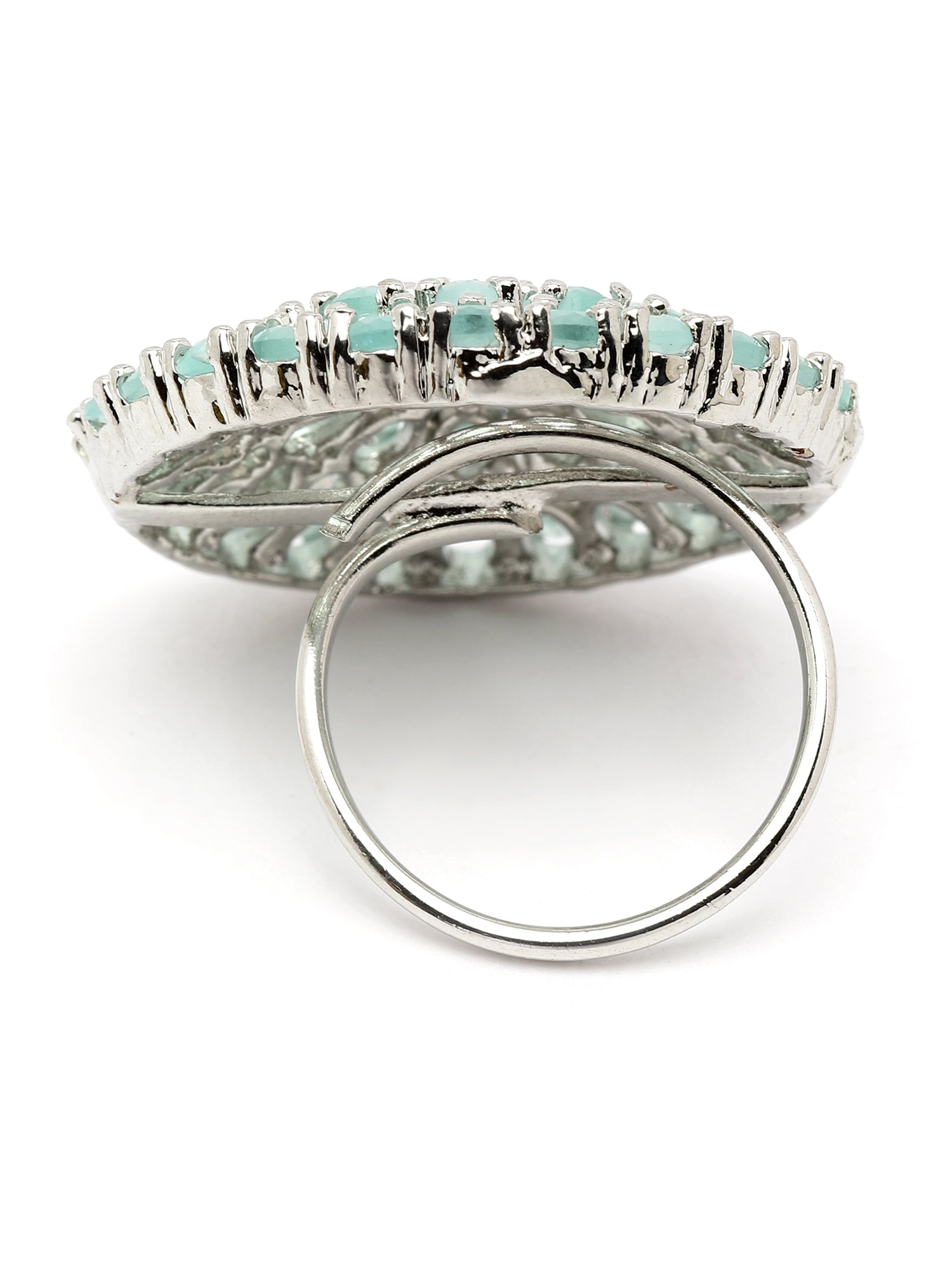 Karatcart Silver Tone Lime Green Drop Shape CZ Studded Cocktail Ring for Women