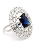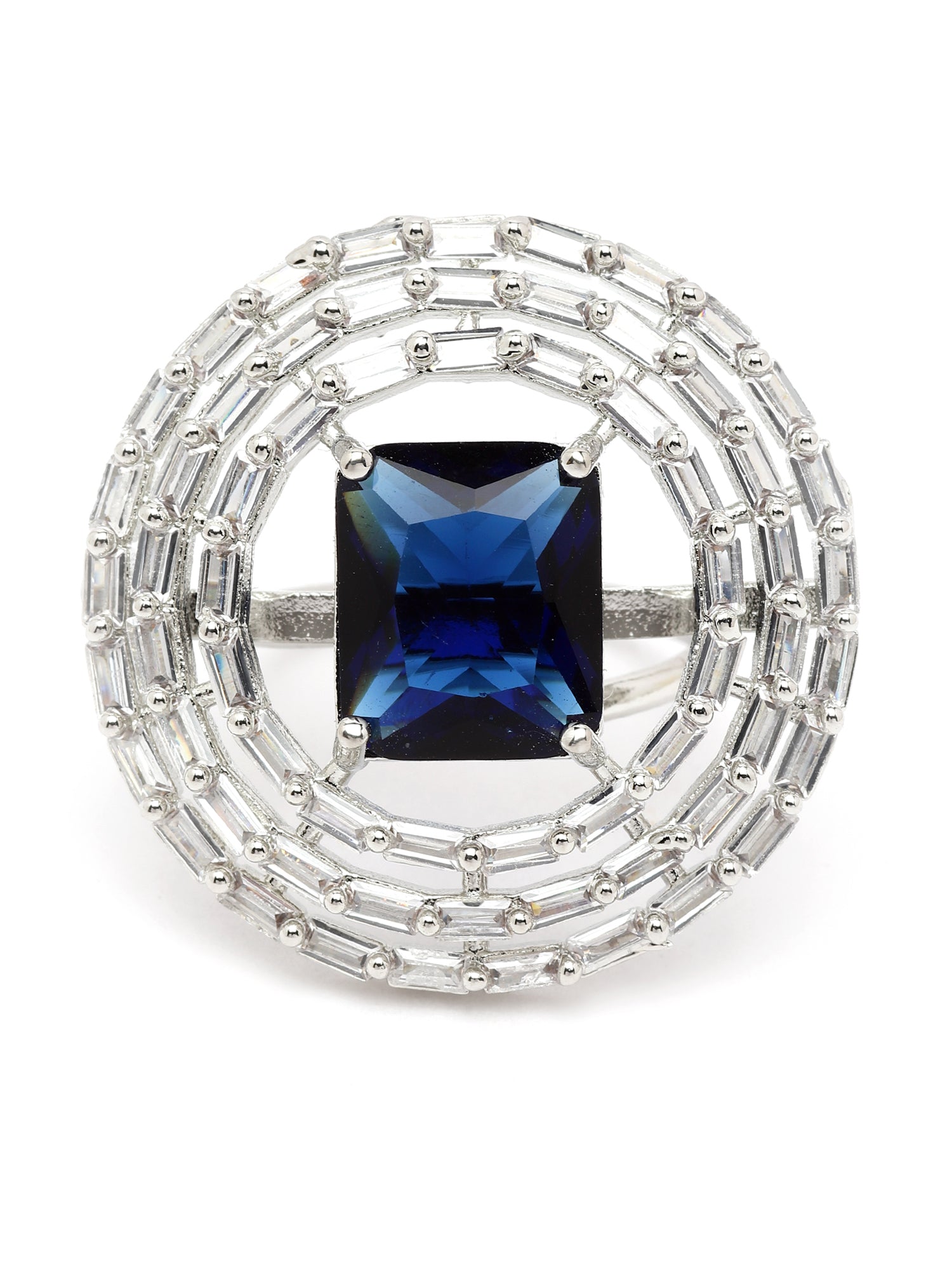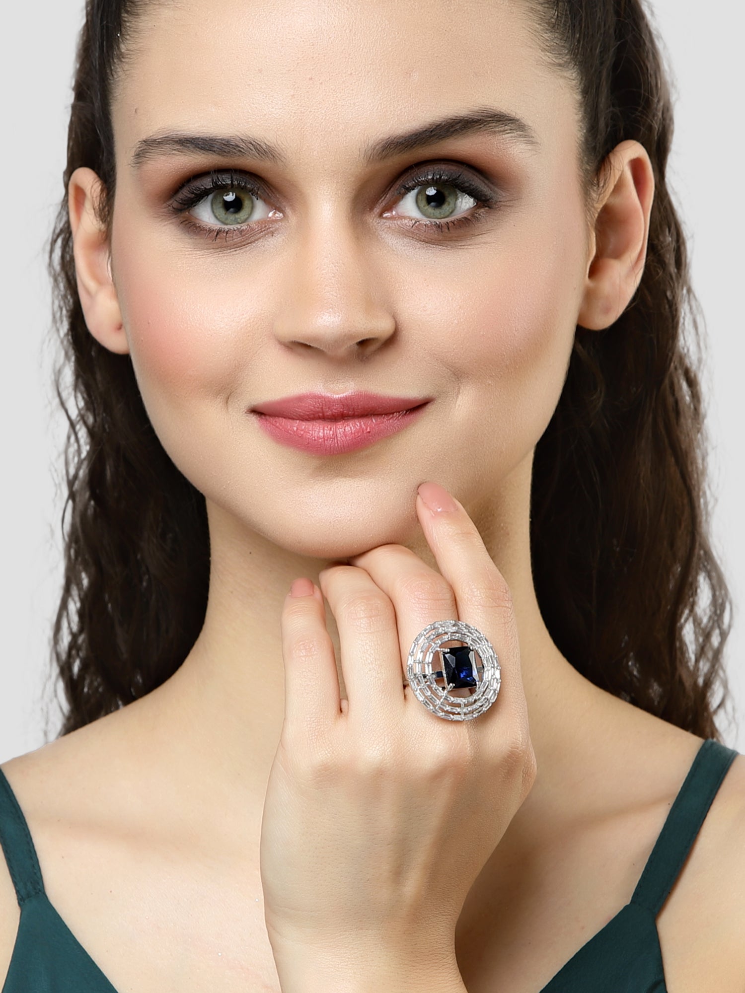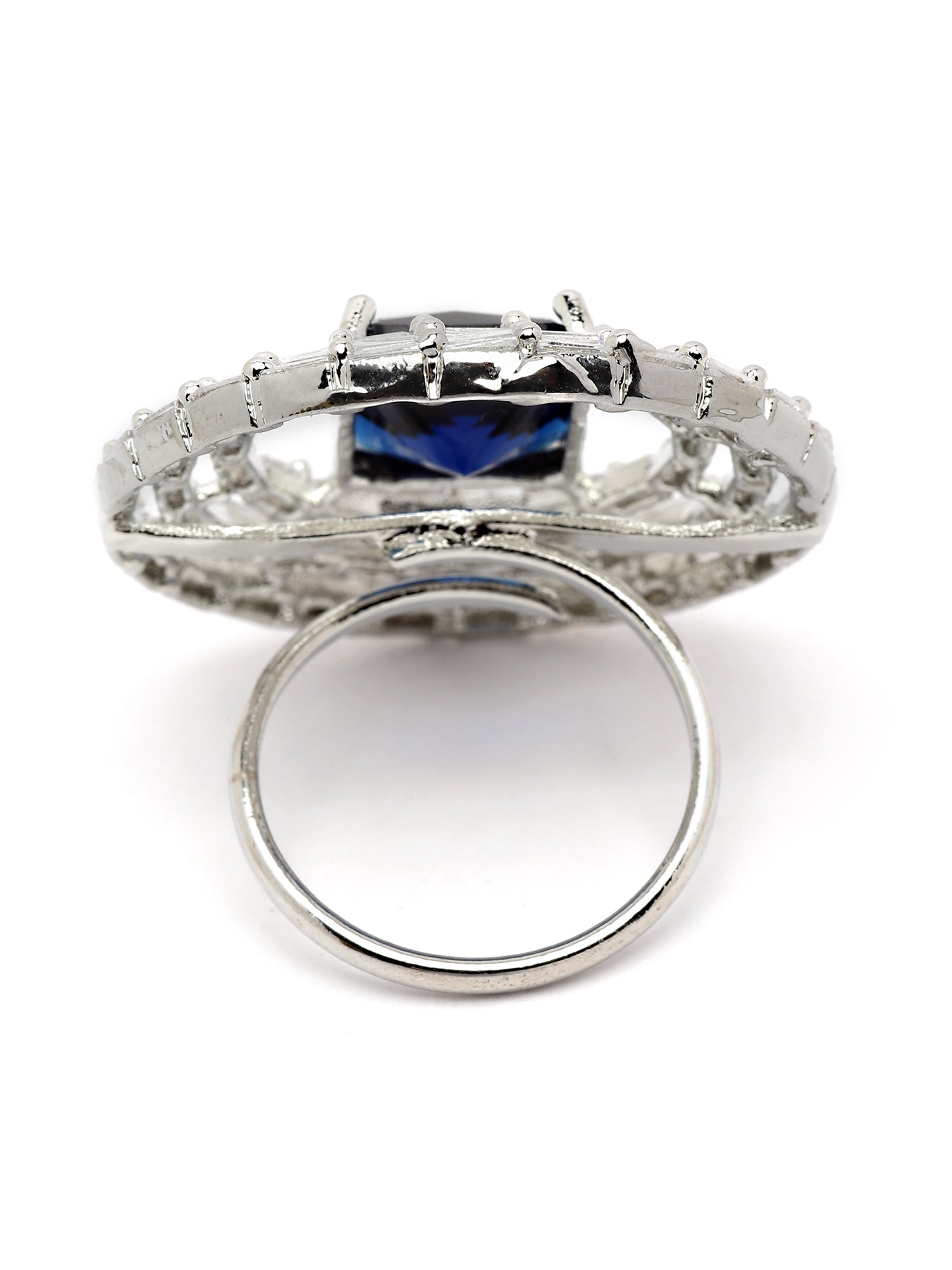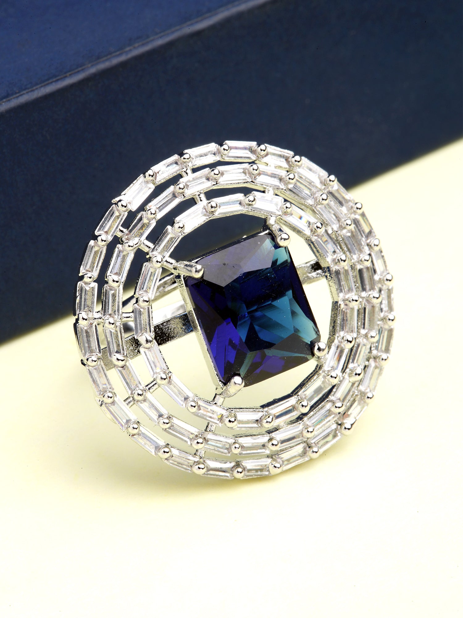 Karatcart Silver Tone Blue Cubic Zirconia Studded Cocktail Ring for Women