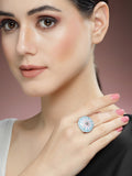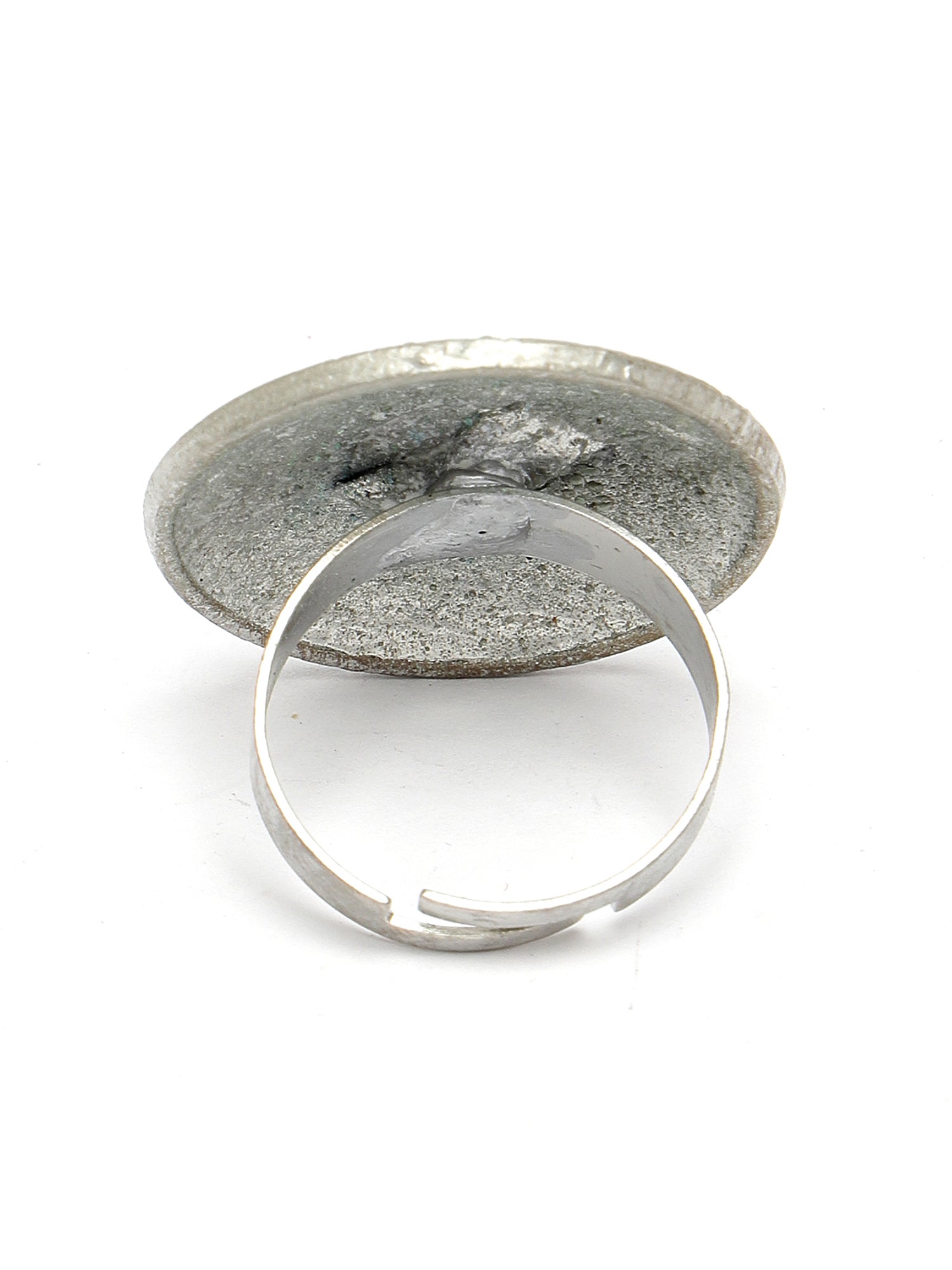 Karatcart Oxidised Silver Star Design Pink and Light Blue Meena Finger Ring for Women