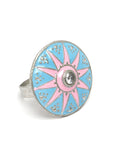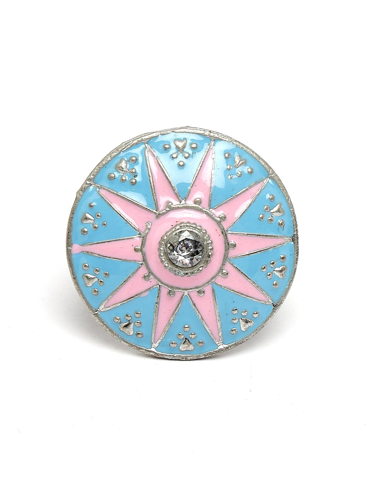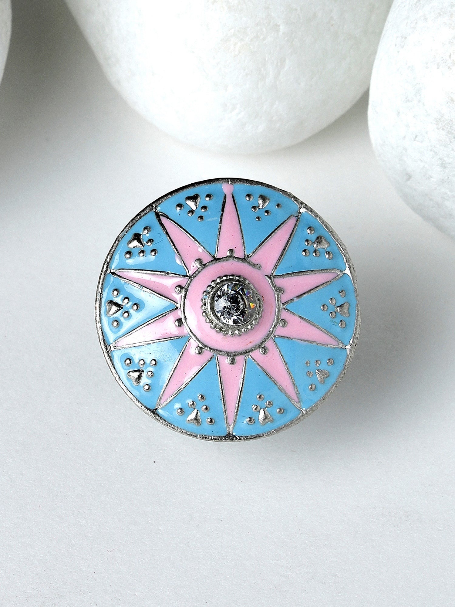 - This is a LIght Blue and Pink Ring by Brand Karatcart which has Enamel stones.This is Oxidised Silver. We at KARATCART understand your desire to look the best on any day & we thrive in making any day an occasion. Every individual at Karatcart carries a passion for jewellery and it reflects in our beautiful designs as well as in our breathtaking craftsmanship. We create unique jewellery so you can make heads turn..