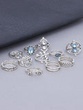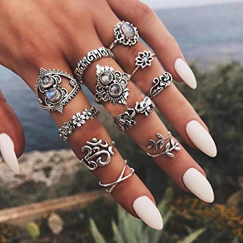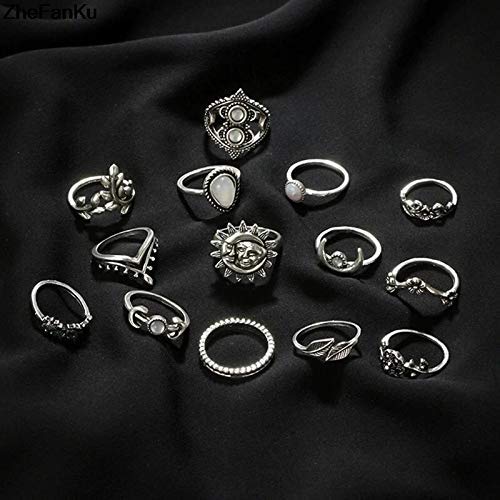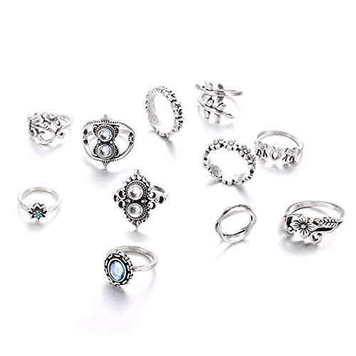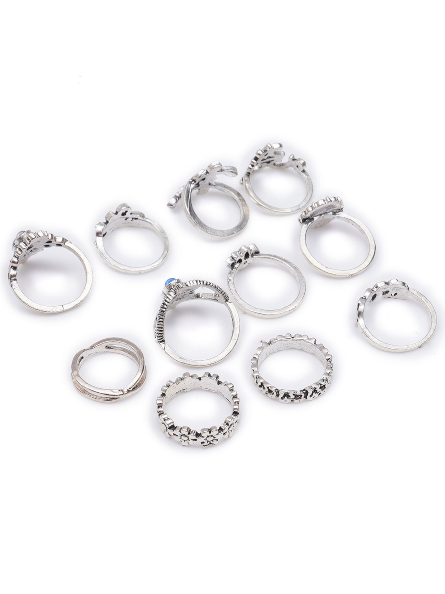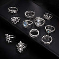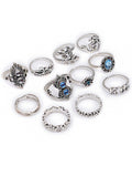 Antique Set of 11 Oxidised Silver Colour White Pearl Bohemian Midi Rings for Women