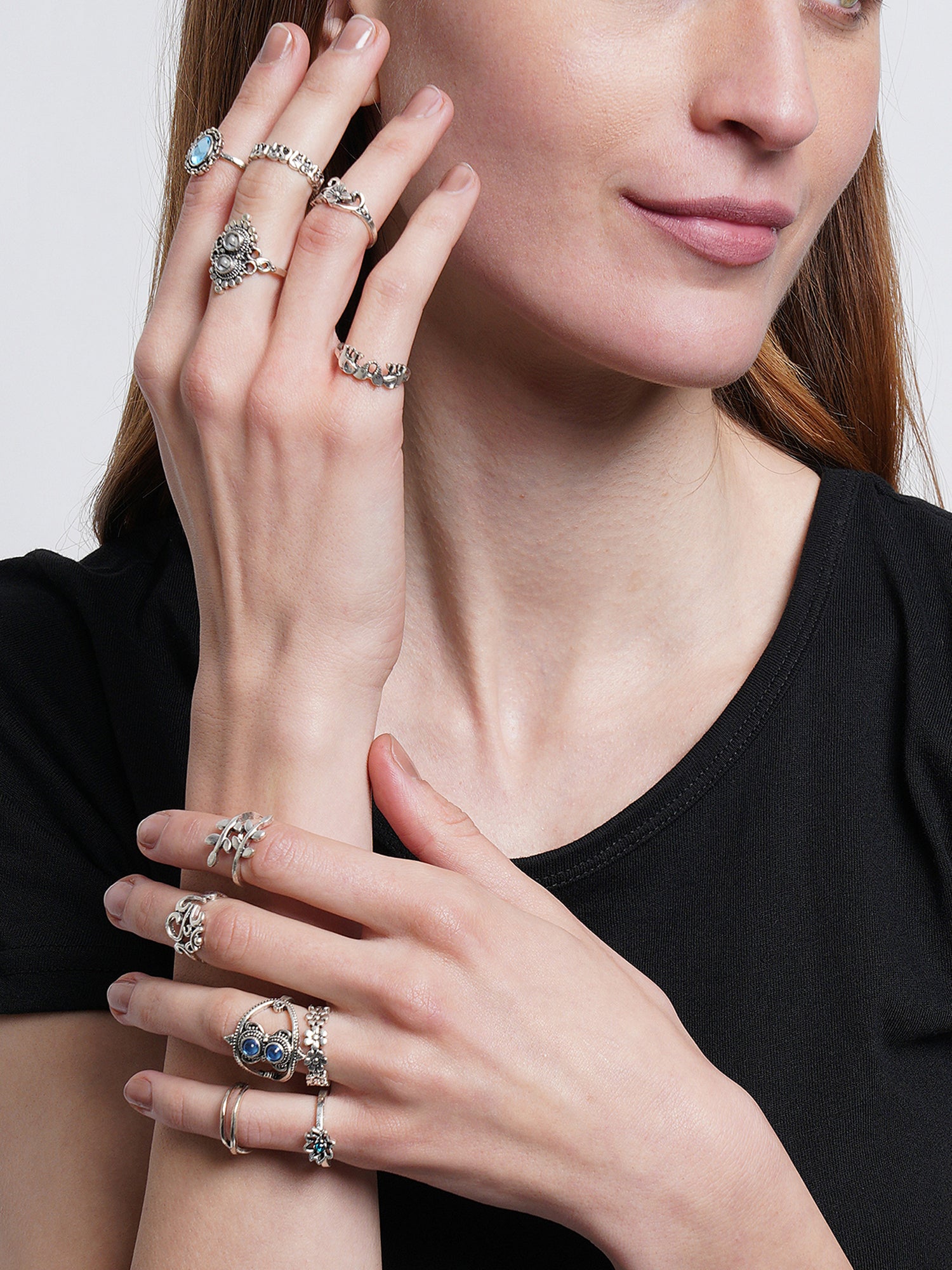- Antique Set of 11 Oxidised Silver Colour White Pearl Bohemian Midi Rings for Women. Made of High-Quality Metal Alloy as per International Standards which makes it very skin-friendly.