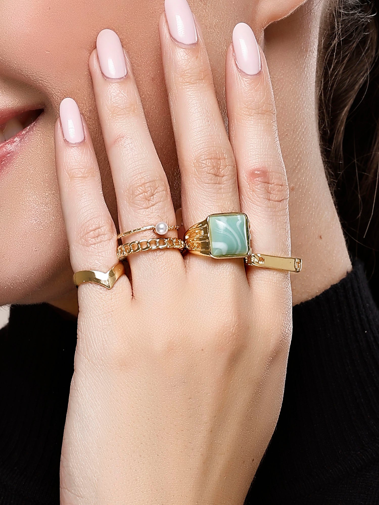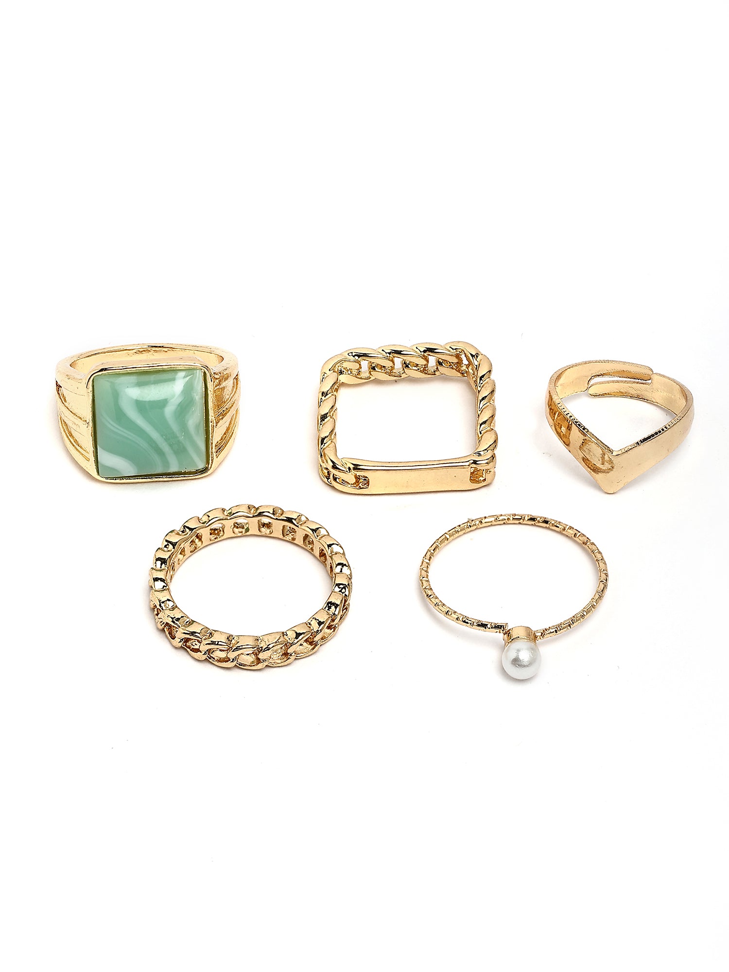 Bohey by KARATCART Set of 5 Gold-Plated Boho Midi Finger Rings for Women