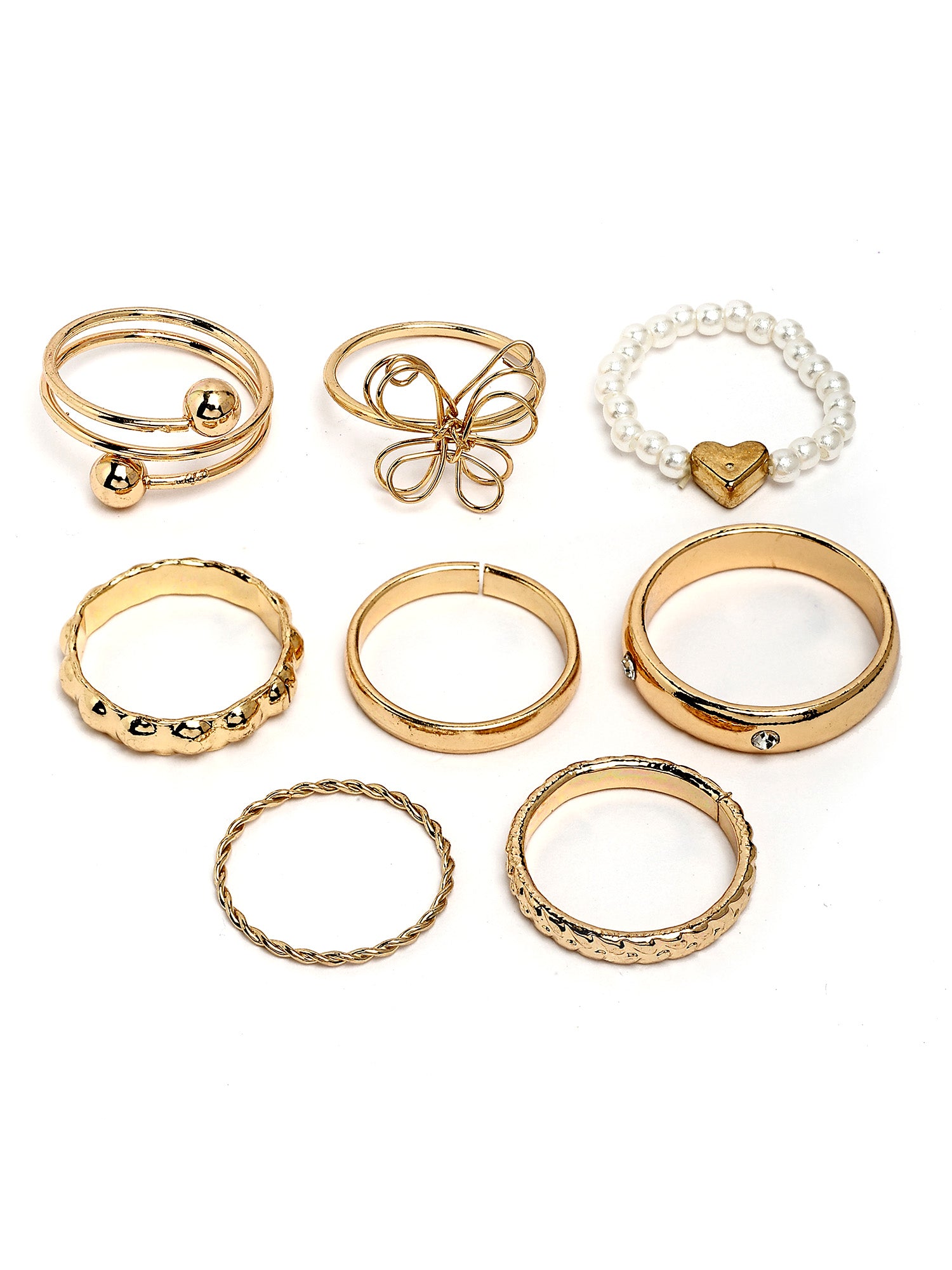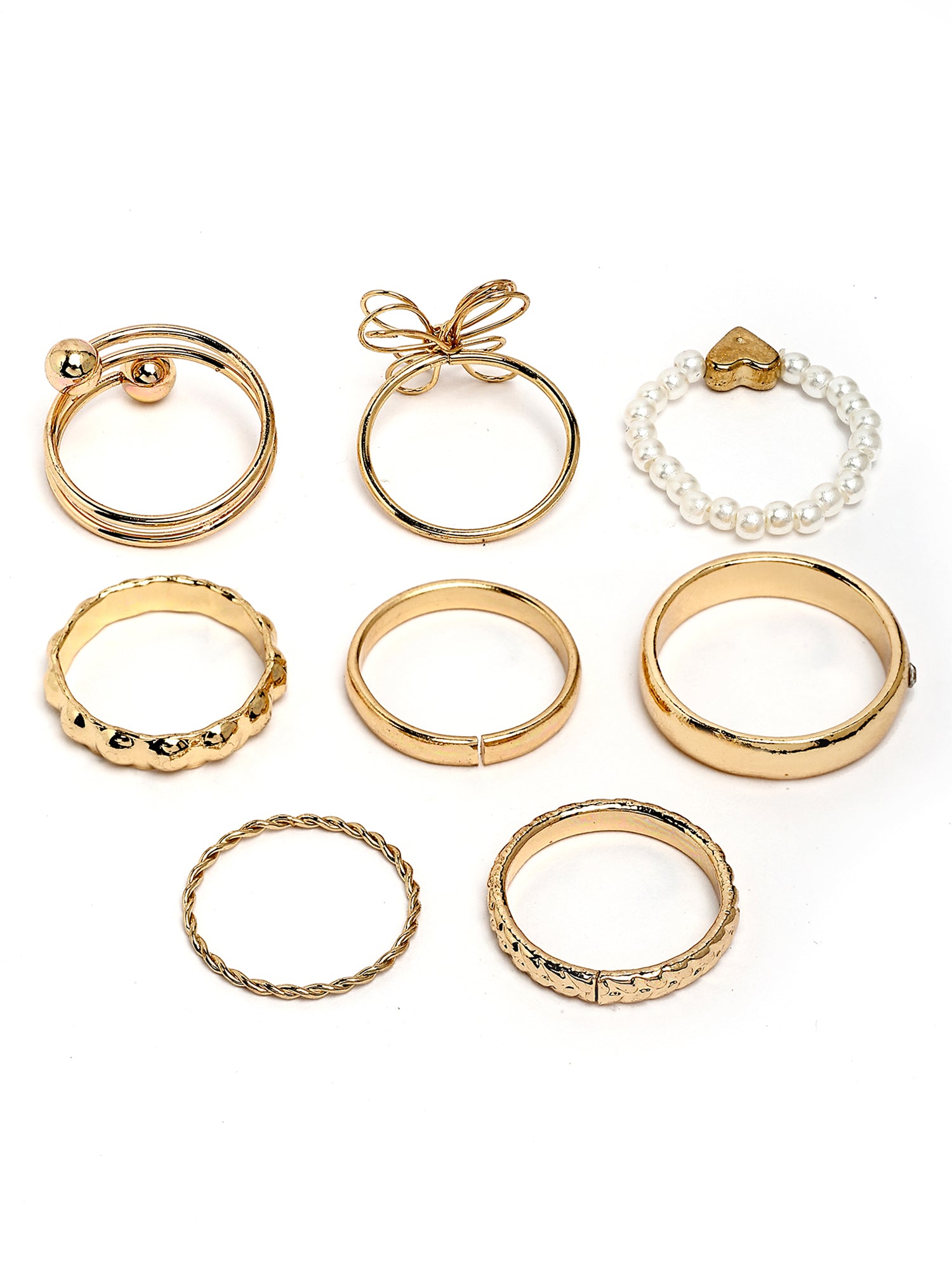 Bohey by KARATCART Set of 8 Gold-Plated Boho Midi Finger Rings for Women