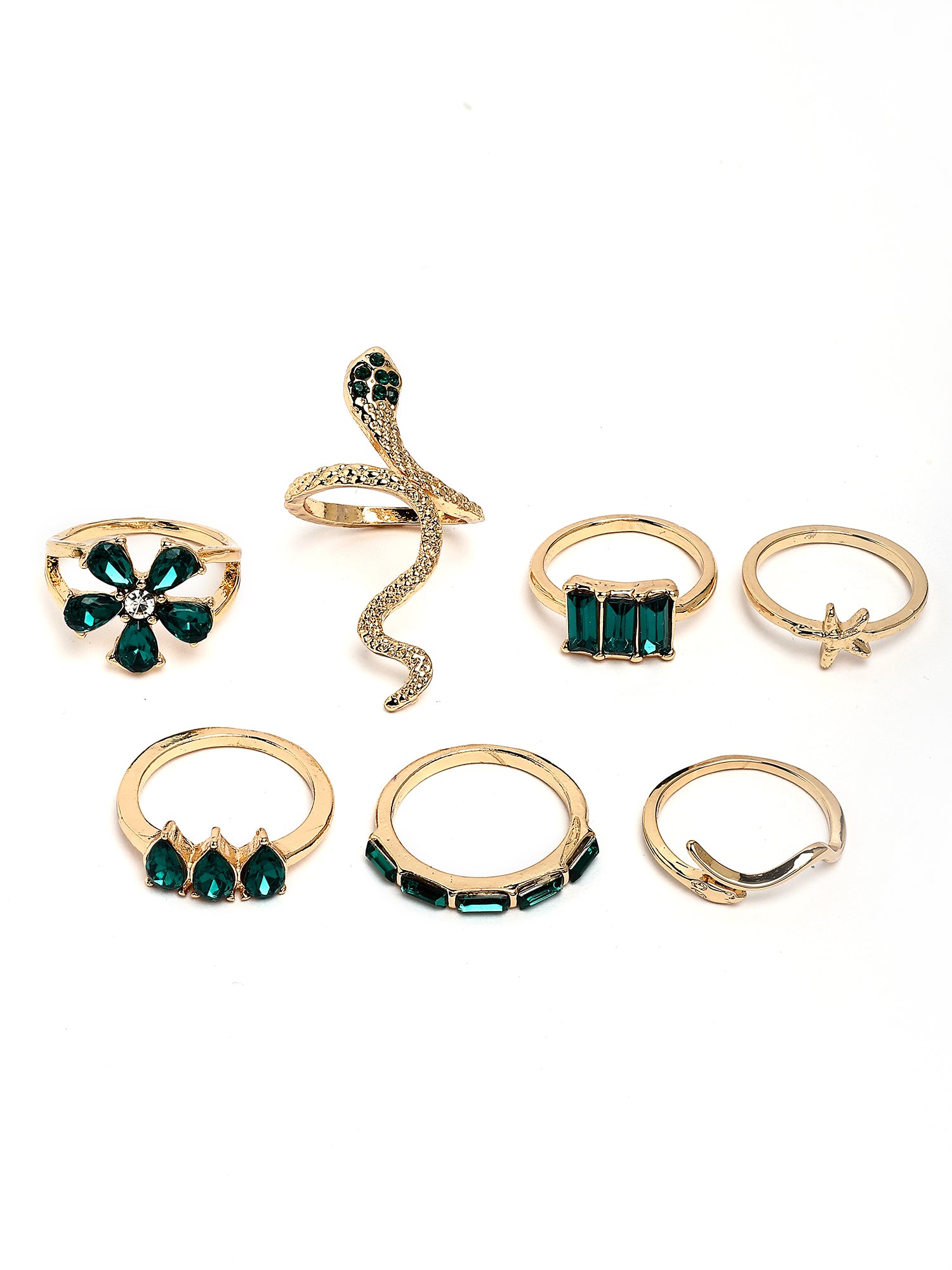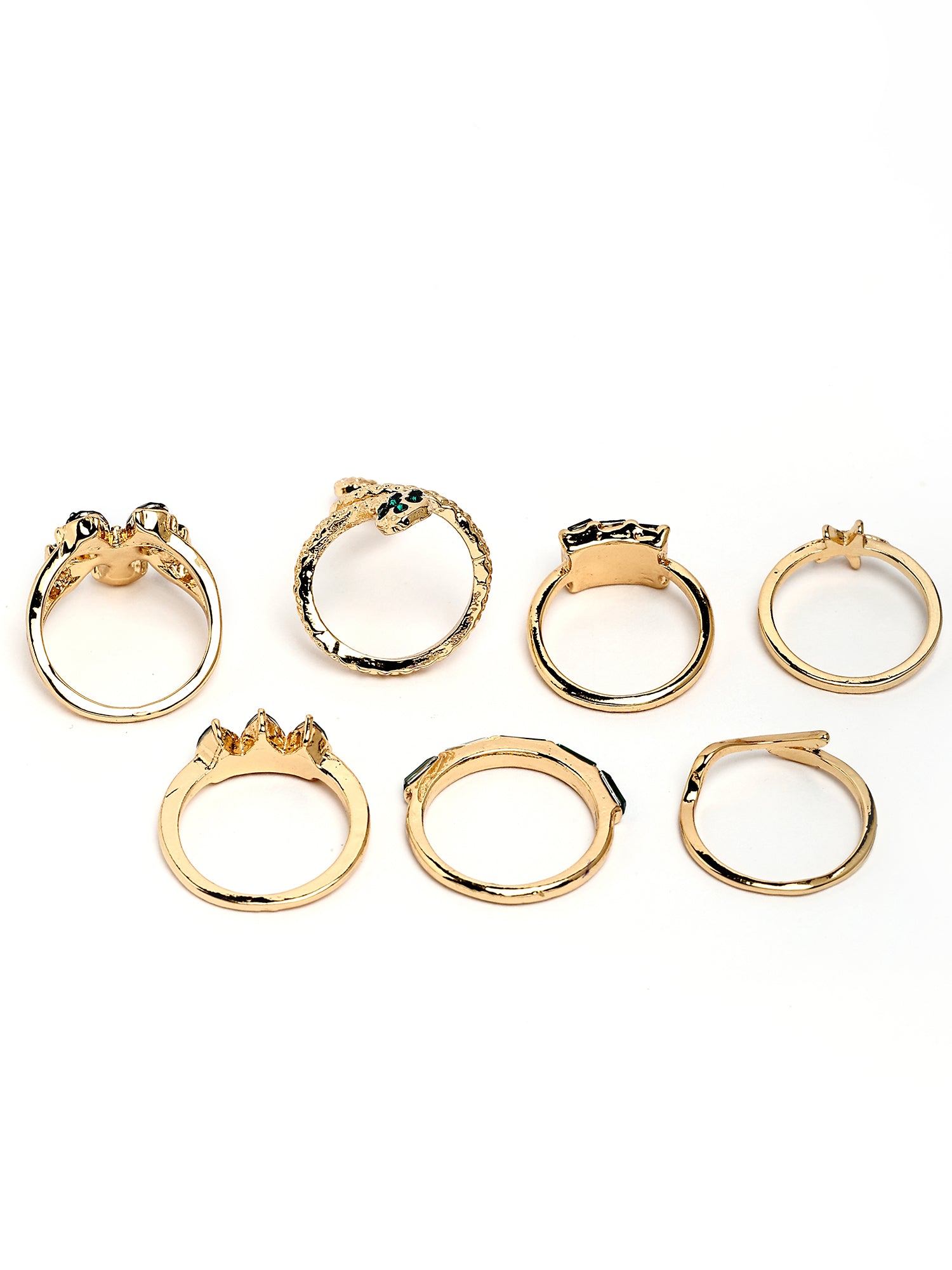 Bohey by KARATCART Set of 7 Gold-Plated Boho Midi Finger Rings for Women