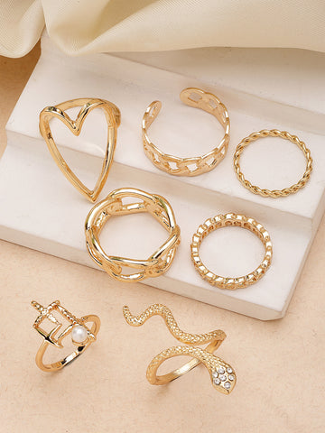 Bohey by KARATCART Set of 7 Gold-Plated Boho Midi Finger Rings for Women