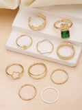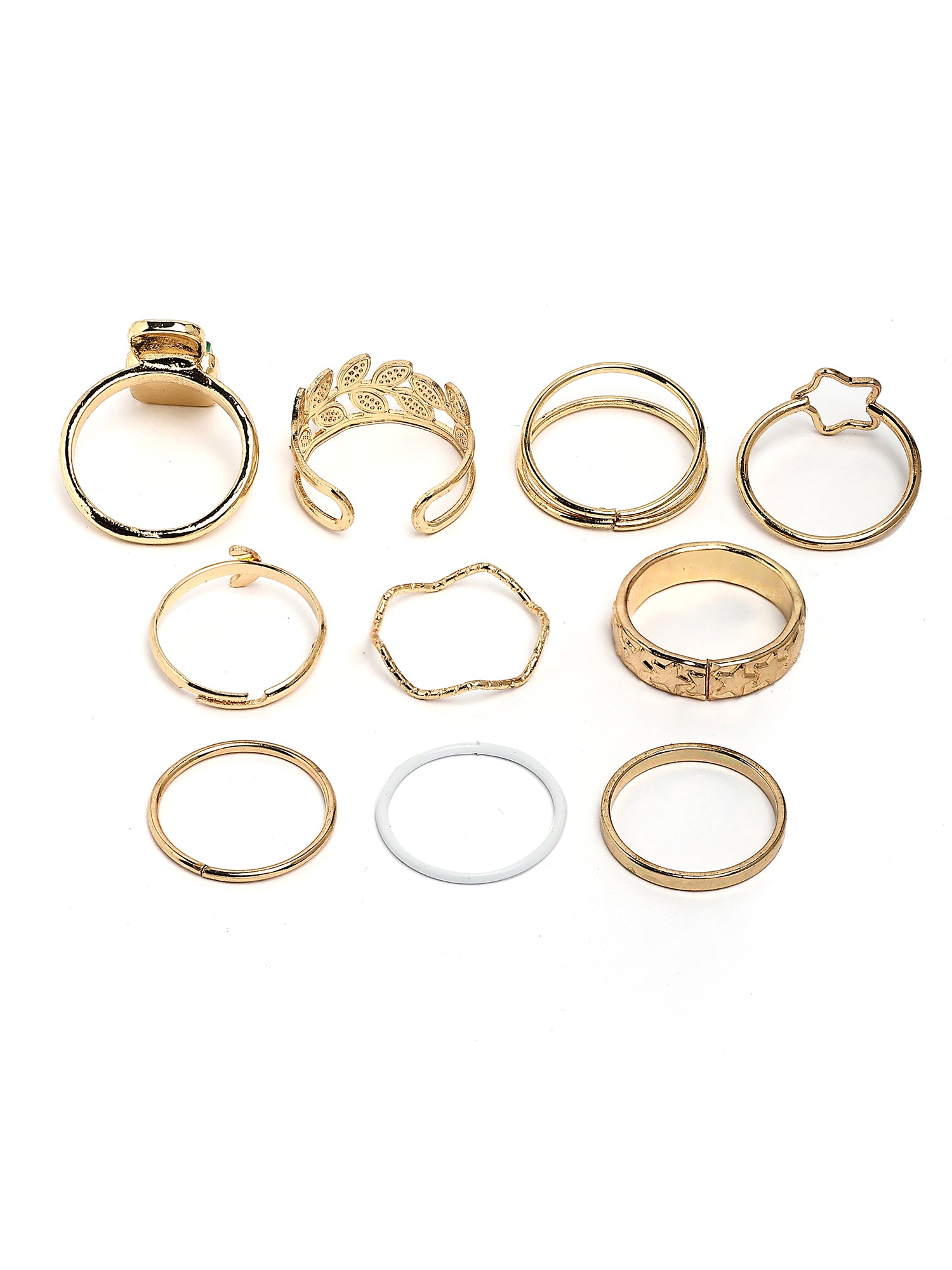 Bohey by KARATCART Set of 10 Gold-Plated Boho Midi Finger Rings for Women