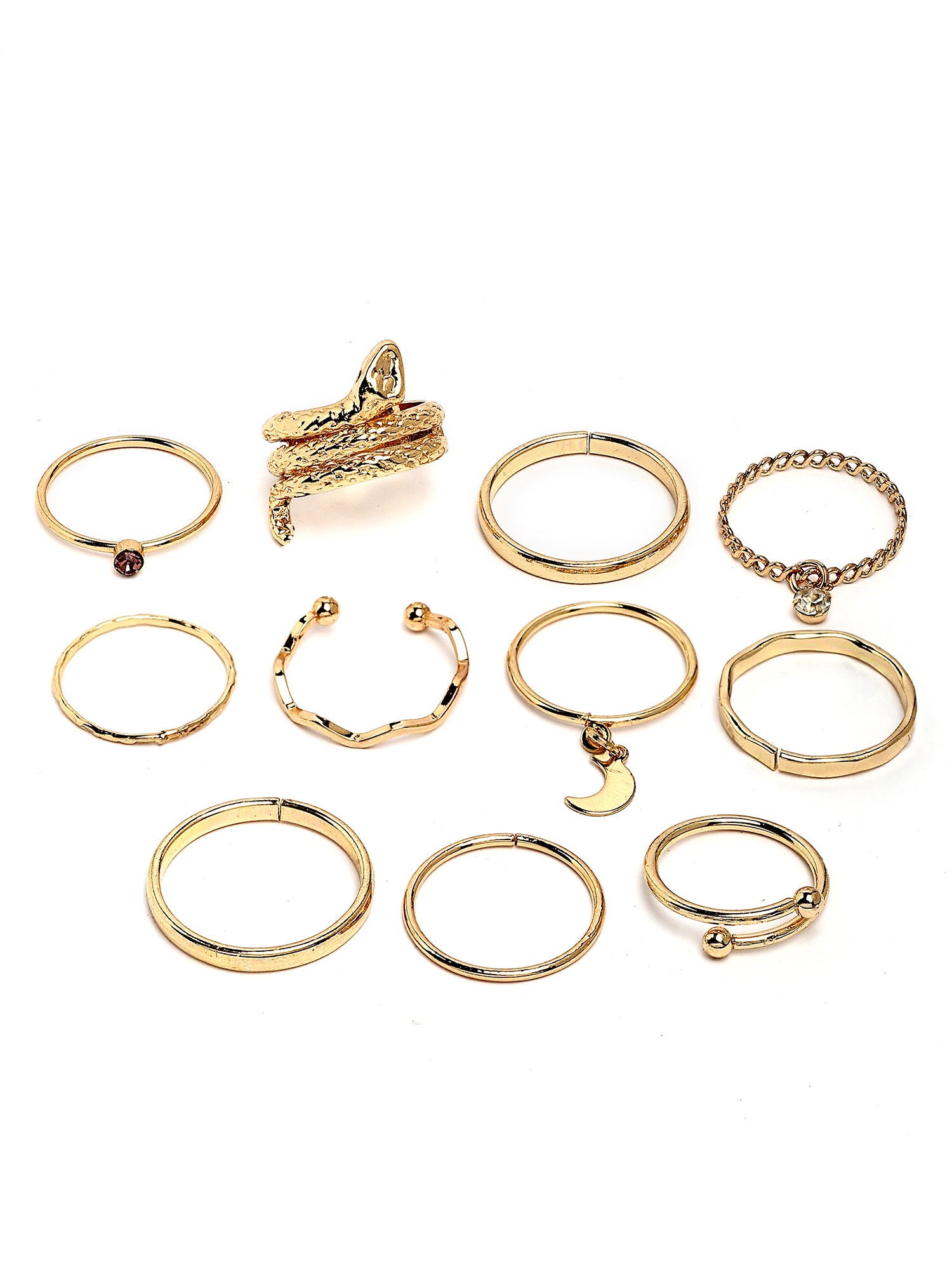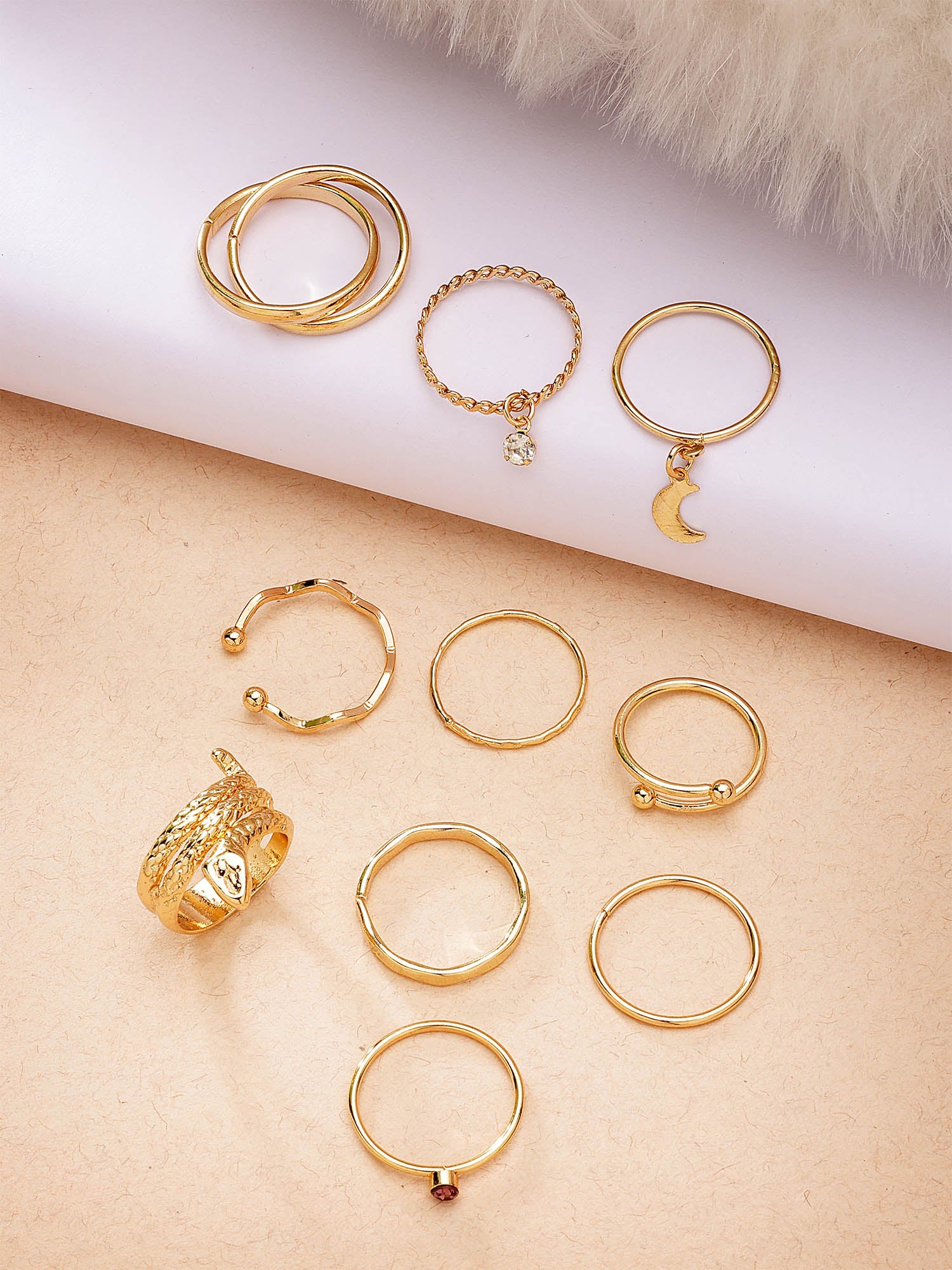 Bohey by KARATCART Set of 10 Gold-Plated Boho Midi Finger Rings for Women