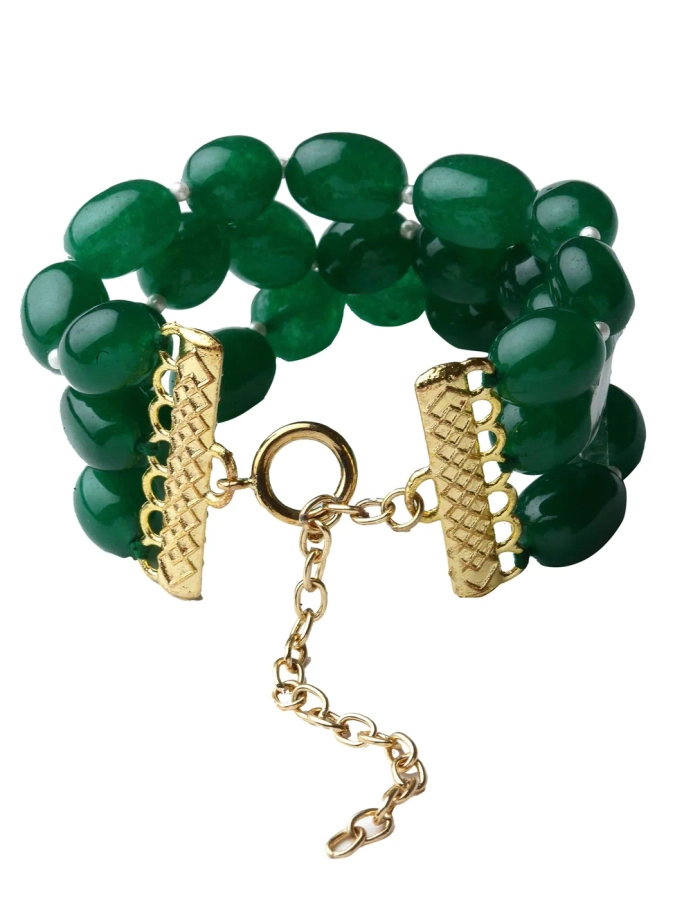 - Karatcart Green Tumble Stone Beaded Bracelet for Women. These beautifully handcrafted Gold-Plated bracelets are made with high-quality Kundan and Tumble Stones which makes them very skin-friendly.