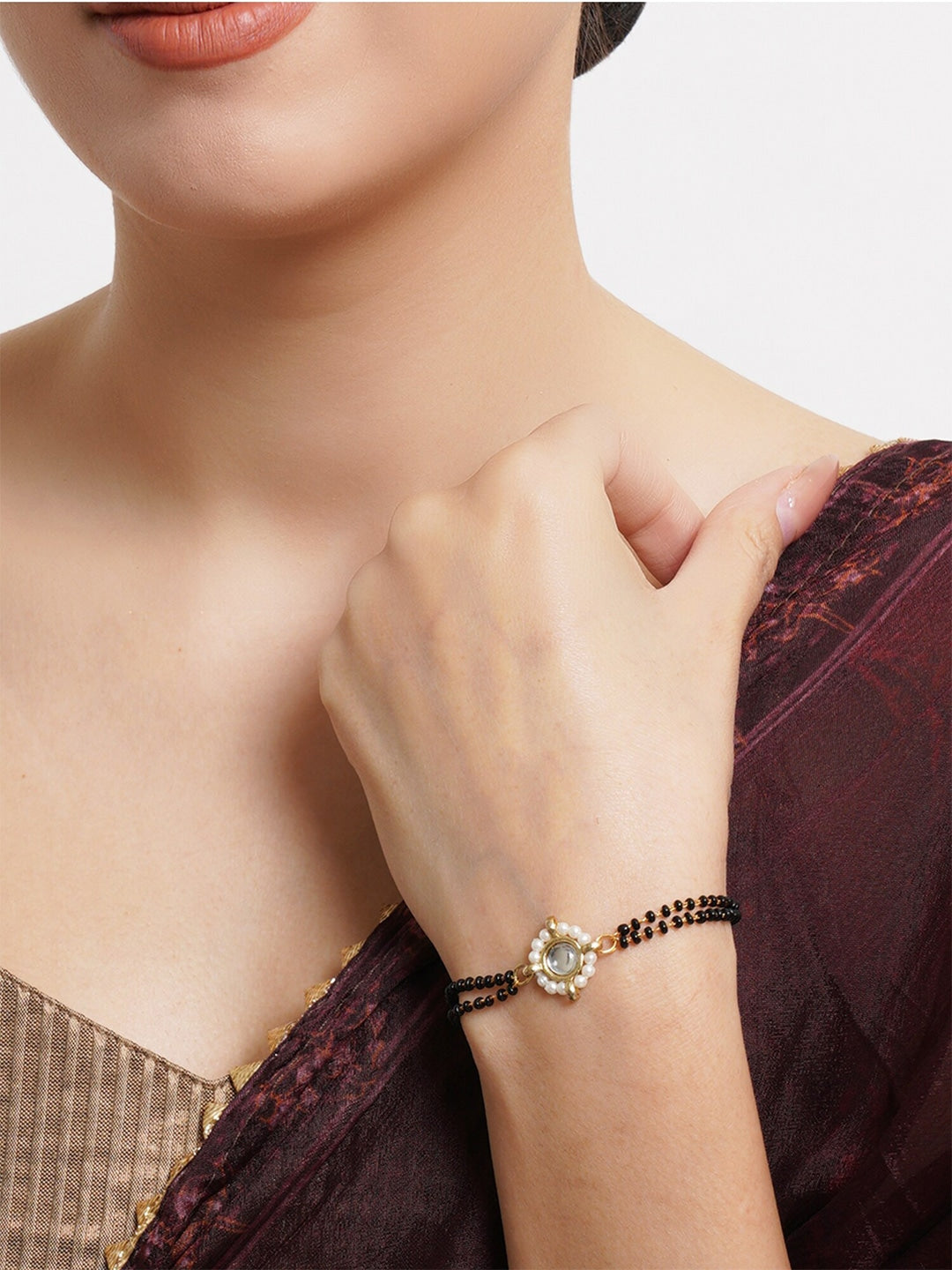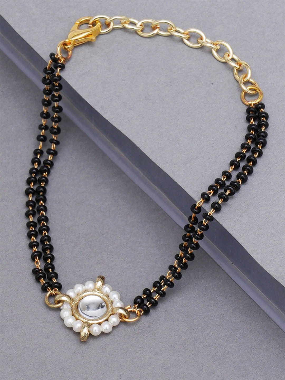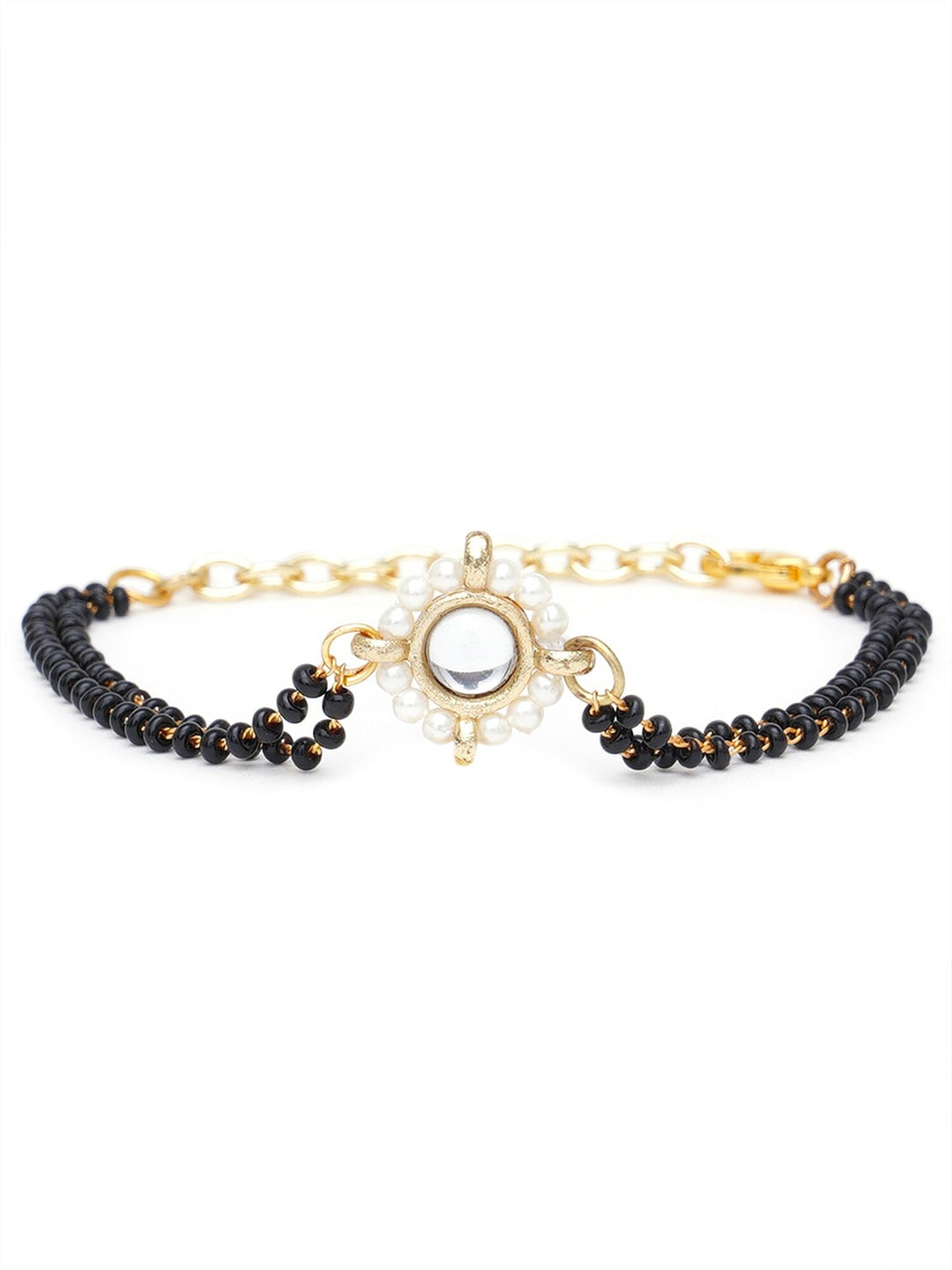 Women Gold-Toned & Black Kundan Gold-Plated Charm Mangalsutra Bracelet