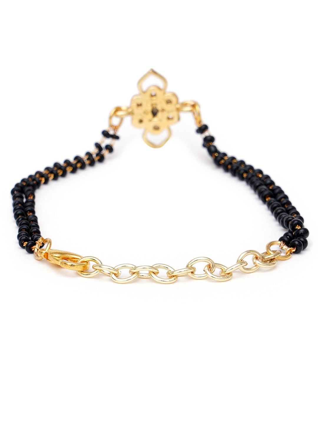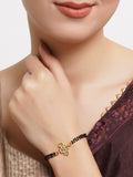Women Gold Plated Black Kundan Gold-Plated Charm Mangalsutra Bracelet