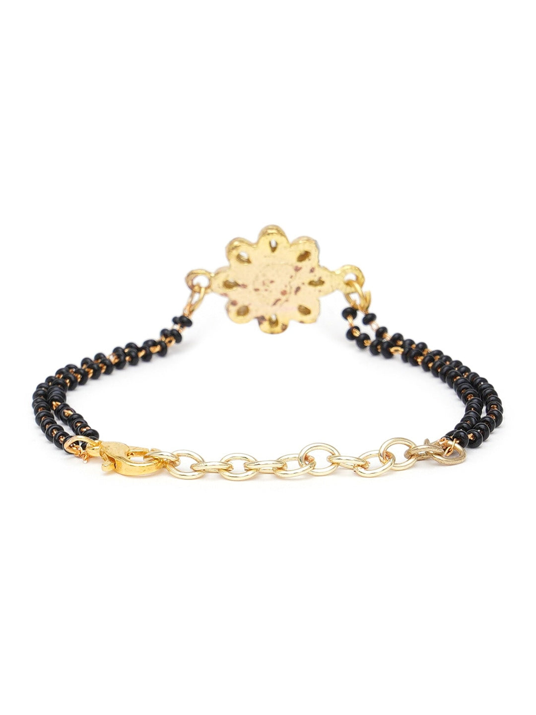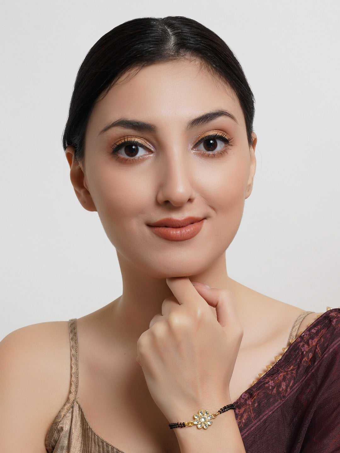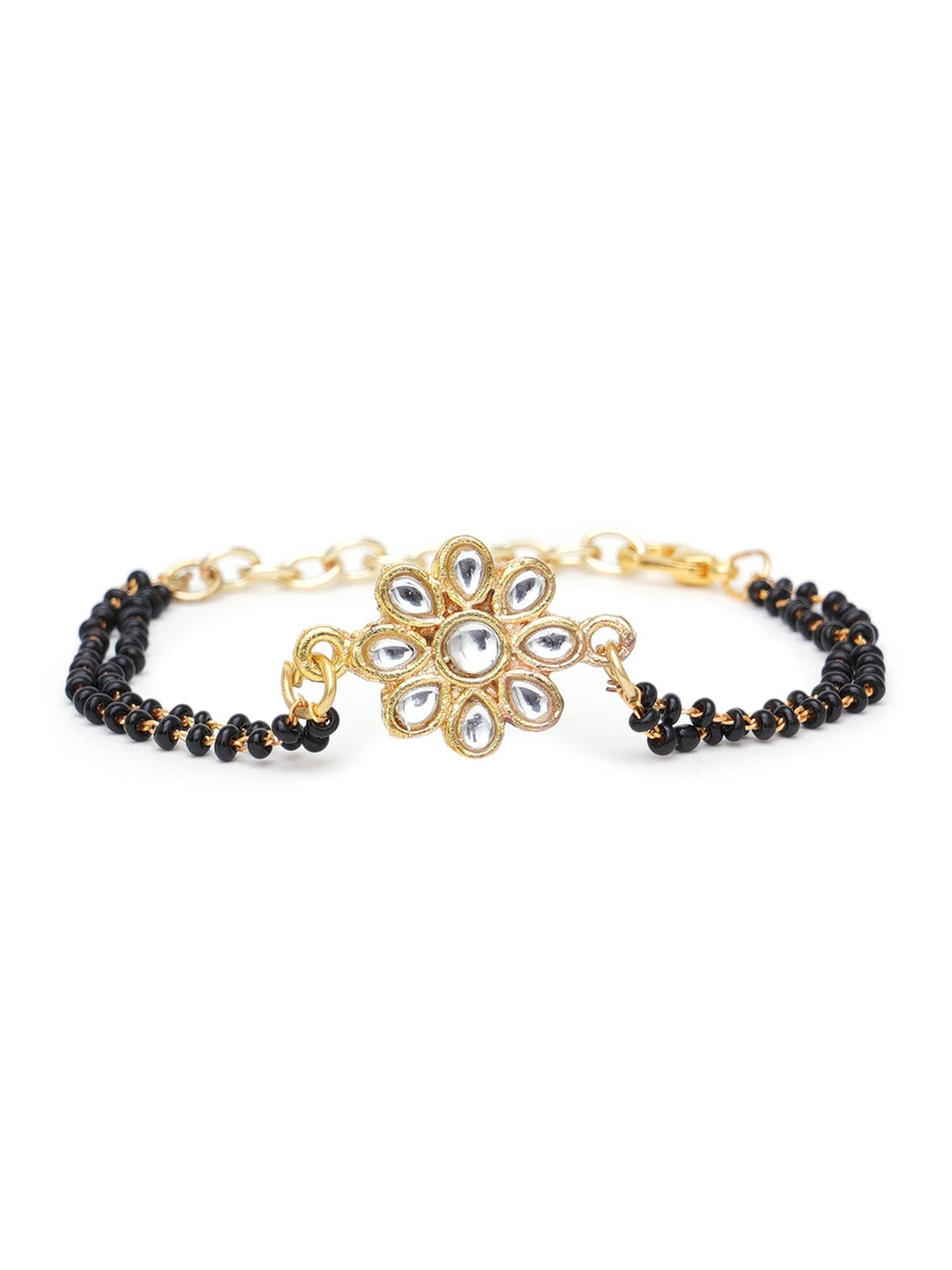 Karatcart Gold Plated Floral Shaped Kundan Mangalsutra Bracelet for Women