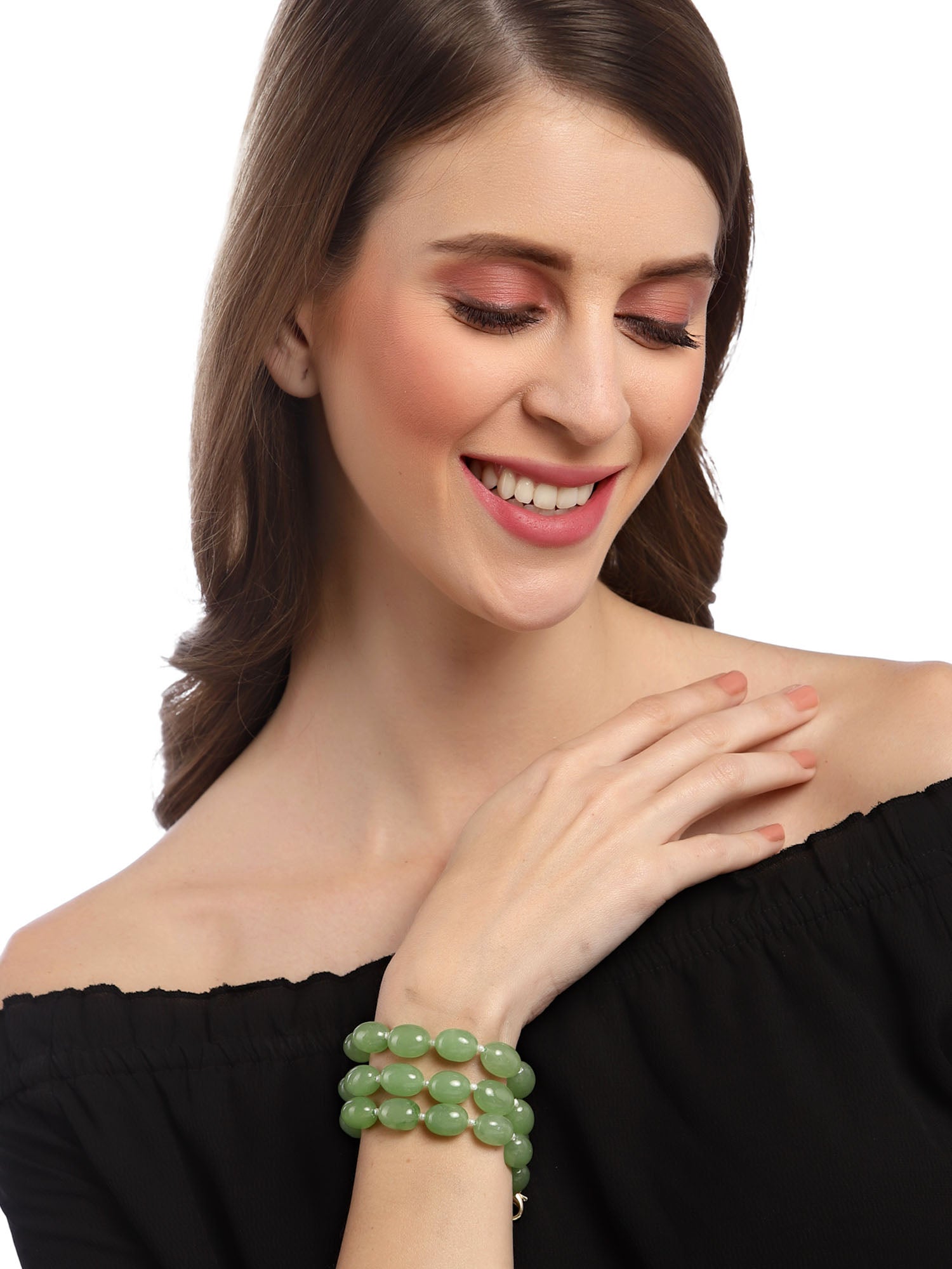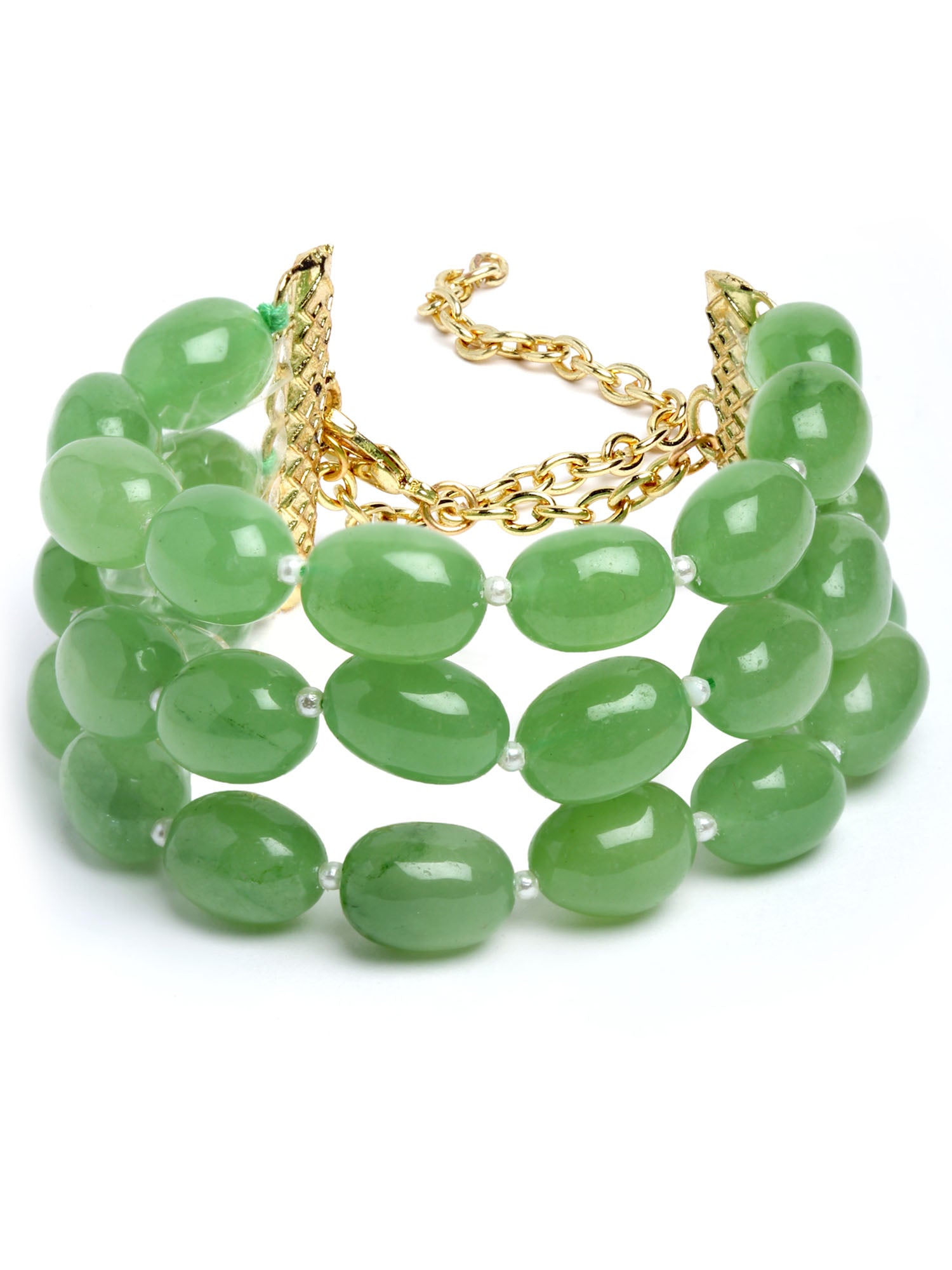 - Karatcart Green Tumble Stone Beaded Bracelet for Women. These beautifully handcrafted bracelets are made with high-quality Kundan and Pearls which makes them very skin-friendly.