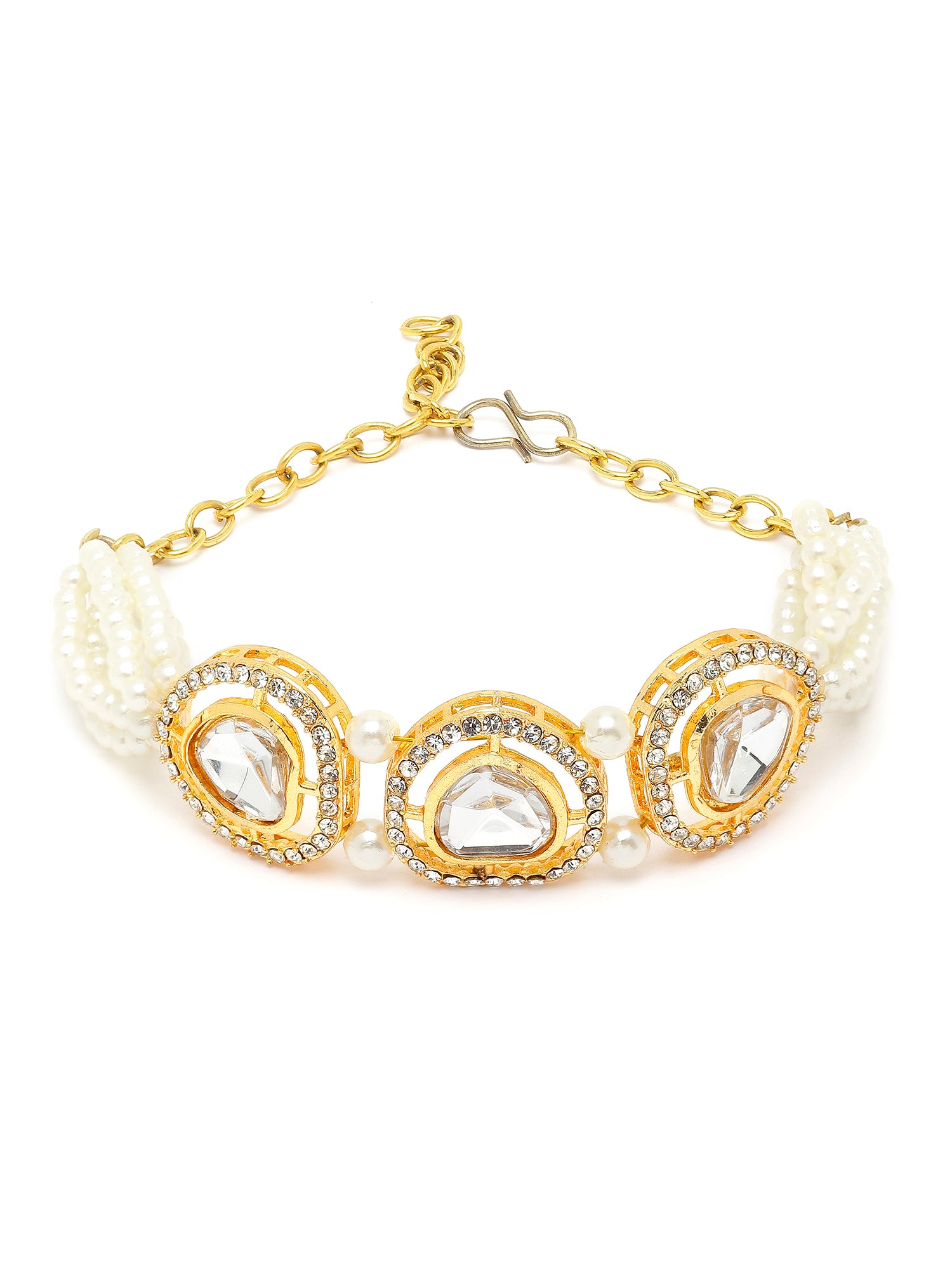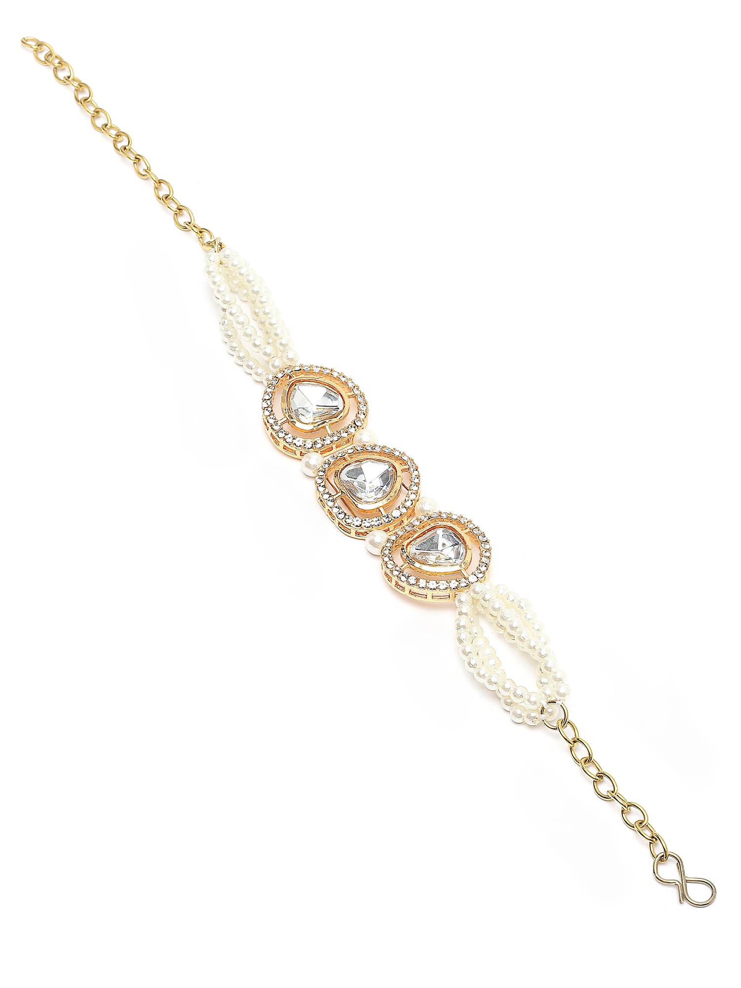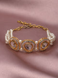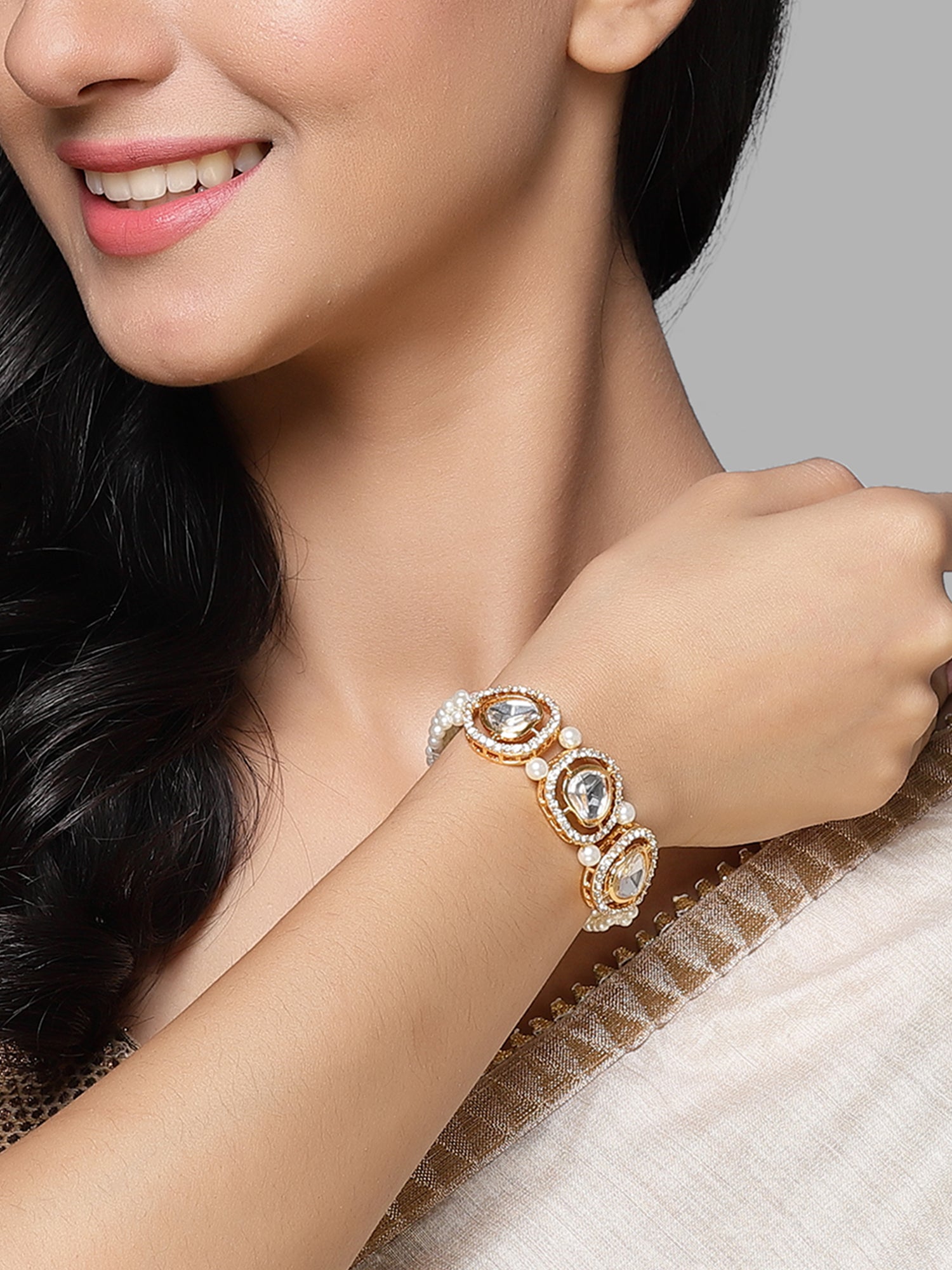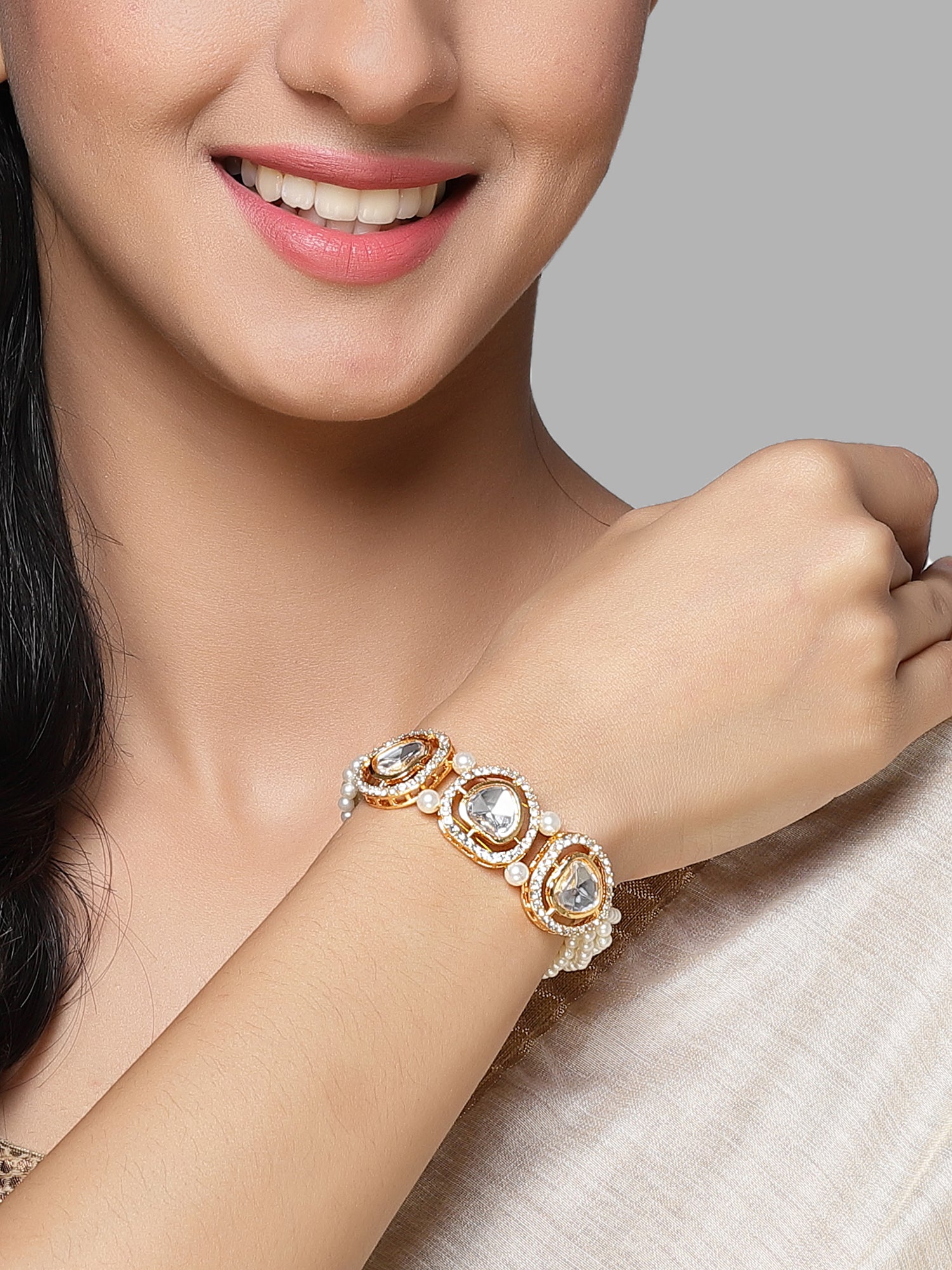 Karatcart Gold Plated Polki Kundan and Pearl Bracelet for Women