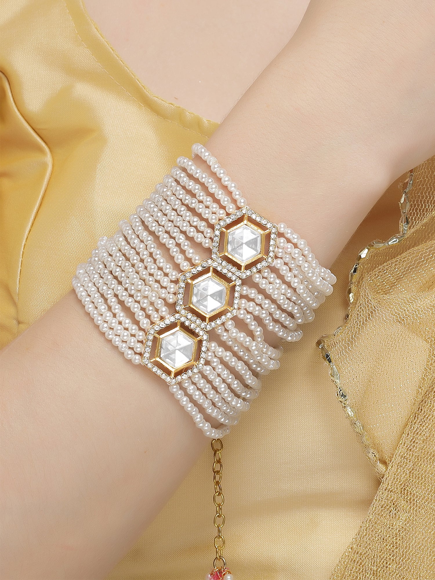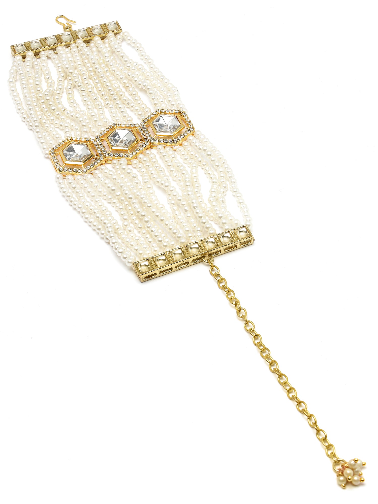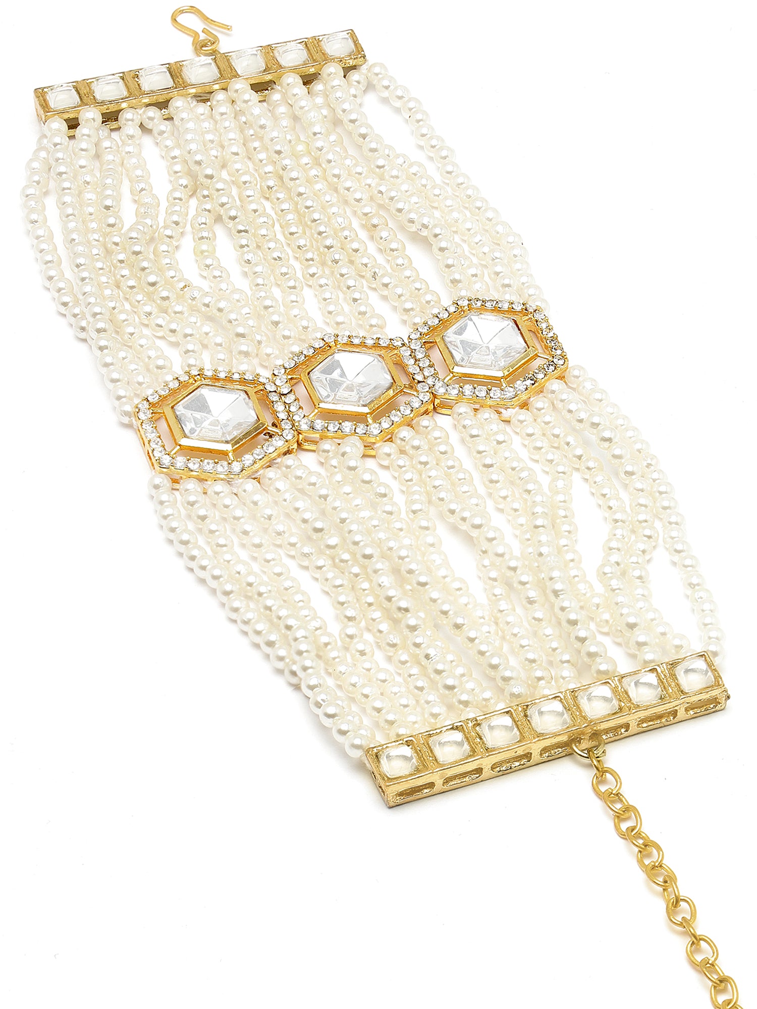 Karatcart Gold Plated Polki Kundan and Pearl Beaded Bracelet for Women