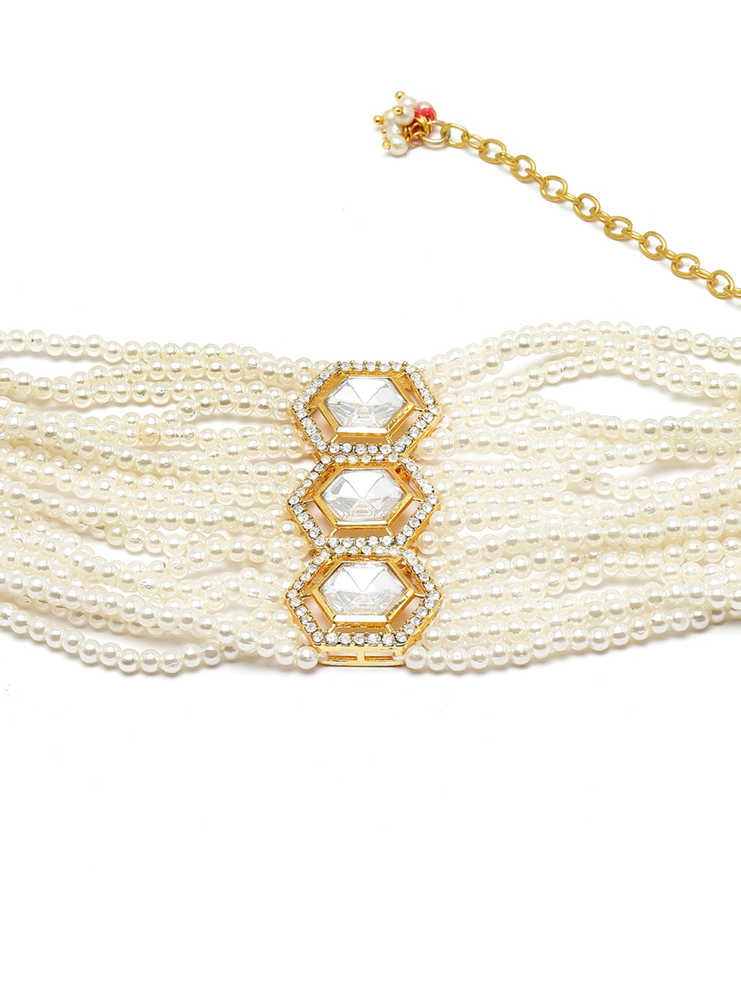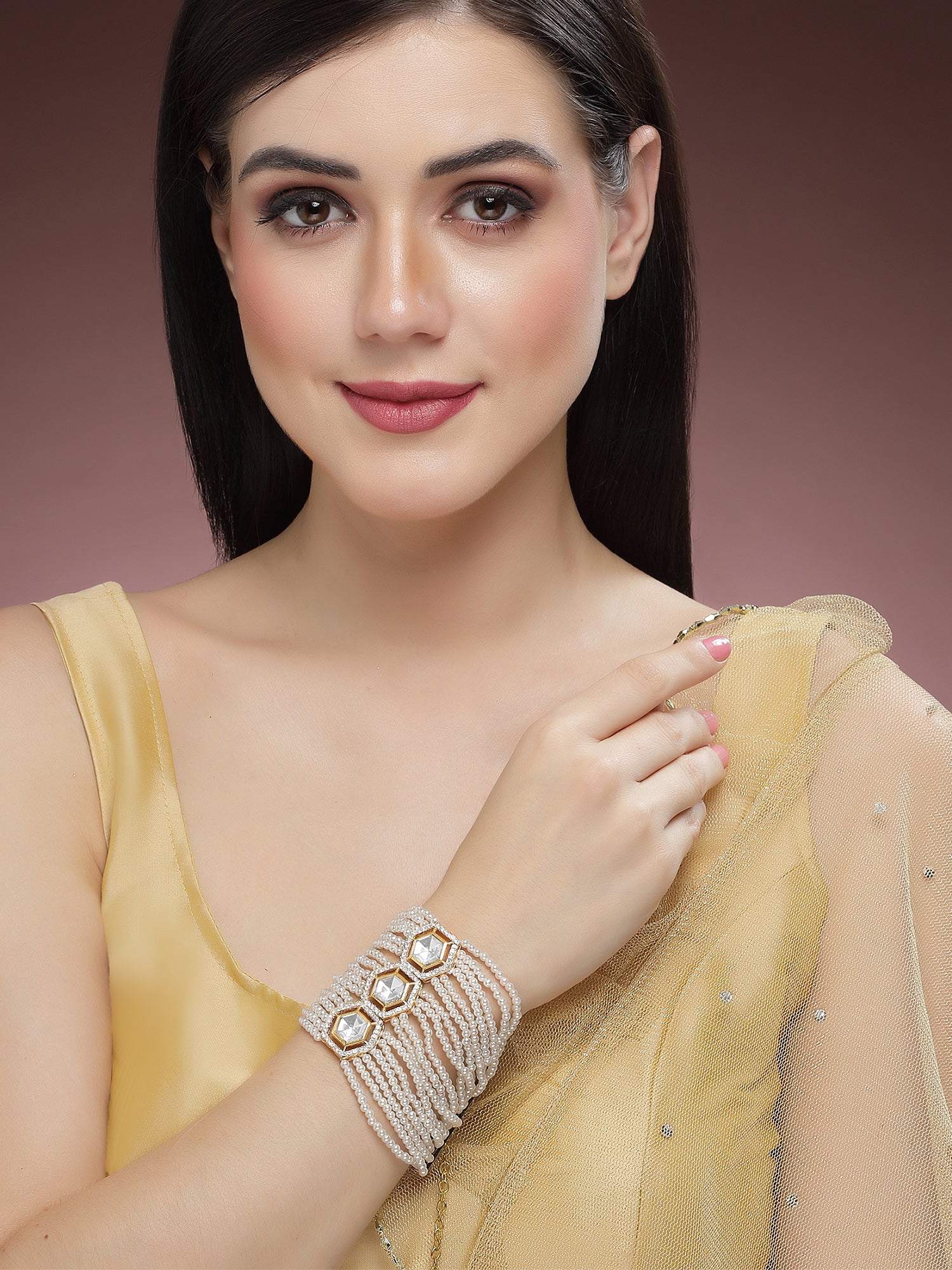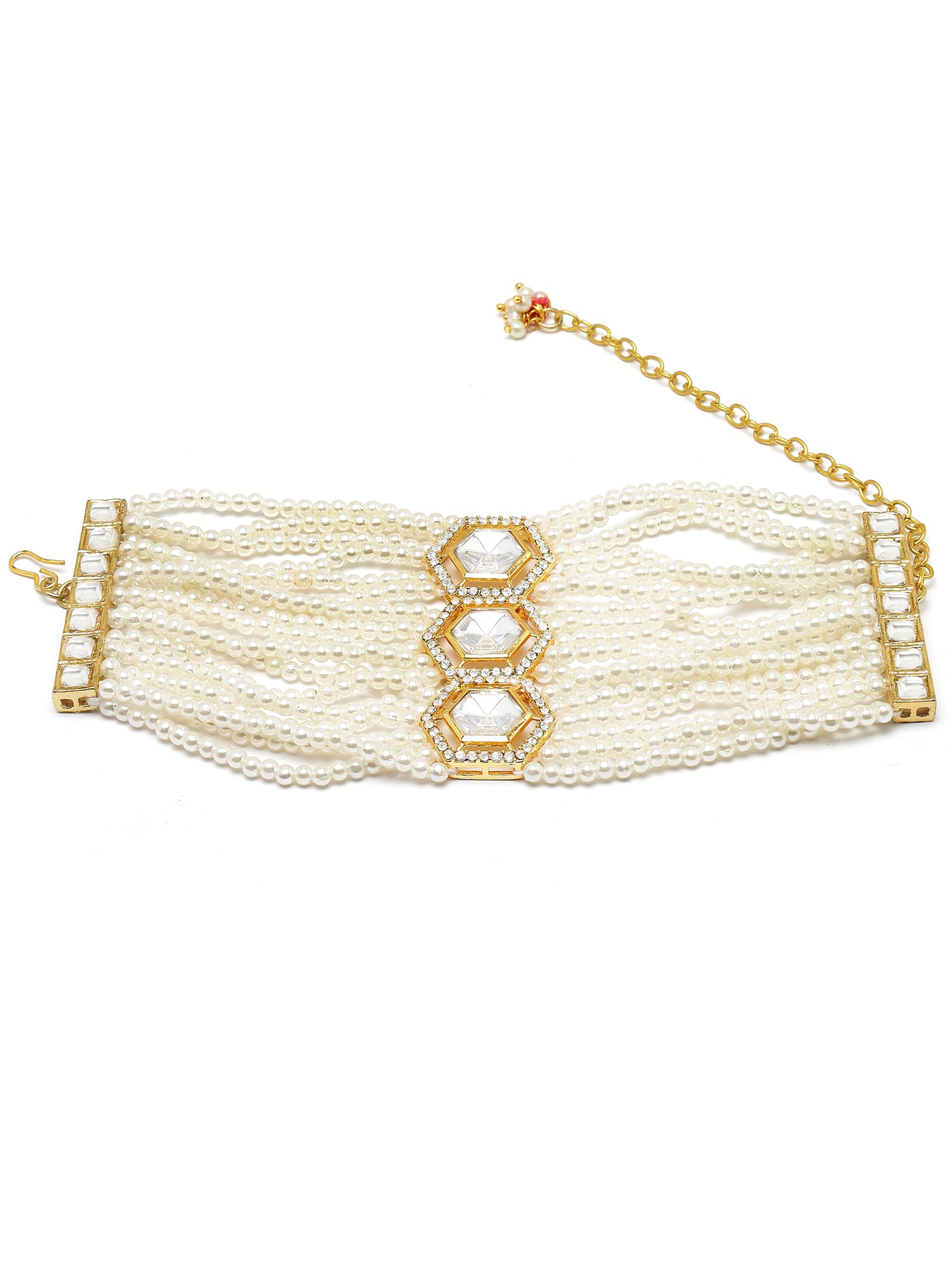Karatcart Gold Plated Polki Kundan and Pearl Beaded Bracelet for Women