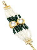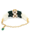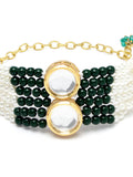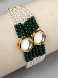 Karatcart Green Beads Golden Round Polki Kundan Studded Bracelet for Women