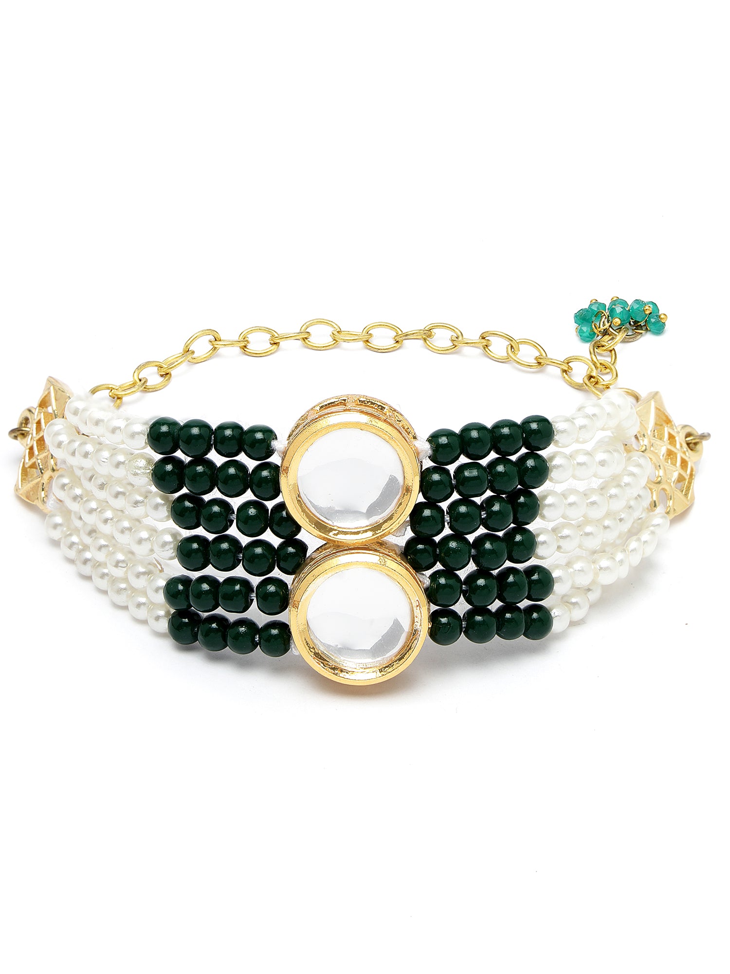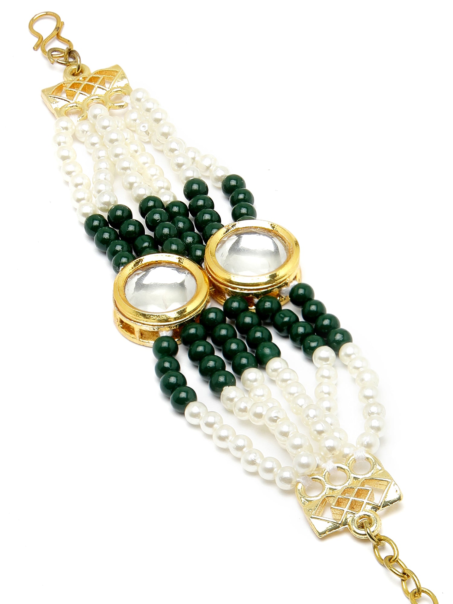 - Karatcart Green Beads Golden Round Polki Kundan Studded Bracelet for Women. Our products are designed with high-quality material and these products are enhanced with plating that are skin-friendly & with love to reach your heart.