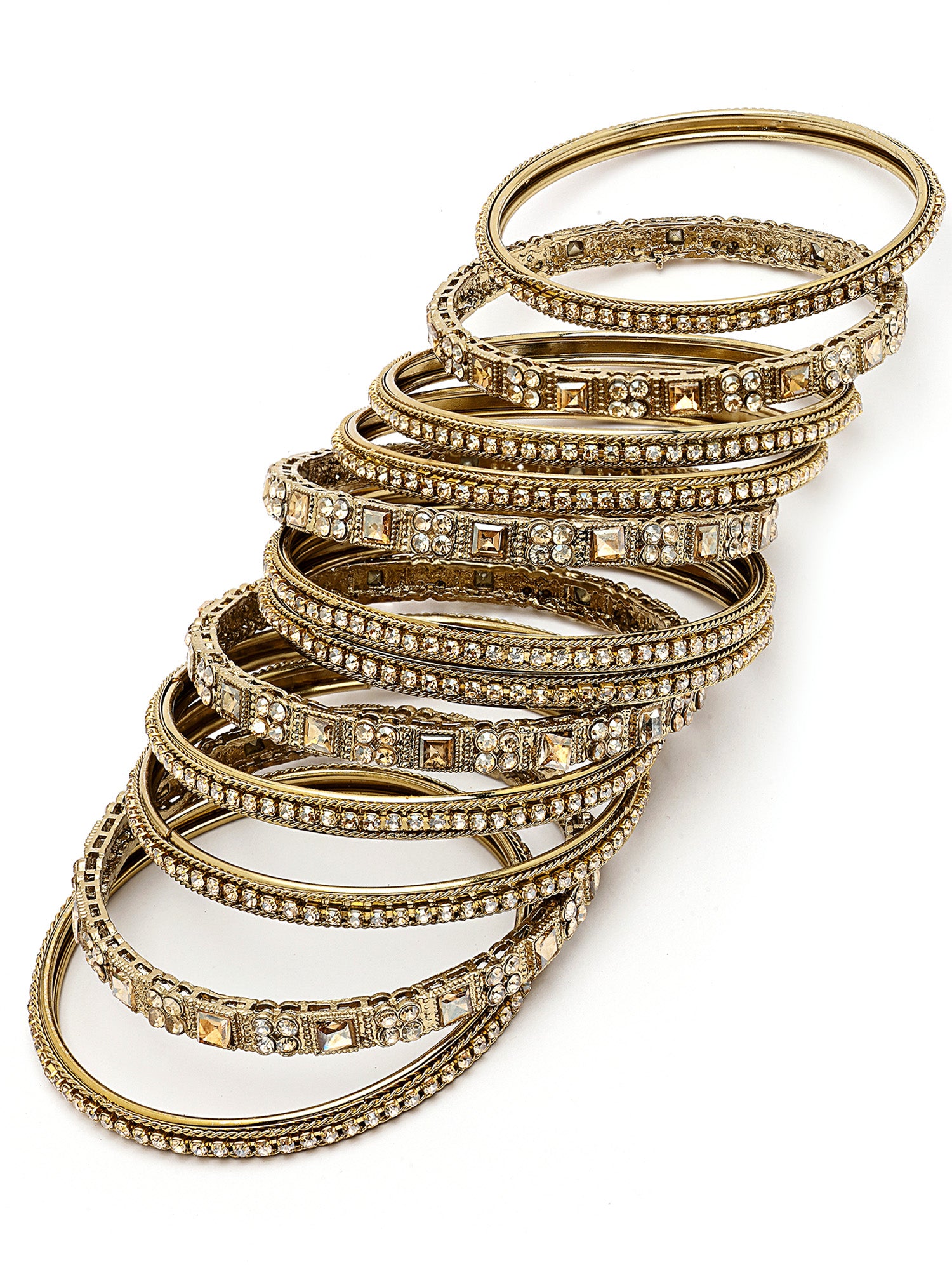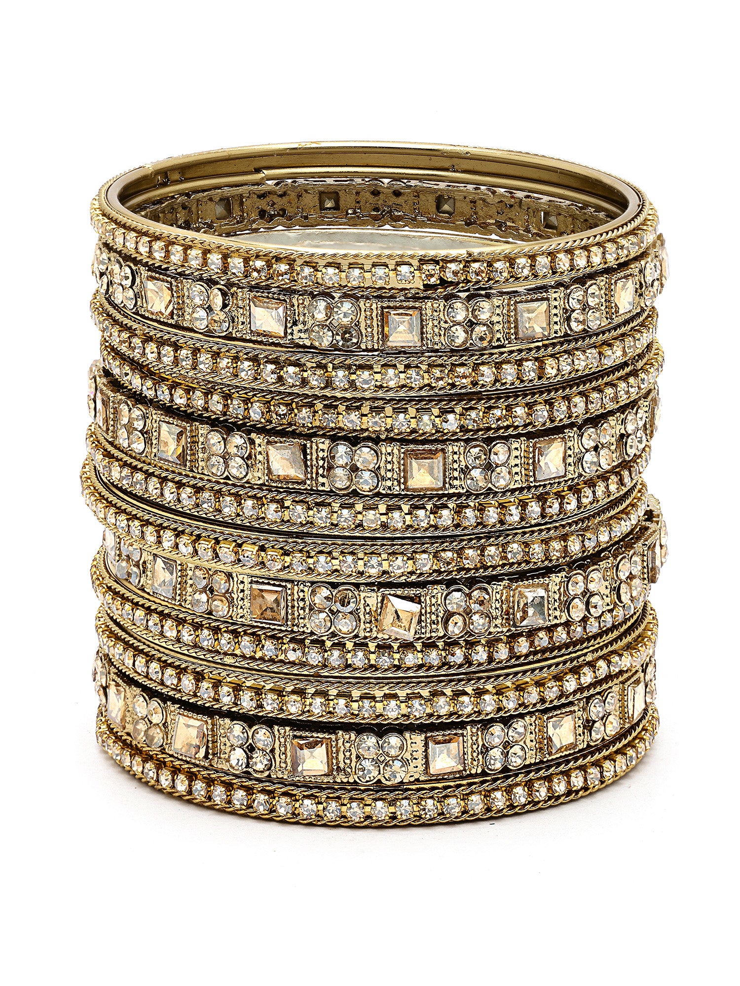 KARATCART Antique Gold-Plated Stone Studded Kundan Style Bridal Bangles for Women