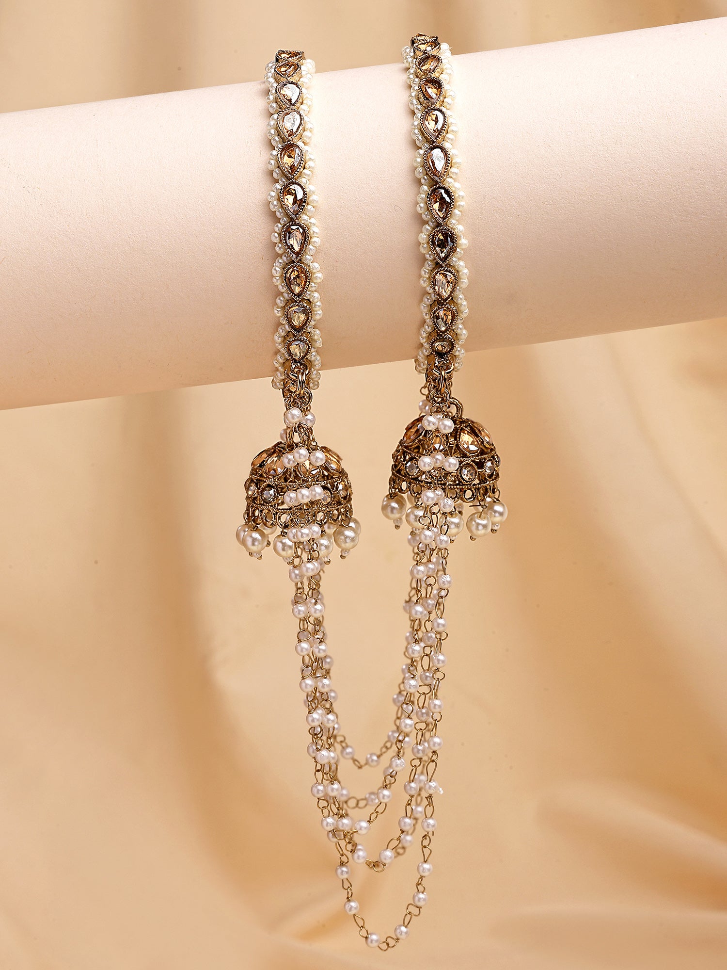 KARATCART Antique Gold-Plated Stone Studded Traditional Bridal Chooda Bangles for Women