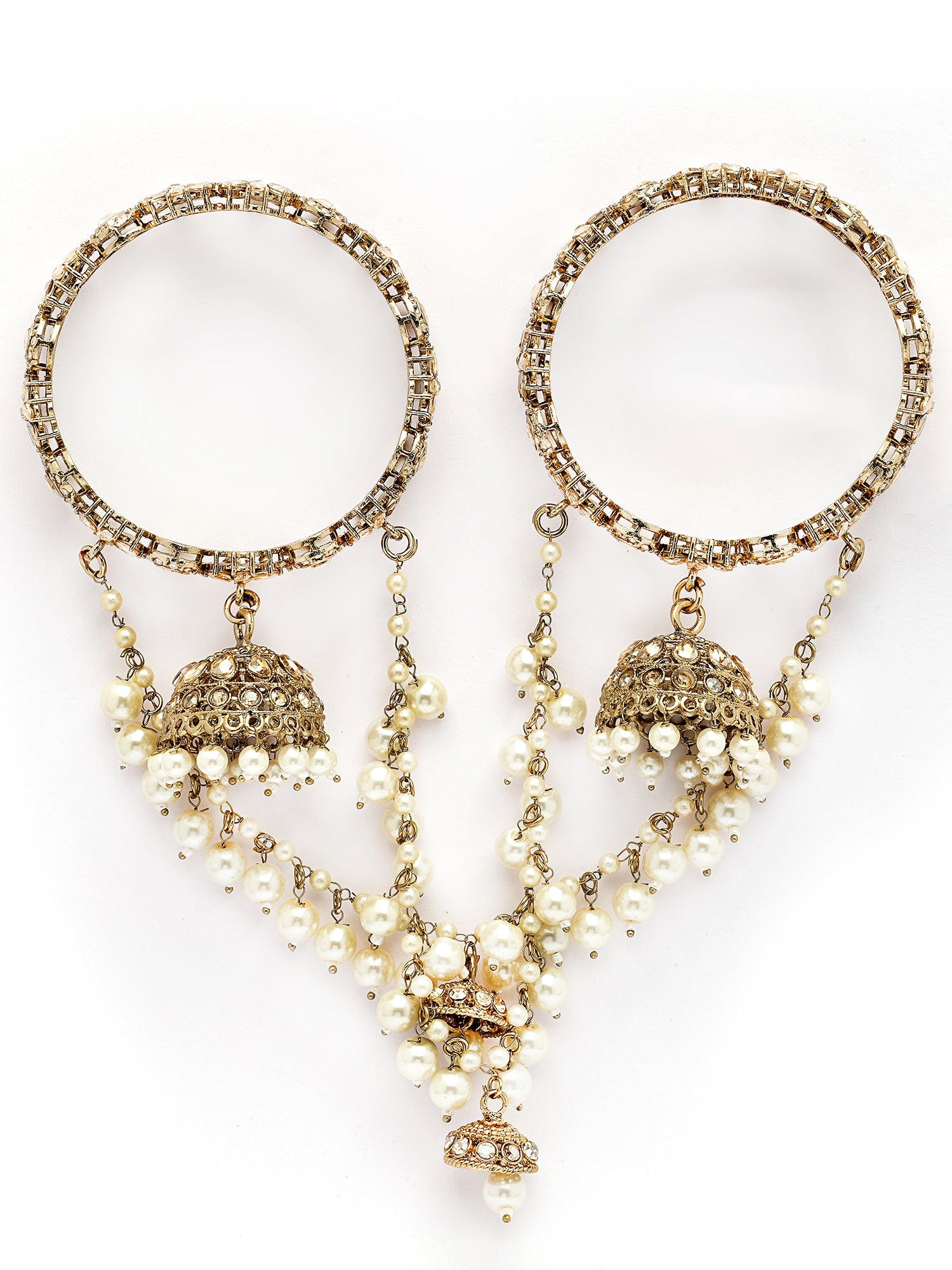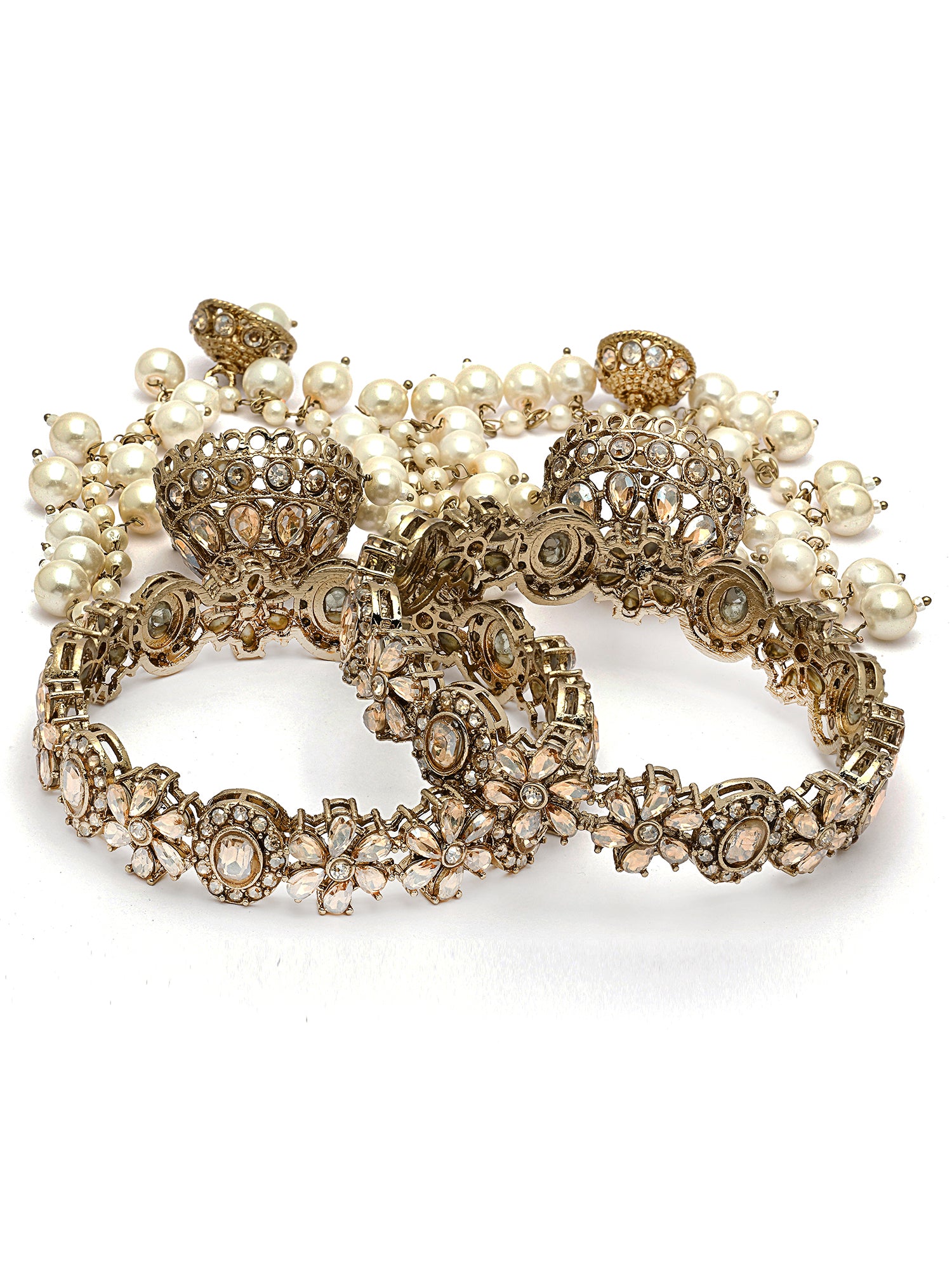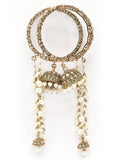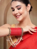 KARATCART Dazzling Gold-Plated Floral Kundan & Pearl Beaded Bridal Chooda Bangles for Women