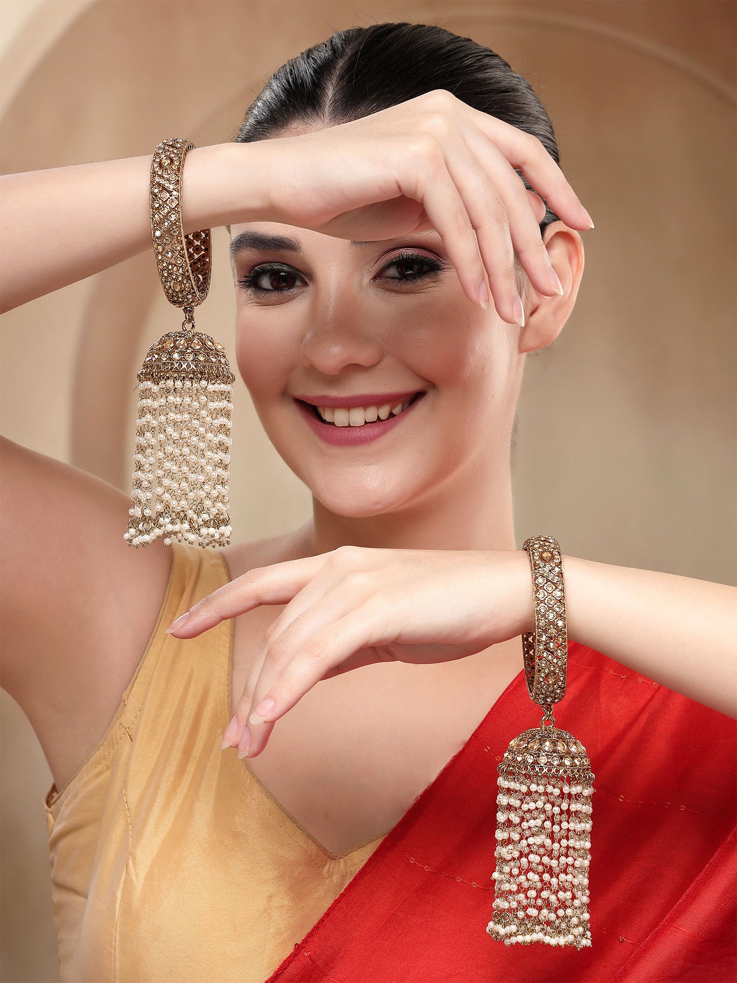 KARATCART Luxurious Antique Gold-Plated Bridal Kaleere Style Bangles for Women