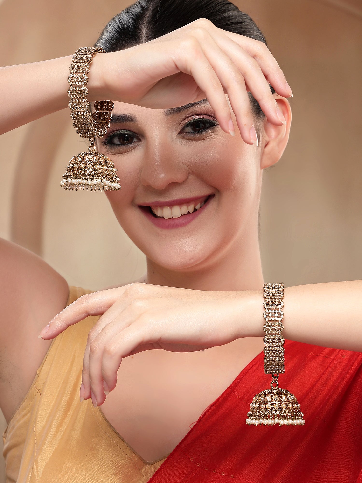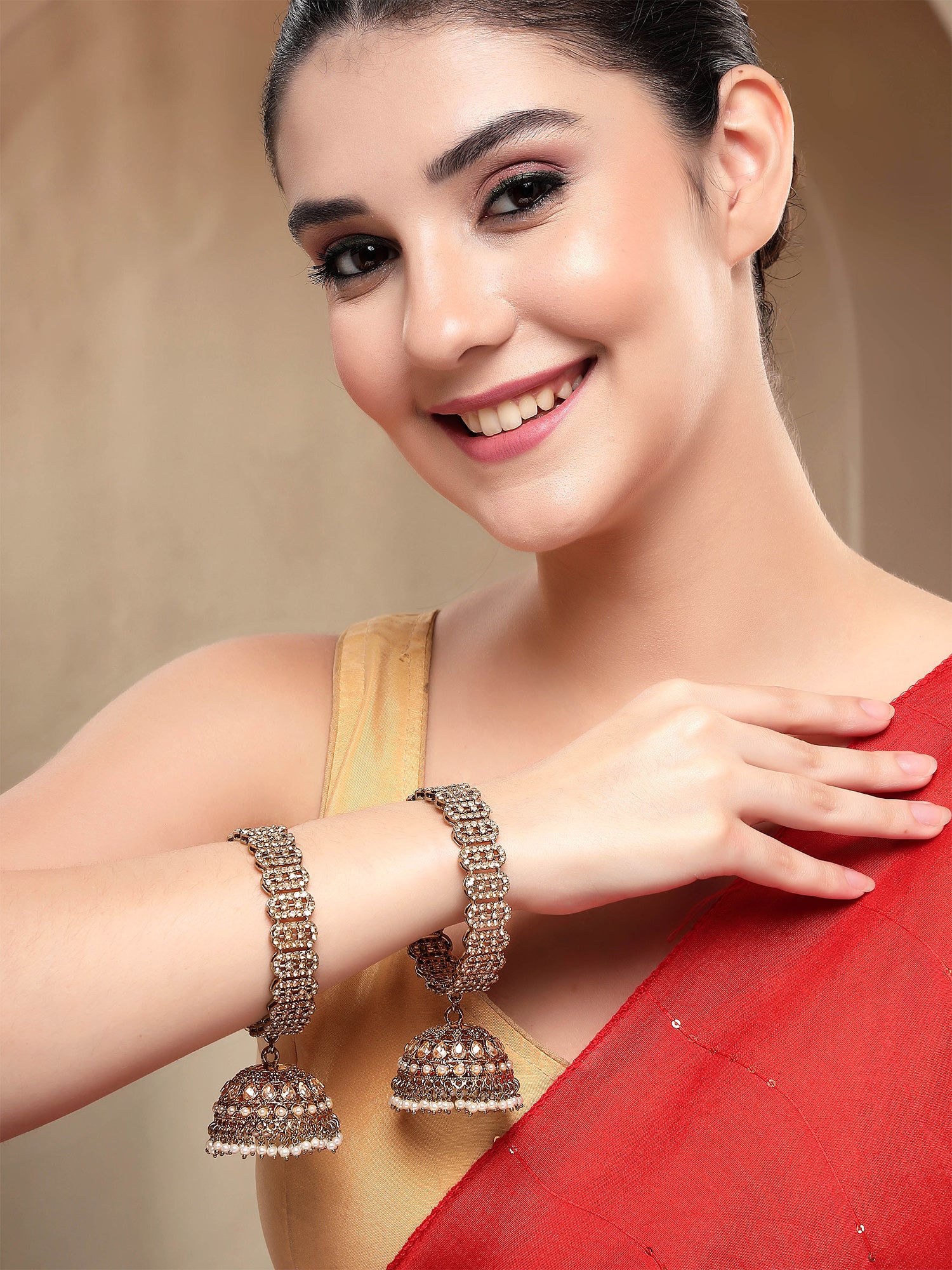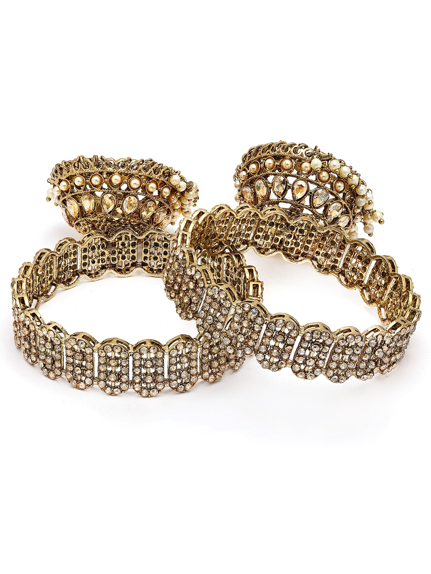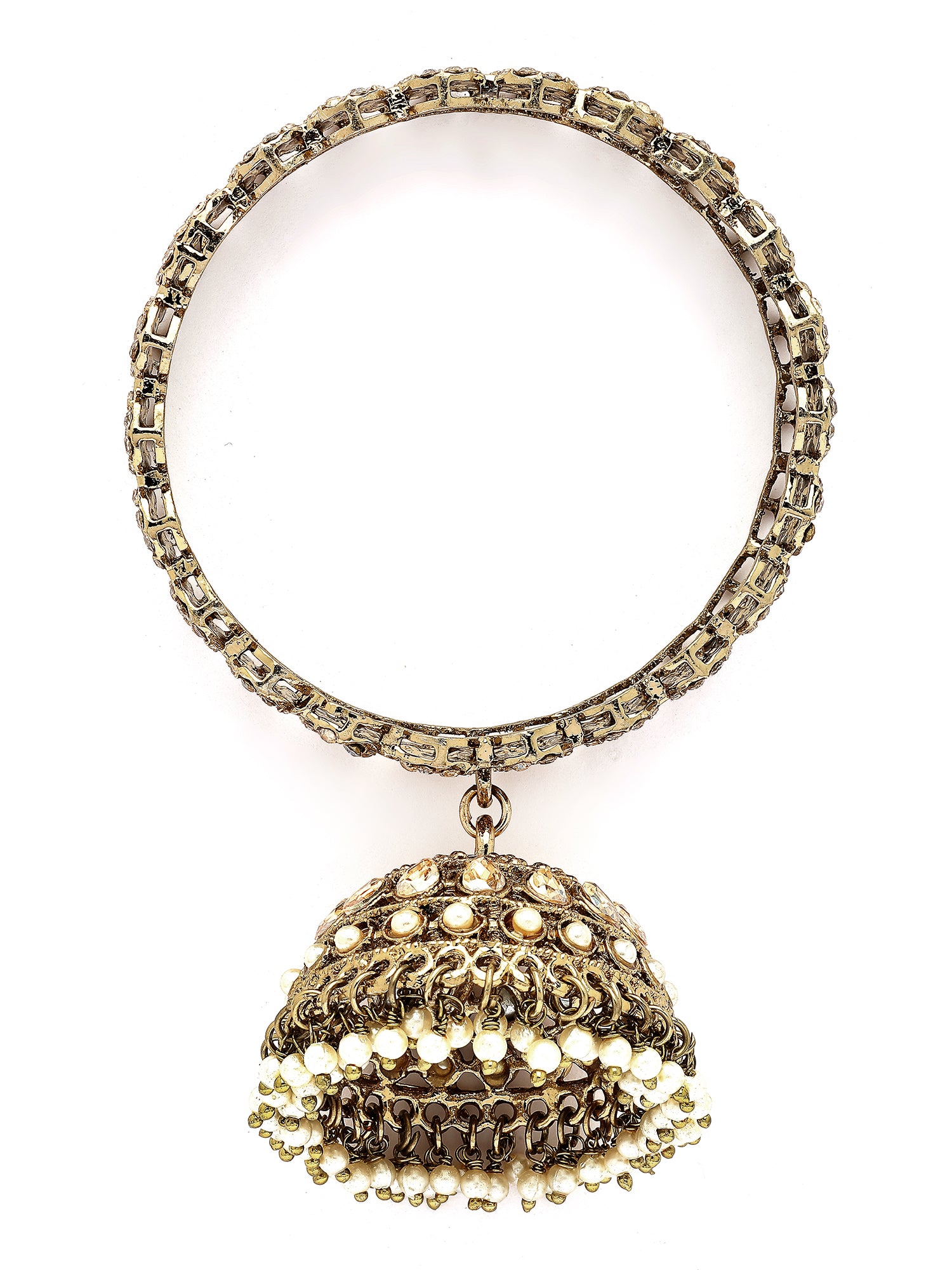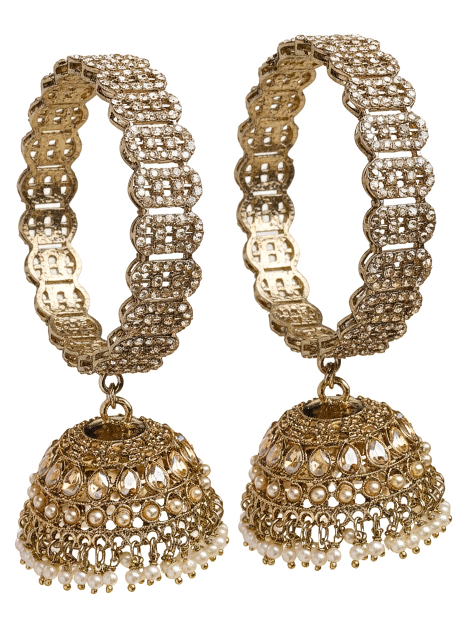 KARATCART Antique Gold-Plated Jhumka Studded Bridal Bangles for Women