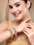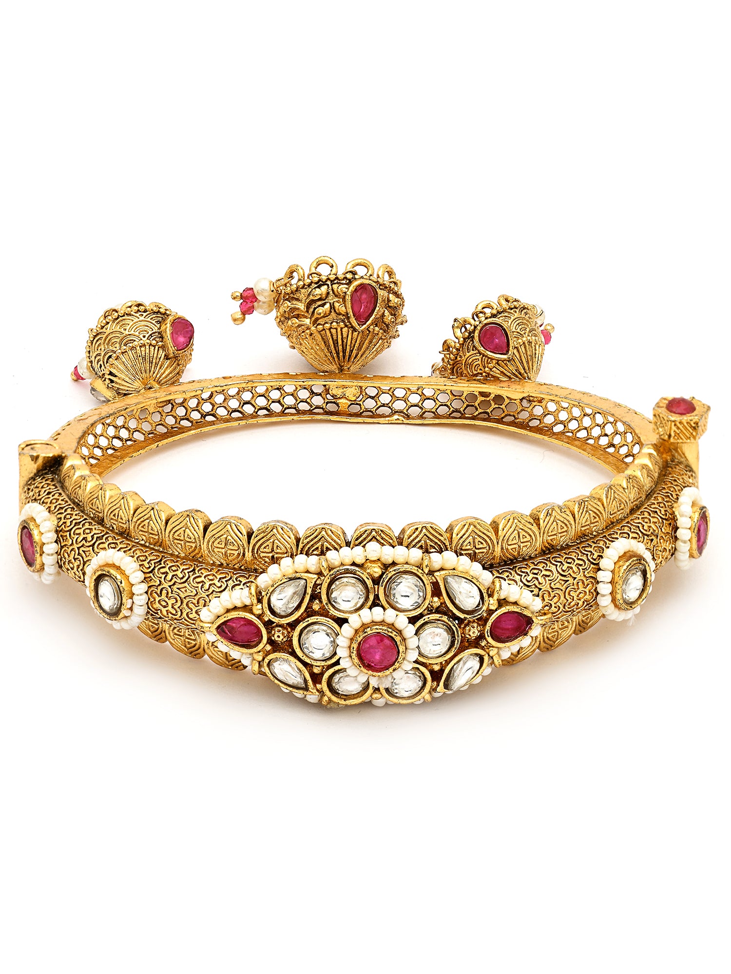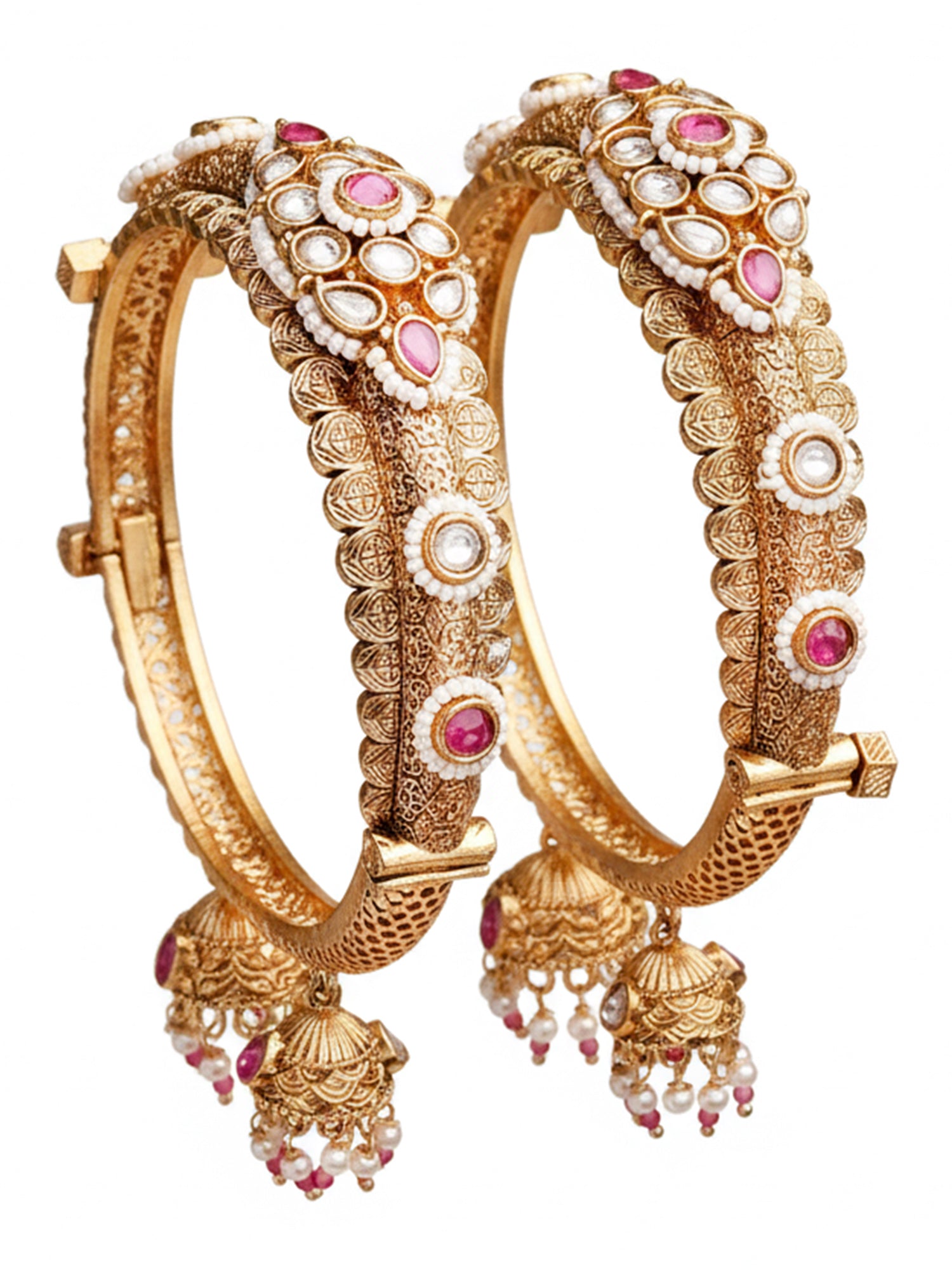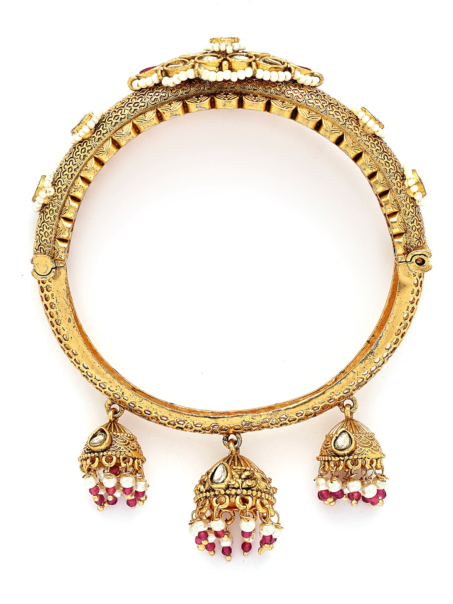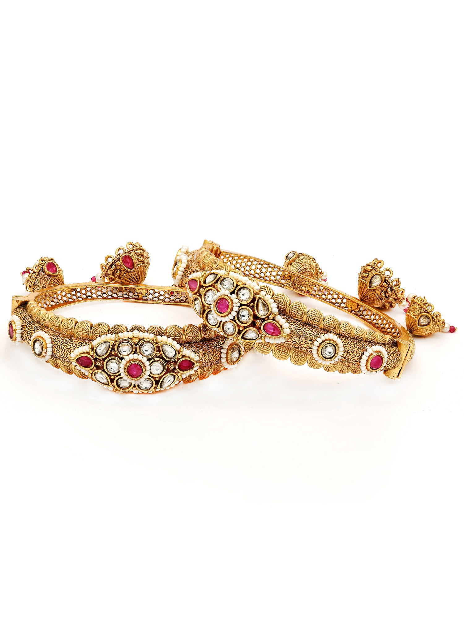 KARATCART Traditional Royal Design Gold-Plated Red Stone Bridal Jhumka Bangles for Women