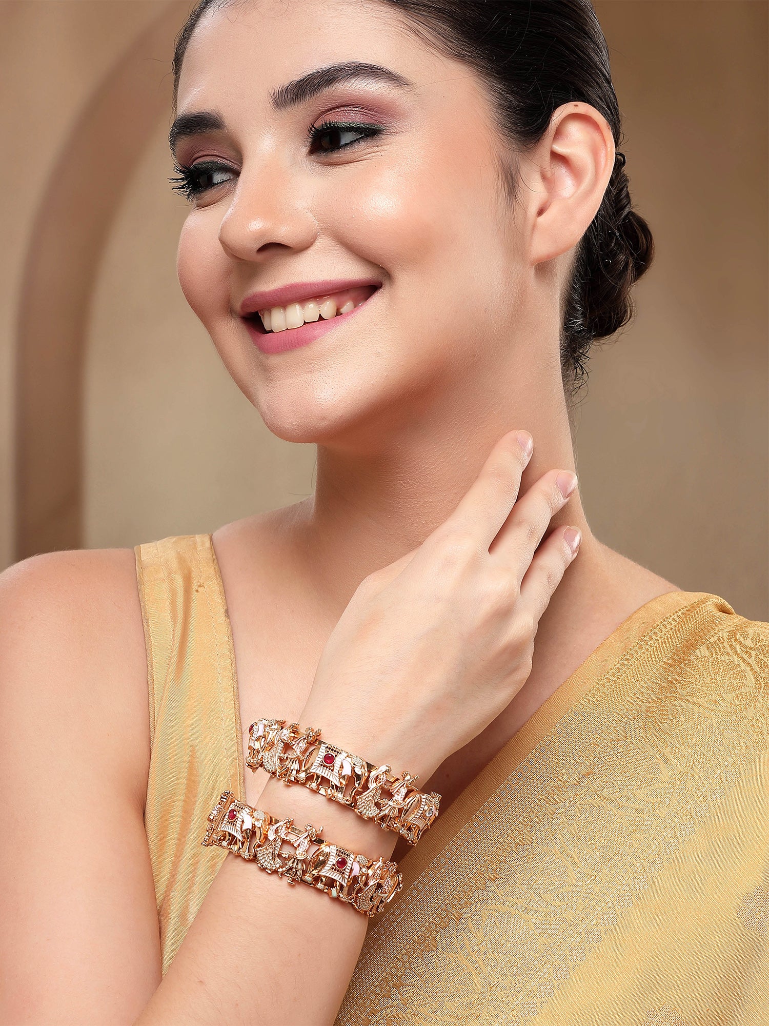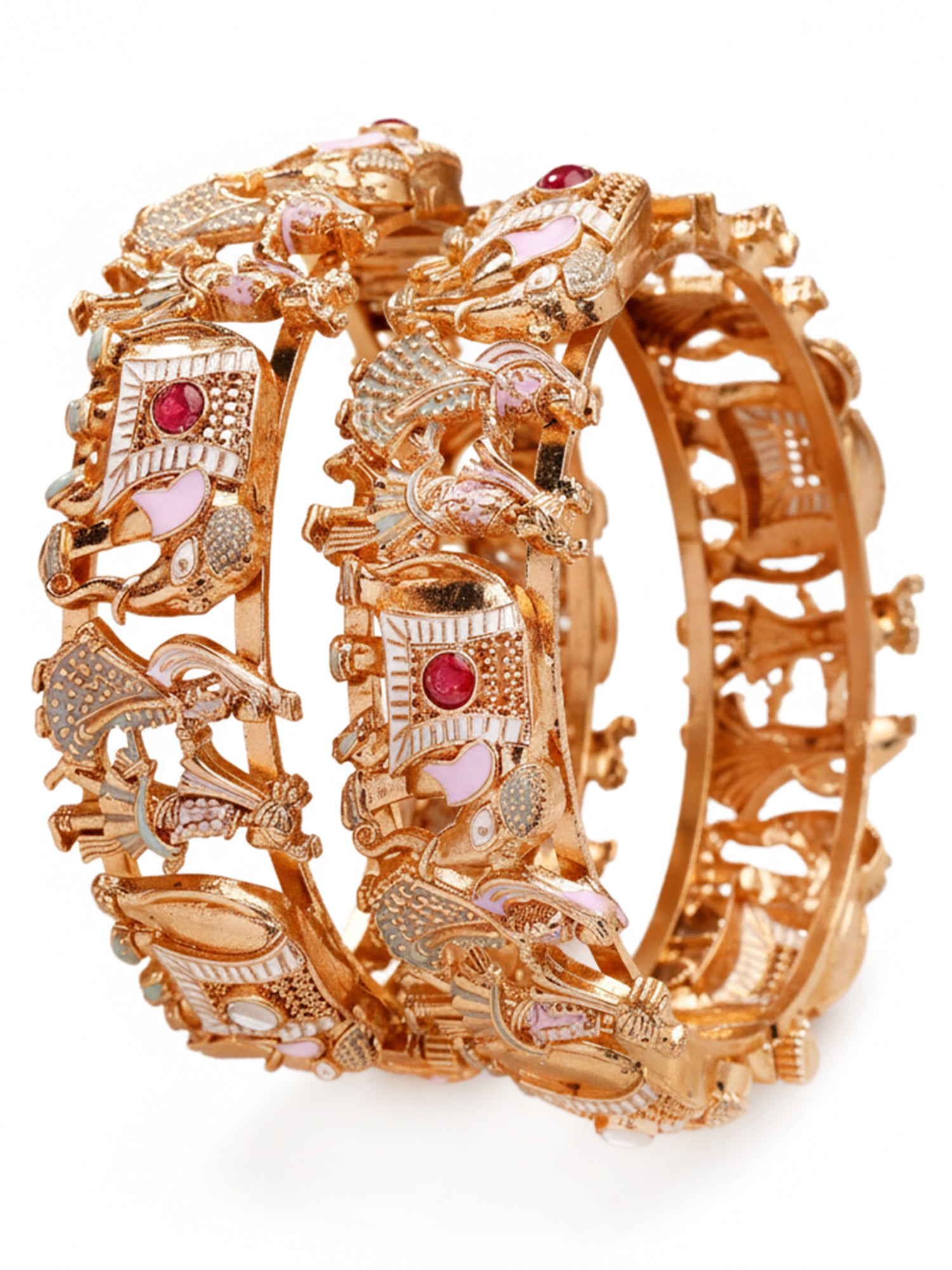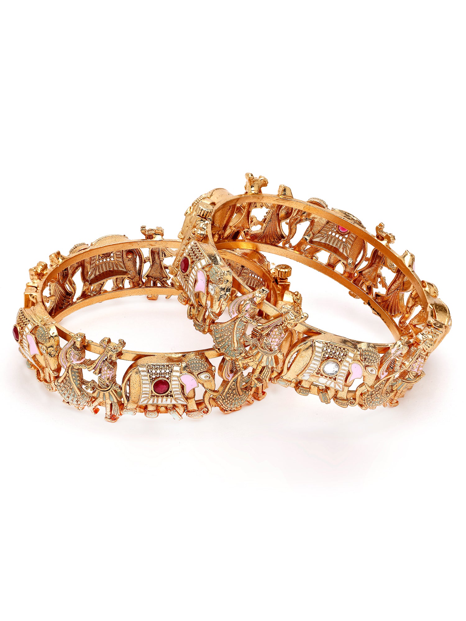 KARATCART Elegant Multicolor Meenakari Rajwadi Style Gold-Plated Wedding Bangles for Women