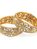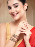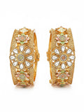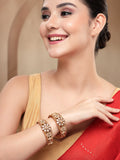 KARATCART Handcrafted Gold-Plated Pink and Lime Green Enamel Floral Bridal Bangles for Women