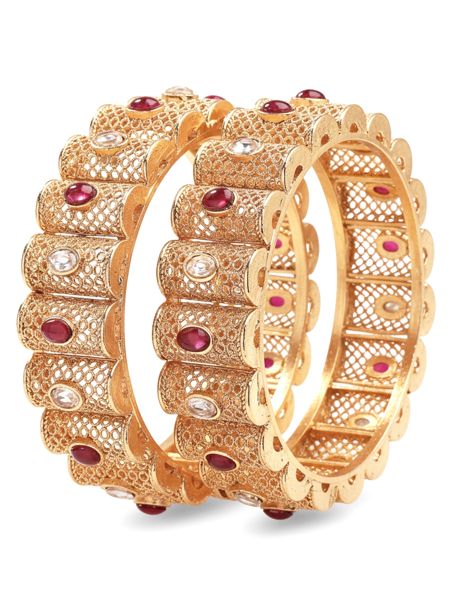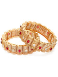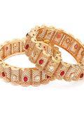 KARATCART Royal Rajwadi Red & White Stone Filigree Design Gold-Plated Bridal Bangles for Women